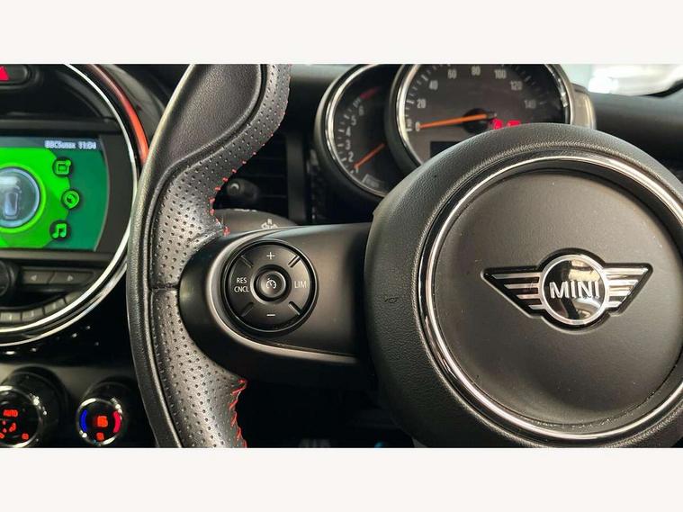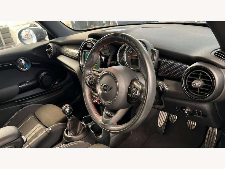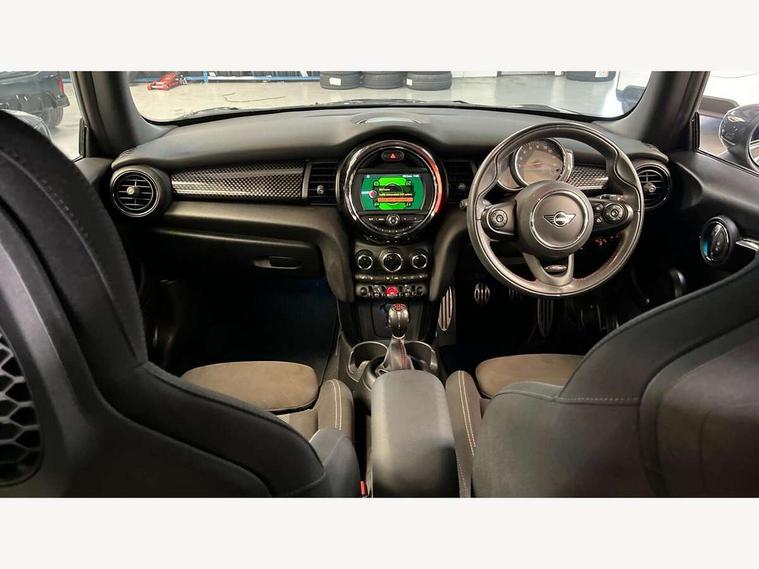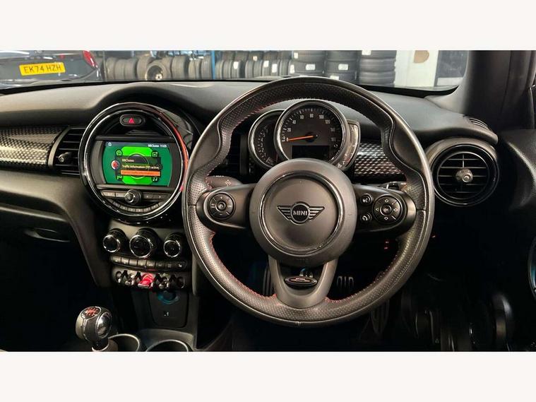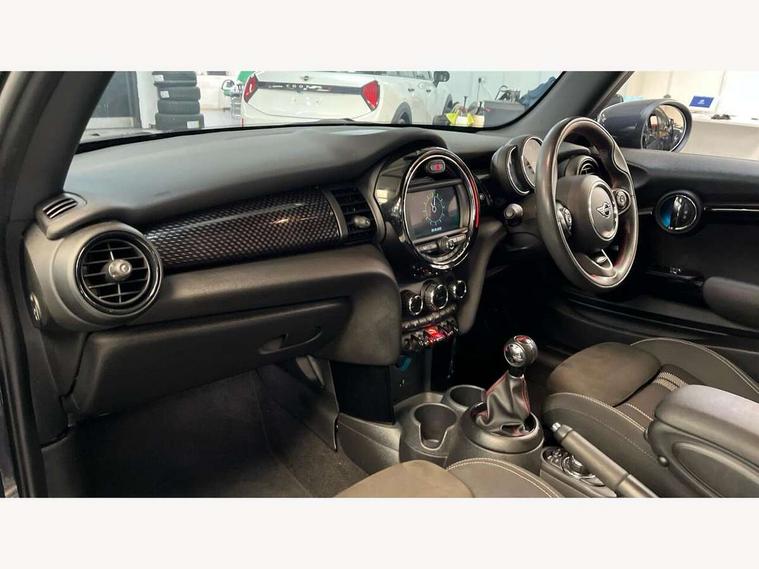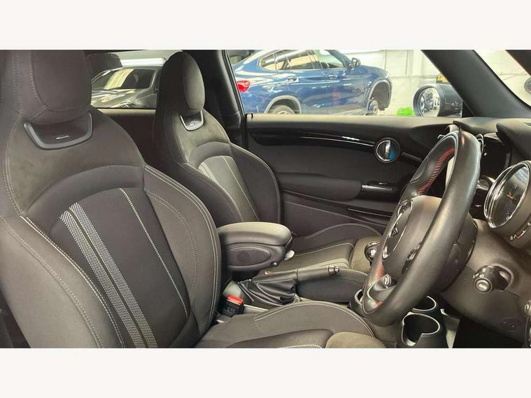 Automatic start/stop function with brake energy recuperation, Compatible mobile phone bluetooth with audio streaming, Electro-mechanical speed dependant steering assistance, Instrument cluster, Mini E-call, MINI TeleServices, On board computer, Service interval indicator, Double Vanos system, Fully variable valve control, High precision injection, Performance Control, 6.5" touchscreen with LED ring, FM tuner and DAB digital radio, Automatic headlight activation switch, Bonnet scoop, Chrome border honeycomb structure radiator grille with S badge, Chrome plated fuel cap, Dynamic brake lights, Electric front+rear windows, Heated rear window, Heated windscreen washer jets, John Cooper Works - aerodynamic kit (front and rear apron, spoiler), front and rear sport bumpers and part-painted side sills with door sill finishers, John Cooper Works rear spoiler, LED headlight with closed ring and daytime driving lights, Metal door sill strips with Cooper S imprint, Model logo Cooper S on right of tailgate, Rain sensor window wipers, Rear fog lights, Rear LED lights with union jack design, Rear window wiper, Side scuttle panel with integrated indicator, Sun/heat protection glass, Two central exhaust tailpipes with chrome finisher, White indicator lenses, 12V Accessory socket in centre console, 4 lashing eyes in luggage compartment, 60/40 split folding rear seat, Anthracite headlining, Chrome interior highlights, Cupholders, Front and rear head restraints, Front and rear isofix with front passenger airbag deactivation, Glove compartment, Height and length steering column adjustment, Interior lighting with 12 basic colours selectable via toggle switch in roof, John Cooper Works leather steering wheel with contrasting stitching in Chilli Red with John Cooper Works logo, John Cooper Works Logo in seat, Leather gearshift lever and handbrake gaiters, LED reading lights, vanity mirror lights, front foot well light and spotlight on front seats, Manual air conditioning, Mechanical seat adjustment, driver seat height adjust, forward/back and front seats backrest, Mini logo projection on floor from drivers exterior mirror, Multifunction steering wheel, Storage compartments in doors, Storage pocket on back of front seats, Sunvisors with vanity mirrors, 3 point seatbelts on all four seats, 6 Airbags - front, side, head and seat belt tensioners, Anti-lock braking system (ABS), DSC - Dynamic Stability Control, Front and rear disc brakes, Hill start assist, Two tone horn, Tyre pressure monitoring system, Alarm system with tilt sensor, monitoring doors, bonnet interior and tailgate, Electronic vehicle immobiliser, Start/stop toggle with keyless go, Tool kit,