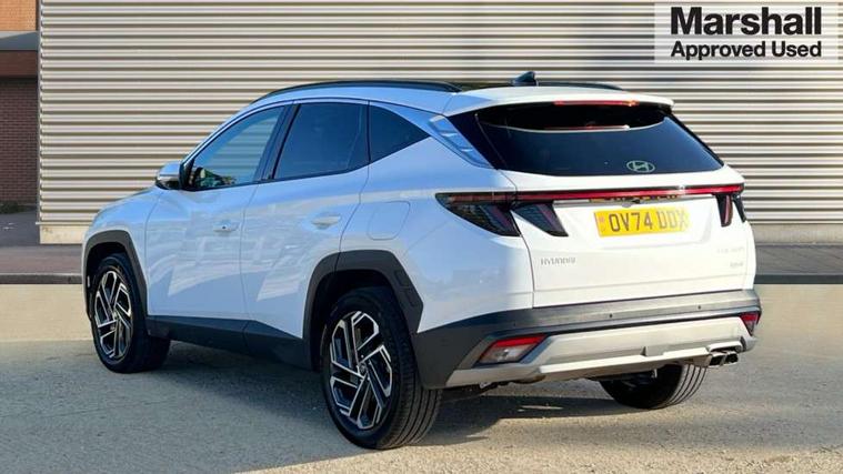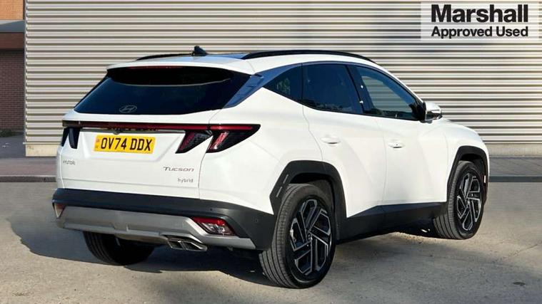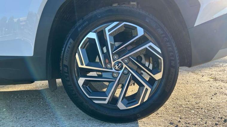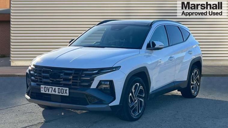 12.3" LCD display with driver's supervision instrument cluster, 12.3" widescreen navigation with bluelink and mapcare, Blind spot view monitor, Bluetooth system, Cruise control - smart adaptive speed control with stop and go function, Digital clock, Drive mode selector, Driver attention warning, E-call, Emergency stop signalling system, Forward Collision Avoidance Assist (FCA) - Car, Pedestrian and Cycle, Forward Collision Avoidance Assist Junction Turning (FCAJX), Front and rear parking sensors, Front, rear and side parking distance warning, Highway Driving Assist (HDA), Hyundai road side assistance, Intelligent speed limit assist, Lane follow assist, Lane keep assist, Over the air updates(OTA), Parking collision avoidance assist (PCA), PAS, Rear camera and guidance parking system, Rev counter, Smart power tailgate, Surround view monitor, Tailgate open warning light, Trip computer, Trip odometer, Voice recognition, Water temperature gauge, Windscreen washer fluid sensor and warning indicator, Wireless Apple CarPlay/Android Auto, Wireless phone charging pad, 2 front and 2 rear USB-C ports, DAB Digital radio, Krell premium audio system with 8 speakers and subwoofer, Steering wheel mounted audio/phone controls, Adjustable intermittent front windscreen wipers with aero wiper blade, Auto dimming rear view mirror, Automatic defog system, Automatic headlights with dusk sensor, Automatic windscreen wipers with rain sensor, Black wheel arches, Body colour bumpers, Body colour door mirrors with integrated indicators, Body colour exterior door handles, Electric tilt/slide panoramic sunroof, Electrically adjustable, heated and power folding door mirrors, Follow me home headlights, Front and rear electric windows with anti-trap mechanism and one touch control, Front fog lights, LED 3rd brake light, LED daytime running lights, LED rear lights, Matrix LED headlights, Positioning Lights - LED, Privacy glass - Rear windows and tailgate, Rear side wing doors, Rear wash/wipe with intermittent wipe setting, Roof rails, Tinted glass with windscreen shade band, Trailer stability assist, 12V power outlets in front console and luggage compartment, 3 seat bench in 2nd row, 40/20/40 split folding rear seat, 64 colours interior ambient lighting, Adjustable head restraints (Up and down), Cupholders in rear armrest, Door courtesy lights, Driver and passenger sunvisors with illuminated LED vanity mirrors, Driver's seat electric adjustments, Driver's seat memory, Front and rear door pockets, Front armrest with storage box, Front centre console and door bottle holders, Front passenger's seat electric adjustments, Heated front seats, Heated rear seats, Heated steering wheel, Height/reach adjustable steering column, Illuminated/air conditioned glove compartment, ISOFIX child seat anchorage points attached on outer rear seats, Leather upholstery, Leather wrapped steering wheel and gear knob, Luggage compartment lighting, Luggage cover, Luggage hooks, Luggage net, Map and reading lights, Rear seat remote folding function, Rear side window sunblind, Reclining rear seats, Retractable load cover, Single front passenger seat, Sunglasses holder, Three zone climate control, Touch sensitive climate controls with temperature dials, TUCSON branded metal door scuff plate, Underfloor boot compartment, Ventilated front seats, Trailer wiring package - Tucson, 3x3 point rear seatbelts, Active bonnet, Airbag - Front, front side, curtain and centre front airbags, Anti-lock brake system (ABS), Brake assist function, Childproof rear door locks, Curtain airbag roll over sensor, Downhill brake control, Electric parking brake, Electronic stability control, Front and rear seatbelt reminder, Front passenger airbag deactivation switch, Front seatbelt pretensioners, Hill start assist control (HAC), Multi-Collision braking, Outer rear seatbelt height adjustment, Seatbelt height adjustment for front seats, Traction control, Tyre pressure monitoring system with individual tyre pressure display - TPMS, Vehicle stability management, Deadlocks, Immobiliser, Locking wheel nuts, Remote control central locking, Smart key with keyless entry and engine start/stop button, Speed sensitive auto door locking, Thatcham category 1 alarm, 19" Alloy wheels, Tyre repair kit,