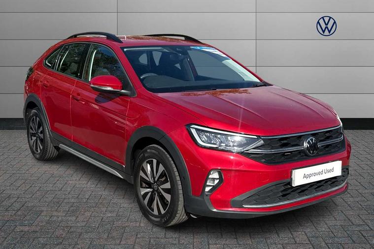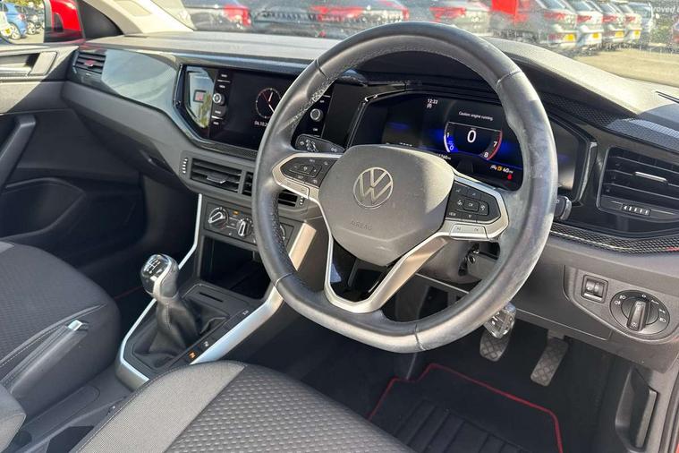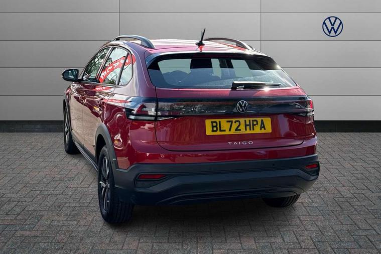 Driver alert system, e-Call (emergency call), Power Steering, Travel assist including emergency assist, Washer fluid level indicator, Wireless Charging including Bluetooth, Start-stop system with battery regeneration (recuperation - energy recovery during braking), WeConnect plus, Ambient lighting with logo projection, Aspherical driver's exterior mirror, Auto headlights, Body coloured bumpers, Body coloured exterior mirror housings and door handles, Electric windows, External USB type C socket and charging sockets, Front fog lamps with cornering function, Headlight range control, Heat insulating glass windscreen, LED headlamps, LED rear combination lamp, LED third brake light, Left convex exterior mirror, Power folding adjustable/heated exterior mirrors and front passenger exterior mirror lowering function, Rear fog light on one side, reversing light on both sides, Rear side wing doors, Rear wash/wipe with intermittent wipe setting, 'Slash/ Austin' Cloth upholstery, 12V socket in centre console, 2 front reading lights, 3 rear head restraints, 3 seat bench in 2nd row, Black carpets, Child seat anchor for child seat system i-Size, 2x top tether and child seat anchor in front on front passenger side, Door and side trim panels in titan black, Driver and front passenger seat height adjustment, Front centre armrest, Handbrake lever handle in leather, Height and reach adjustable steering wheel, Leather trimmed gear knob, Leather wrapped multifunction steering wheel, Luggage compartment floor, Luggage compartment light, Lumbar support for driver's and front passengers seat, Seat covers in titanium black, Single front passenger seat, Split folding backrest with centre armrest and unsplit rear seat bench, Storage compartment under front seats, Sun visors with illuminated vanity mirrors, Chrome Package - Taigo, Drivers assistance pack - Taigo, Light and Sight pack including High beam assist - Taigo, 2 x 3-point seatbelts/outer rear seats with ECE label, 3-point seat belts in front with pretensioner and height adjustment, 3-point seatbelt for centre rear seat, Driver and front passenger airbags with front passenger airbag de-activation, front side and curtain airbags, Driver and front passenger safety-optimised head restraints, Electronic stability control, Extended and predictive pedestrian/ cyclist protection, Front and rear disc brakes, Front curtain and side airbags with center airbag, Hill start assist, Manual rear child locks, Single tone horn, Tyre pressure loss indicator, Anti-theft alarm system with interior monitoring, backup horn, and towing protection, Anti-theft wheel bolts, Lava stone black gloss/matt decorative inserts in dash and front door panels, Low rolling resistance tyres,
