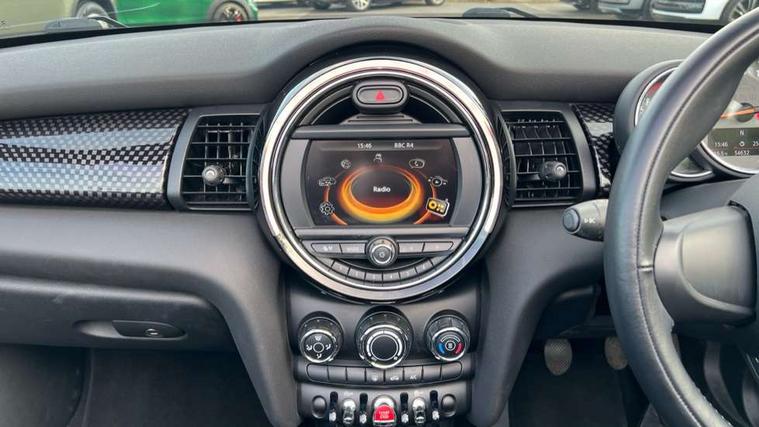Acoustic seat-belt warning, Brake fluid level warning light, Brake pad wear indicator warning light, DTC - Dynamic traction control, Exterior temperature gauge, Intelligent emergency call, MINI TeleServices, Oil level indicator, On board computer, Rear view camera, Service interval indicator, Servotronic PAS, Stop/start button, Electronic differential lock, Auxiliary input socket, DAB digital radio module, Radio visual boost with MINI Connected, Anti dazzle mirror, Anti trapping/one touch open close front windows, Body coloured bumpers, Chrome bezels around rear lights and headlights, Chrome door handles, Chrome exhaust tailpipe, Chrome plated fuel cap, Chrome plated radiator grille, Electric front windows, Electrically adjustable door mirrors, Follow me home headlights, Heated door mirrors, Heated rear window with auto timer, Heated windscreen washer jets, High gloss black tailgate handle, Honeycomb radiator grille, Metal look door sill finishers, 2 rear head restraints, 4 boot load lashing points, 50/50 split folding rear seats, 6-way manually adjustable driver's seat, Active carbon filter, Auxiliary socket in centre console storage compartment, Centre console storage, Driver/passenger sunvisors and vanity mirrors, Easy entry seats, Front and rear cupholders, Front head restraints, Front sports seats with front seat backrest storage nets, Gear/selector and handbrake in artificial leather, Glovebox, Internal chrome door handles, Isofix child seat preparation, Luggage compartment lighting, Reach + rake adjustable steering column, Storage compartments in doors, Toolkit in luggage compartment, 3 point seatbelts, ABS/EBD, ASC+T, Cornering brake control (CBC), Crash Sensor - activates hazard/interior lighting + unlocks doors, Driver and passenger airbags, Driver/front passenger side airbags, DSC - Dynamic Stability Control, Fuel cut off safety device, Head airbags, Hill start assist, Passenger airbag deactivation system, Seatbelt pretensioners, Tyre pressure warning, Drive away door locking, Keyless Start, Locking wheel bolts, Remote central locking/doors+fuel cap+tailgate, Second remote key, Thatcham category 1 alarm + immobiliser,