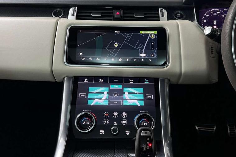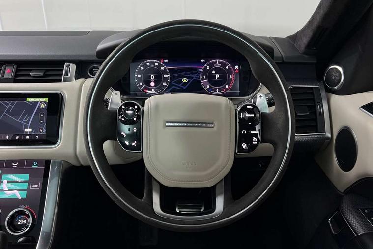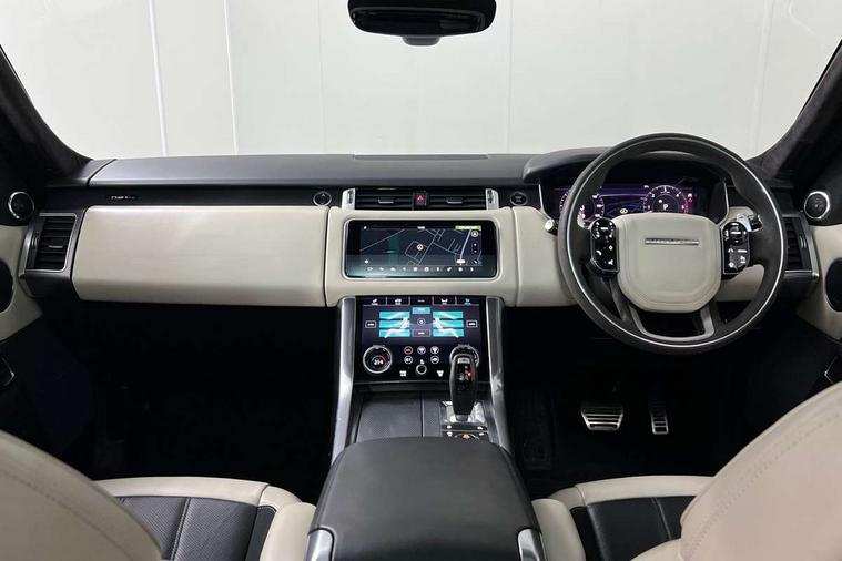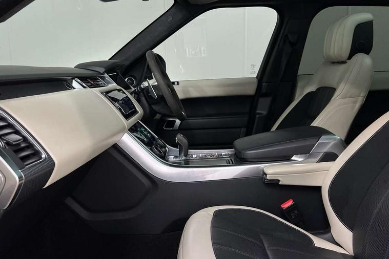 360 Parking aid, All Terrain Info Centre, Android Auto, Apple car play, Bluetooth connectivity, Clear exit monitor, Driver condition monitor, Electric power assisted steering (EPAS), Incontrol apps in vehicle touchscreen, Interactive Driver display instrument cluster, Mist sensor, Navigation pro system with 10" touch screen, app interface and media storage, Powered gesture tailgate/boot lid, Pro services and wifi hotspot, Push button start, Rear traffic monitor, Remote premium - Upgraded Incontrol remote app including remote climate control (engine dependent), remote lock + Unlock and remote beep + flash, TFT Virtual Instrument Panel, Touch pro duo system, Traffic sign recognition with adaptive speed limiter, Trip computer, Adaptive dynamics, All terrain progress control, Configurable dynamics, Electronic active differential with brake torque vectoring, Electronic air suspension with dynamic response (active roll control), Engine cover, Gradient release control (GRC), Terrain Response 2 with dynamic program, Twin speed transfer box, Bluetooth audio streaming, DAB Radio (Digital Audio Broadcasting), Incontrol protect - SOS emergency call with automatic collision detection, optimised assistance call and Incontrol remote app essential, USB/aux input socket, Acoustic front and toughened rear side glass, Acoustic laminated front windows, Adaptive brake lights, Auto dimming interior rear view mirror, Automatic headlights, Body coloured side sills and bumpers corners, Electric windows with one touch open/close and anti trap, Electrical towing preparation, Follow me home lighting, Front and rear recovery eyes, Front fog lights, Headlight power wash, Heated rear window, Heated windscreen includes heated washer jets, HST badge, Illuminated metal tread plates with brand name script, LED rear lamps, Narvik black mirror caps, Power fold, auto-dimming, heated door mirrors with memory and approach lights, Privacy glass (Tinted glass rear of B pillar), Rain sensing windscreen wipers, Rear fog lights, Rear wash/wipe, Remote window closing, Side repeater indicators in mirror, Sport Badge in black, Standard bonnet, Trailer stability assist, Twin bright tailpipes, 2 way active front head restraints, 2 way rear head restraints, 60/40 load through rear seats, Aluminium gear shift paddles, Auto air recirculation, Bright metal foot pedals, Centre console with armrest, Climate control memory, Customer configurable single point entry, Driver's footrest, Extended leather upgrade includes door top rolls and leather instrument panel mid section, Front and rear cupholders, Front door storage space, Front map lights, Front seat back map pockets, Front stowage pocket, Front/rear passenger grab handles, Heated steering wheel, Isofix child seat preparation, Loadspace light, Loadspace mounting provisions, Lockable glovebox, Multifunction steering wheel, Pollen filter, Power socket, Reach/rake electric adjustable steering column + entry/exit tilt away, Rear centre armrest, Rear ISOFIX, Roller blind loadspace cover, Sports pedals, Suede cloth headlining, Suede cloth steering wheel, Three 12V accessory power outlets, Carbon fibre exterior pack - Range Rover Sport, Smartphone pack - Range Rover Sport, 3 point seatbelts on all seats, Anti-lock braking system (ABS), Brake pre-fill technology, Cornering brake control (CBC), Curtain airbags, Customer configurable autolock, DSC - Dynamic Stability Control, Dual stage driver/passenger airbags, EBD - Electronic brakeforce distribution, Electric parking brake, Electronic traction control, Emergency braking includes city, urban AEB and pedestrian, Front seatbelt pretensioners, Gradient acceleration control, Height adjustable front seatbelts, Hill descent control, Hill launch assist, Low traction launch, Passenger seat occupant detector with front airbags, Power operated child locks, Roll stability control, Seatbelt warning, TPMS (Tyre pressure monitoring system), Immobiliser, Intrusion sensor, Keyless entry, Locking wheel nuts, Perimetric and volumetric anti theft alarm, Remote locking,