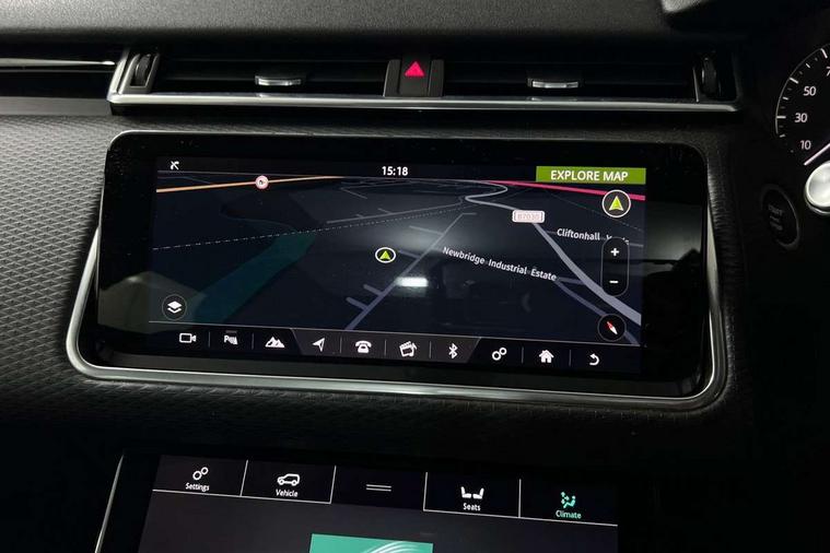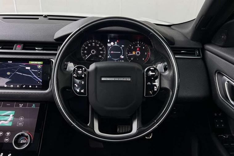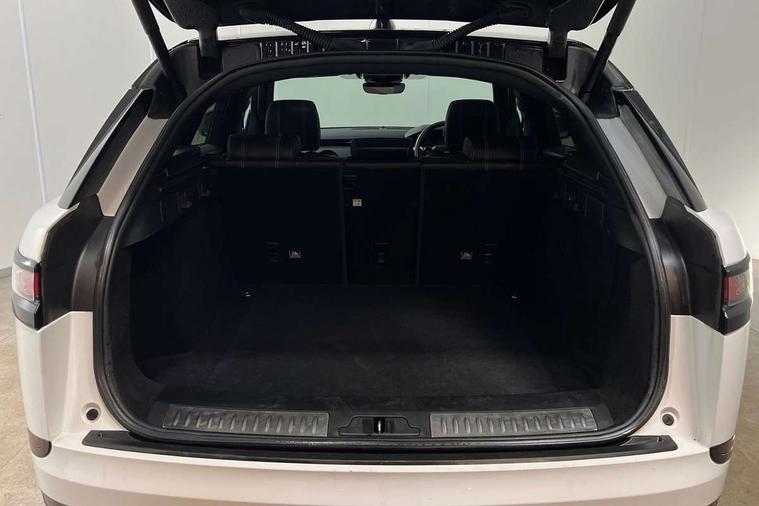 Bluetooth system, Driver condition monitor, Electric power assisted steering, Gesture tailgate, InControl remote, InControl Touch navigation pro, Land Rover InControl apps, Lane keep assist, Pro services and wifi hotspot, Service indicator, Speed proportional steering, Traffic sign recognition with adaptive speed limiter, Trip computer, Voice control system, Coil suspension system, Torque vectoring differential, DAB Digital radio, Steering wheel mounted controls, Acoustic windscreen, Auto dim internal rear view mirror, Automatic headlamp levelling, Automatic headlights, Body coloured bumpers, Boot lid spoiler, Electric front/rear windows/one touch operation, Flush deployable exterior door handles, Follow me home headlights, Heated rear window with timer, Heated windscreen, R Dynamic badge, Rain sensor windscreen wipers, Rear fog lights, Rear wiper, S badge, Trailer stability assist, Velar badge, 40:20:40 split folding rear seats, Adjustable front armrest, Bright finish pedals, Driver and passenger illuminated vanity mirror, Front and rear head restraints, Isofix system on outer rear seats, Loadspace cover, 3x3 point rear seatbelts, ABS + traction control, Cornering brake control, Curtain airbags, Door side intrusion beams, Driver airbag, DSC - Dynamic Stability Control, Electronic brake force distribution, Electronic parking brake, Emergency brake assist, ESP, Front and rear seatbelt reminder, Hill launch assist, Low friction launch, Passenger airbag, Power child locks, Rear airbags, Roll stability control, Side airbags, Tyre pressure monitoring system, Immobiliser, Keyless entry, Perimetric alarm, Remote central locking,