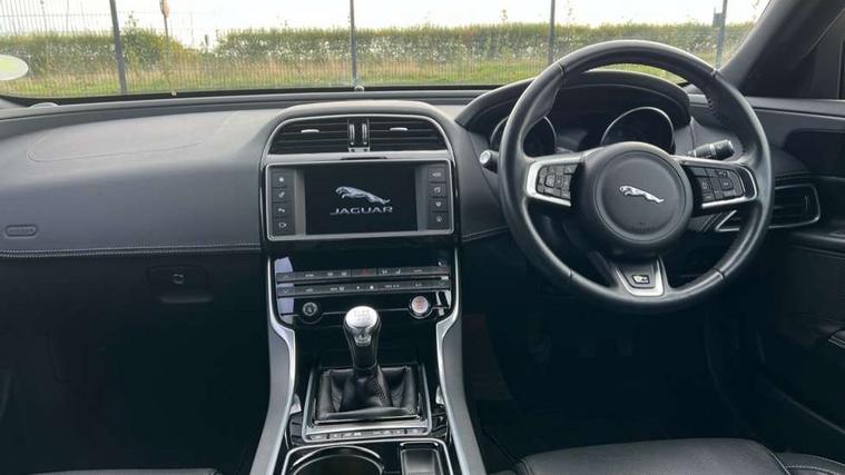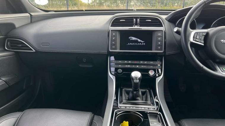 Bluetooth telephone connectivity, Cruise control + speed limiter, InControl remote, Jaguar Voice front, Lane departure warning system, Outside temperature gauge, Rear parking sensor, Service interval indicator, Servotronic PAS, Traffic sign recognition, Trip computer, Sports suspension, Auxiliary input socket, Bluetooth audio streaming, DAB digital radio module, Dynamic volume control, InControl app, InControl protect, Radio, USB/iPod connection, Approach lamps, Auto dimming rear view mirror, Automatic headlights, Body colour bumpers, Body colour door mirrors, Body coloured side sills, Electric front/rear windows with one touch/auto up/down, Green tinted heat insulating glass, Headlight washers, Heated rear windscreen, LED rear lights, Rain sensor windscreen wipers, Rear spoiler, 12V power point front/rear, 3 rear seat head restraints, Auxiliary heater, Dual zone automatic climate control, Front centre armrest with storage compartment, Front storage compartment, Isofix child seat preparation, Jaguar sense, JaguarDrive selector, Jet headlining, Leather steering wheel, Lockable glovebox, Luggage tie-down hooks, Multifunction sports steering wheel, Overhead console with sunglasses holder, Perforated taurus sports leather upholstery, Rear air vents, Rear armrest with cupholder, Shopping hook in boot, Sports seats, Storage compartment in front doors, Storage compartment in rear doors, Twin front cupholders, ABS, Anti-whiplash front headrests, Autonomous emergency braking, Brake pad warning light, Driver/Front Passenger airbags, DSC - Dynamic Stability Control, Electronic parking brake, Emergency brake assist, Front and rear seatbelt reminder, Front passenger seat occupancy sensor, Front side airbags, Hill start assist, Power child locks, Side curtain airbags, Three 3 point rear seatbelts, Torque vectoring brake, Traction control, Tyre pressure monitoring system, Driver's central locking switch, Immobiliser, Locking wheel nuts, Perimeter alarm, Remote central locking, Knurled Aluminium IP Finisher, Leather dashboard,