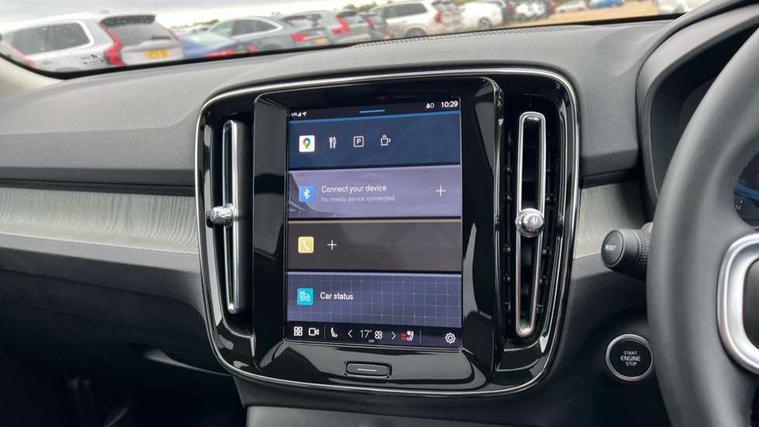 12.3" Progressive Driver Display, 360 degree surround view parking camera with side proximity sensors, 9" centre console portrait touch screen, Adjustable steering wheel force, Apple carplay (wired), Bluetooth handsfree system, Driver alert control, Driver assistance (pilot assist and adaptive cruise control), Driver awareness - Blind spot information system with steer assist, cross traffic alert with autobrake and rear collision warning and mitigation, E-call, Google automotive services - Enabled entertainment apps, navigation with google maps, voice recognition with google assistant, Hands free power tailgate, Intelligent speed assistance, Lane keeping aid, Oncoming Lane Mitigation, Speed sensitive steering, Volvo cars services with app - Driving journal, emergency and breakdown call, engine remote start, remote door locking/unlocking and vehicle dashboard, Wireless/Inductive Mobile Phone Charging, Automatic transmission with start/stop and manual change functions, Dynamic chassis, DAB Digital radio, Premium Sound by Harman Kardon, Dolby Pro Logic II Surround Sound, Dirac Unison, 12 speakers/600W and subwoofer, Steering wheel mounted remote controls, Active bending pixel LED headlights with adaptive shadow technology, Active high beam incorporating daytime running lights, Adaptive brake lights with high level LED brake lights, Auto dimming feature for exterior door mirrors, Auto dimming interior mirror, Automatic headlamp levelling, Dark tinted windows - rear side windows and rear screen, Front aluminium tread plates, Front and rear electric windows, Headlight cleaning system, High gloss black front and rear skid plate, High gloss black front bumper deco, High gloss black mesh front grille with high gloss black surround, High gloss black window trim, Home safe and approach lighting, Integrated roof rails in high gloss black, LED front fog lights with cornering function, Power glass tilt and slide panoramic sunroof with sun curtain, Puddle lights, Rain sensor with automatic windscreen wiper activation, Rear side wing doors, Rear wiper, Roof antenna, Roof spoiler, Visible VIN plate, 12V socket in front tunnel console and luggage compartment, 2-Zone electronic climate control with CleanZone air quality system and pollen filter, 3 seat bench in 2nd row, 3 Spoke tailored steering wheel with chrome trim, 60/40 versatile split folding rear seat, Centre console cupholders and storage, Flexible load floor and grocery bag holder, Floor mats, Front cabin courtesy lights, Front door pocket, front cupholder, ambient front door, rear reading, rear courtesy, instrument panel and tailgate lighting, Front footwell illumination, Front headrests, Front reading lights, Front seat cushion extensions, Front side step illumination (under door), Glovebox bag hook, Heated front seats, Height/reach adjustable steering column, High gloss centre tunnel deco, Illuminated glovebox, Illuminated luggage compartment, Illuminated vanity mirrors + ticket holder, Integrated waste bin, Isofix attachments on outer rear seats, Load cover, Load protection net, Multi directional lumbar support for driver and passenger seat, Power driver seat with memory + exterior mirrors memory, Power folding rear headrests, Power passenger seat, Rear armrest with cupholders, Single front passenger seat, Underfloor cargo storage, Climate pack without heated front seats - XC40, 3x3 point rear seatbelts, City safety with steering support with Pedestrian + cyclist + front collision warning with full auto brake and rear auto brake, Driver and passenger airbags, Drivers knee airbag, Electronic parking brake with auto hold, First aid kit, Front and outer rear seatbelt reminder and pretensioners, Front seats SIPS airbags, Hill descent control, Hill start assist, Inflatable curtain, Passenger airbag cut-off device, Power child locks on rear doors, Road sign information display, Run off Road Protection, SIPS (Side Impact Protection System), Slippery road and hazard light alert, Stability and Traction Control with Spin control, Engine Drag Control and Corner Traction Control, Tyre pressure monitoring system, Vehicle deceleration control with Anti-lock Brake System, Electronic Brake Distribution and Emergency Brake Assist, Warning triangle, WHIPS whiplash protection system - front, 2 x Key integrated remote control central locking including with deadlocking system and auto open/close windows and sunroof, Anti-theft alarm including immobiliser/volume sensor + level sensor, Keyless drive includes keyless entry and keyless start, Locking wheel nuts,