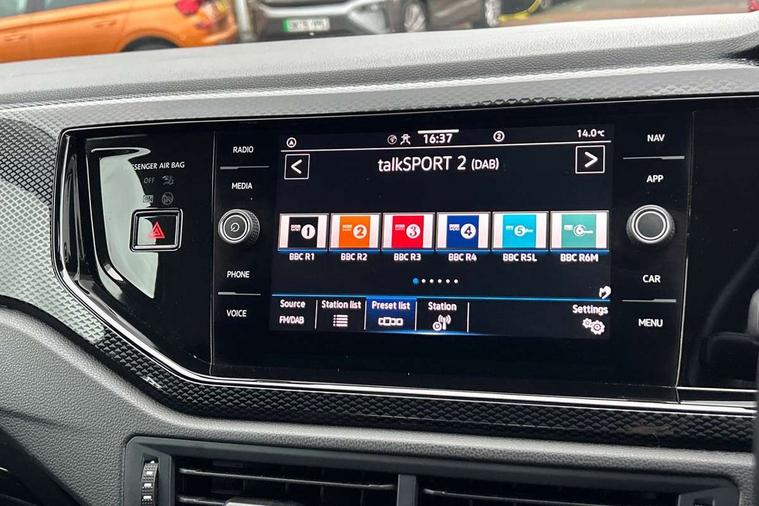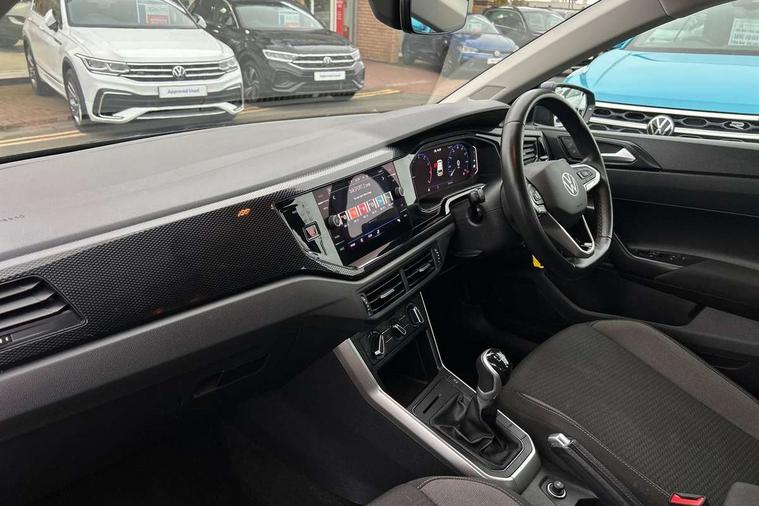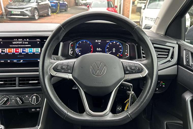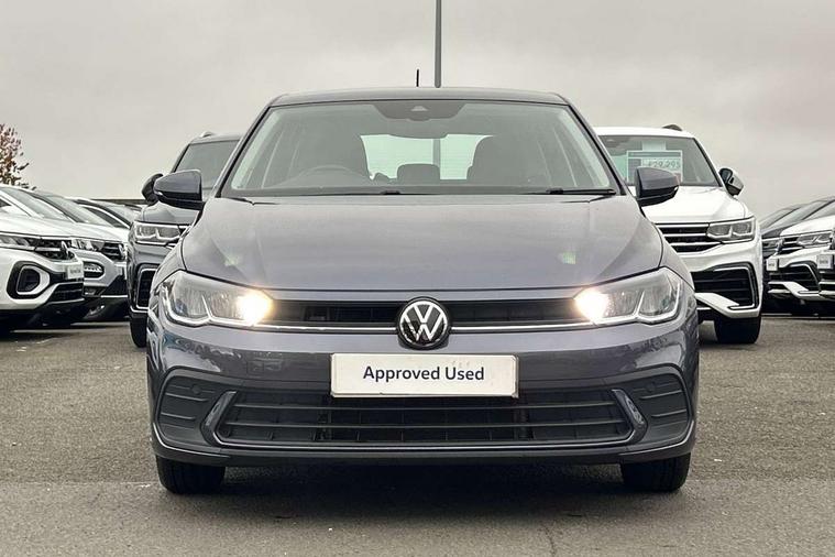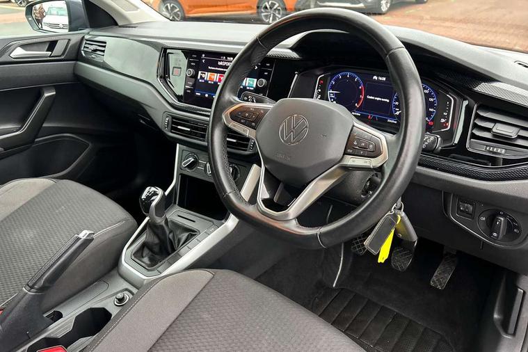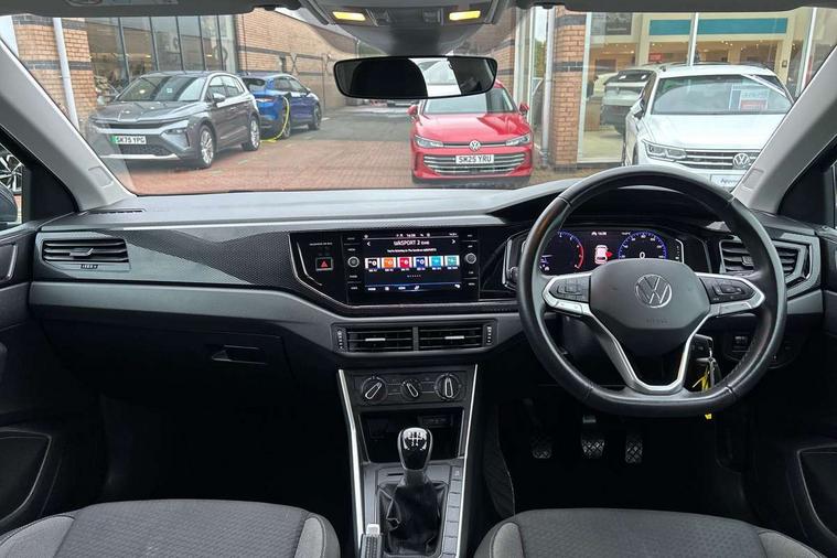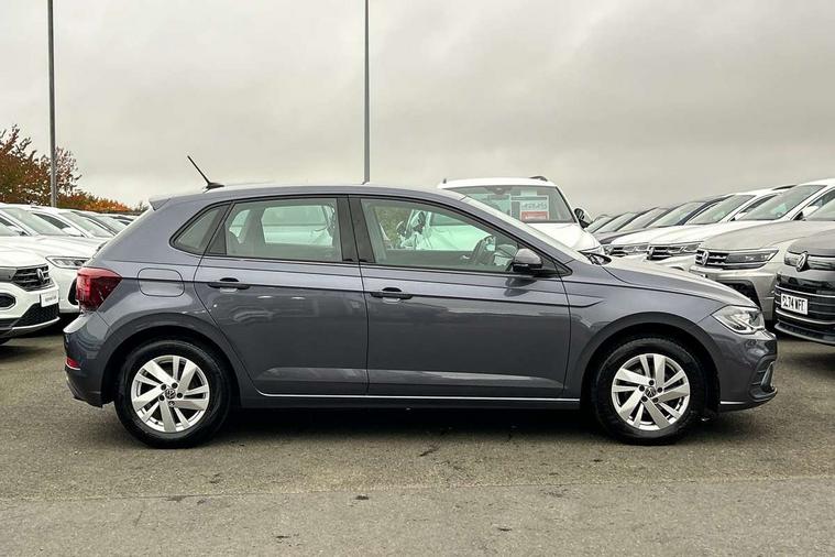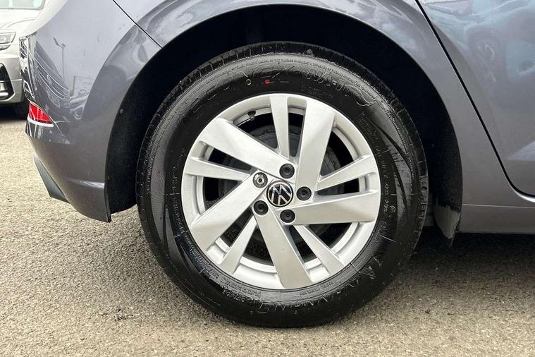 Adaptive cruise control without follow-to-stop and speed limiter, Bluetooth mobile phone interface, Driver alert system, Emergency call service, Front assist system, Power assisted speed sensitive steering, Preparation for We connect and We connect plus, Speedo and rev counter, electronic odometer, trip, service interval display and fuel gauge, Standard rear axle, Travel Assist - Lane keeping system and traffic jam assist, Travel assist including emergency assist, Trip computer, Warning signal and warning light for front and rear seatbelts not fastened, Washer fluid level indicator, Wireless app connect, Front wheel drive, Rear shock absorpion, Start-stop system with battery regeneration (recuperation - energy recovery during braking), DAB Digital radio, Diversity antenna for FM reception, Front and rear 6 speakers, Automatic dimming interior rear view mirror, Body colour bumpers, Body colour door handles, Body colour door mirrors, Electric front windows, Heat insulating darkened glass in side and rear windows, Heat insulating glass windscreen, Power folding adjustable/heated exterior mirrors and front passenger exterior mirror lowering function, Rain sensor, Rear electric windows, Rear fog light, Rear side wing doors, Rear windscreen washer and wiper with interval delay, Third brake light, 12V power socket in centre console, 2 front and 2 rear reading lights, 2 USB-C ports in the front, 2 USB-C charging sockets on the center console in the rear, 3 rear head restraints, 60/40 split folding rear seat and rear seat bench not split, Ceramique headliner, Chrome plated radiator grille inserts, air vent surrounds and light switch surrounds, Door and side trim panel, Driver and front passenger seat height adjustment, Driver/passenger sunvisors with illuminated vanity mirrors, Front centre armrest, Front seat backrest storage pockets, Front standard seats, Handbrake lever handle in leather, Hartley/Thomas cloth upholstery, Isofix child seat preparation easy-fit (for two outer rear seats, and front passenger seat) compatible with I-size, Leather trimmed gear knob, Luggage compartment cover, Luggage compartment floor, Luggage compartment lighting, Multifunction steering wheel, Single front passenger seat, Standard pedal cluster, Light and vision pack - Polo, 3 point height adj front seatbelts + pretensioners, 3x3 point rear seatbelts, ABS, Driver and front passenger airbag with front passenger airbag deactivation, Drivers and front passengers safety optimised head restraints, ESC (Electronic stability control) + EDL (Electronic Differntial lock) and ASR (Traction control), Extended and predictive pedestrian/ cyclist protection, Front curtain and side airbags with center airbag, Front disc brakes, Hill hold control, Manual child lock in rear doors, Rear drum brakes, Single tone horn, Tyre pressure loss indicator, Alarm with interior protection, Anti-theft alarm system with interior monitoring, backup horn, and towing protection, Anti-theft wheel bolts, Electronic engine immobiliser, Lava stone black gloss/matt decorative inserts in dash and front door panels, Low rolling resistance tyres,