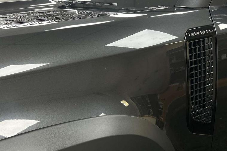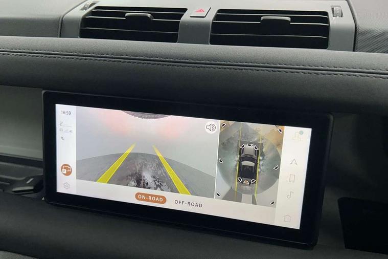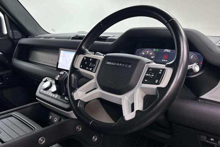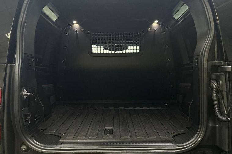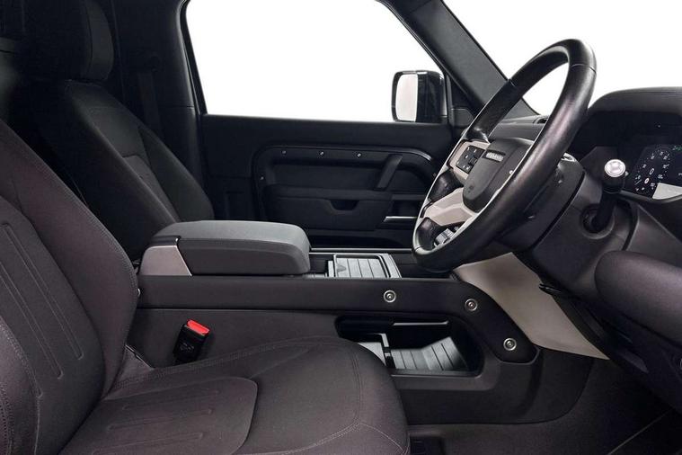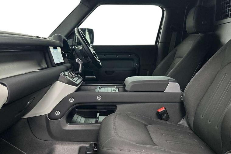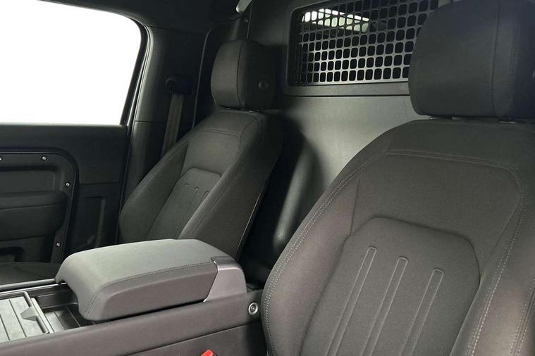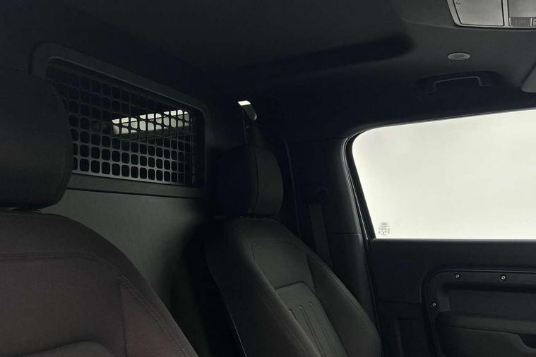 Customer Configurable Autolock, 360 parking aid, 3D Surround Camera with 360 View, 180 Rear View, Front Traffic Detection, Forward Vehicle Guidance, Tow Hitch Assist and clear sight Ground View, Brake Hold, Driver condition monitor, Electric power assisted steering (EPAS), Lane keep assist, Less wireless charger, Low traction launch, Pivi pro connected, Rain sensing wipers, Traffic sign recognition adaptive speed limiter, Trip computer, Tyre pressure monitor, Wade Sensing, Android Auto, Apple CarPlay, DAB Radio (Digital Audio Broadcasting), Sound system with 140W and 4 speakers, Alpine lights, Assisted tailgate, Centre high mounted stop light, Electric heated/power fold door mirrors with approach lights and auto dimming driver side, Electric windows with one touch open/close and anti-trap, Exterior signage panel, Follow me home lighting, Heated rear window with timer, LED tail light, Privacy glass, Puddle lights, Rear fog lights, Rear wash wiper, Side-hinged tailgate, Standard roof, Standard tread plates, 40:20:40 fixed rear seats, 8 way heated semi powered front seats with manual headrest, Cabin lighting, Carpet mats, Dual zone climate control, Durable rubber cabin flooring, Fabric upholstery, Footwell lights, Glovebox storage, High sided rubber mats, Loadspace hooks, Loadspace rubber mat, Manual adjustable steering column, Overhead stowage for sunglasses, Rear centre headrest, Rear reading light, Sunvisors with illuminated vanity mirrors, Twin front cupholders, Online pack - Defender with data plan, Brake pad wear indicator, Electronic traction control, Emergency braking, Front airbags, with passenger seat occupant detector, Power operated child locks, Remote for (e-Call, Optimised assistance call, InControl app, Climate, beep and flash and door), Seat belt reminder, Intrusion sensor, Locking wheel nuts, ABS and EBA, CBC - (Cornering brake control), Coil suspension system, Dynamic stability control, Electronic park brake, Gradient acceleration control, Hill Descent Control, Hill start assist, Particulate filter (DPF), Push button start, Roll stability control, Trailer stability assist,