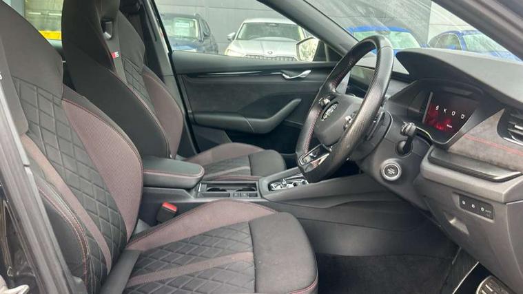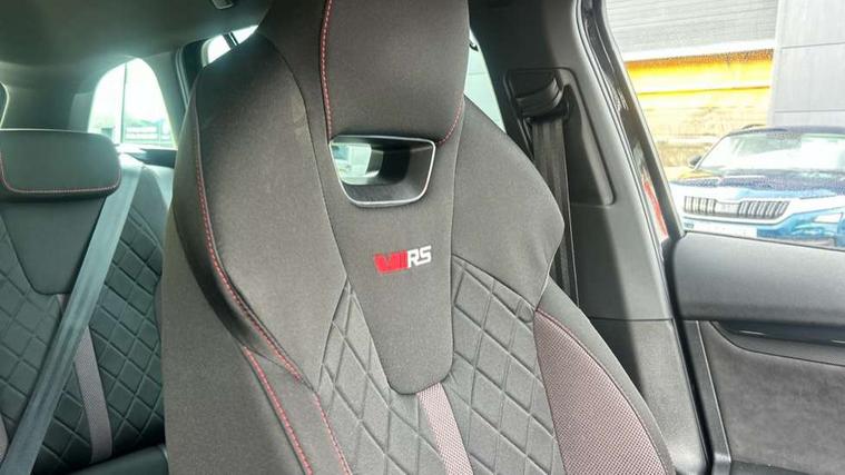 1x USB Type C port in rear view mirror (charging only), 2x USB Type C ports in rear of front centre armrest (charging only), Blind spot detection+electrically adjust, heated, folding, driver side auto-dimming+passenger tilt by reversing door mirrors with memory+boarding spots, Bluetooth system, Colour multifunction trip computer, Columbus satellite navigation with 10" touchscreen display, Drive mode selector, Front assist system, Progressive dynamic steering, Smartlink (includes android auto and mirrorlink), Speed limiter, Turn Assist, Virtual Cockpit - 10.25" digital display, Voice control system, Wireless SmartLink for Apple Car Play, Front and rear stabilizers, Sports suspension with 15mm lower, 2x USB Type C ports (for charging and data transfer), DAB Digital radio, Swing radio with 8.25" touchscreen, Aero front windscreen wipers with intermittent function, Auto dimming rear view mirror, Black roof rails, Body colour door handles, Chrome exhaust tailpipes, Door sills with vRS logo, Electric front and rear windows, Exterior gloss black sports styling including front grille, side strip, window surrounds, door mirror and badging, Full LED Matrix headlights with AFS, rear LED lights and dynamic indicators and cornering front fog lights, Heated rear windscreen, High level third brake light, Ice scraper in fuel cap, Rain and light sensors, Rear fog light on one side, Rear privacy glass, Rear spoiler, Rear window wiper, 3 rear headrests, 4 foldable roof handles, Alcantara padded dash panel with contrast stitching, Aluminium pedals, Black headlining, Chrome inner door handles, Cloth upholstery, Front centre armrest, Front head restraints, Heated front seats, Height adjustable driver and passenger seat with lumbar support, Illuminated air conditioned glovebox, Leather trimmed gearshift lever, Luggage compartment lighting with two side lamps, Mechanical rear seat release, Parcel shelf - rolling, Satin black textured with artificial stiching in dash board pads, Sun visors with mirrors, Sunglasses storage, Textile floor mat set, Three spoke leather sports multifunction steering wheel with paddles, Ticket holder, Umbrella in door panel, Unsplit rear bench seat and split folding backrest, LED interior light pack - Octavia, 3 point front/outer rear seatbelts+pre-tensioners, Alarm with interior monitoring, tilt sensor and back up horn, Automatic door unlocking in case of crash, Automatic fuel cut off in case of crash, Automatic warning lights in case of emergency braking, Drivers knee airbag, Electronic parking brake, Emergency call and proactive services, ESC including ABS, EBV, MSR, ASR, EDS, HBA, DSR, Front and rear disc brakes, Head and curtain airbags, Hill hold control, Hill start assist, ISOFIX on front passenger seat and outer rear seats, Passenger airbag deactivate switch, Red brake calipers, Two tone horn, Tyre pressure monitor, Visual and acoustic seat belt reminder, Warning reflectors in front door, Door locks with immobiliser, Keyless entry and start/stop including rear doors, Remote central locking, Carbon optic decorative inserts, Gloss black air vent surrounds, 19" Altair anthracite alloy wheels,