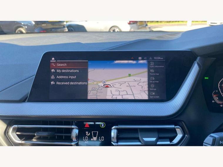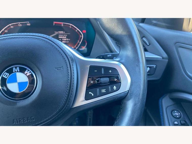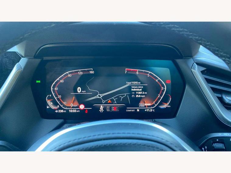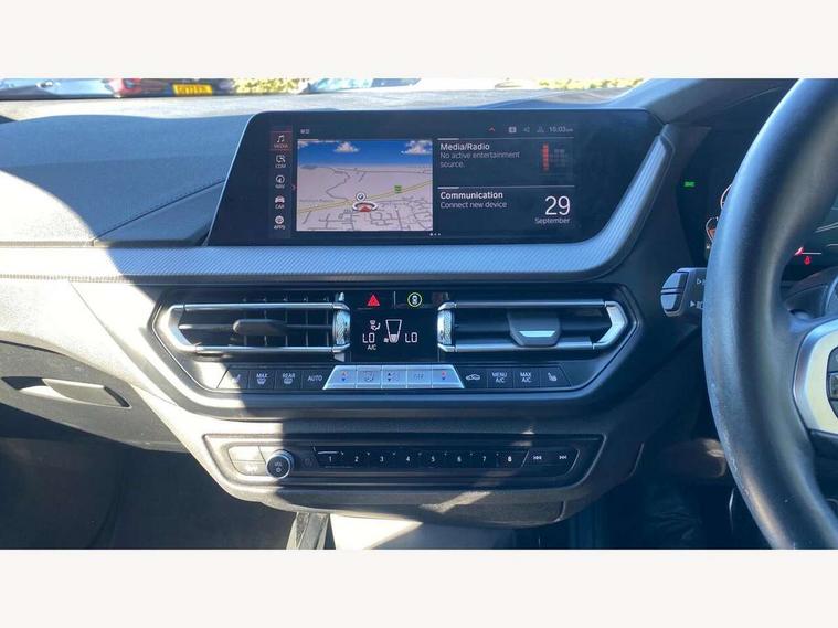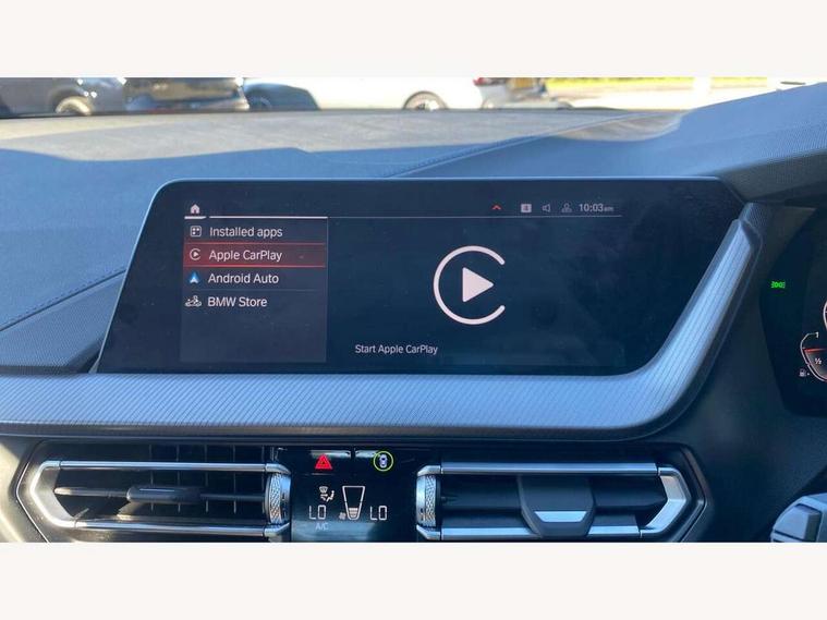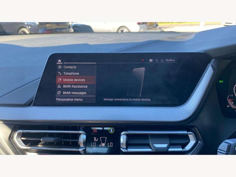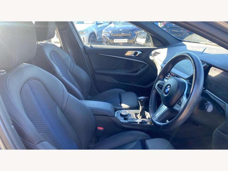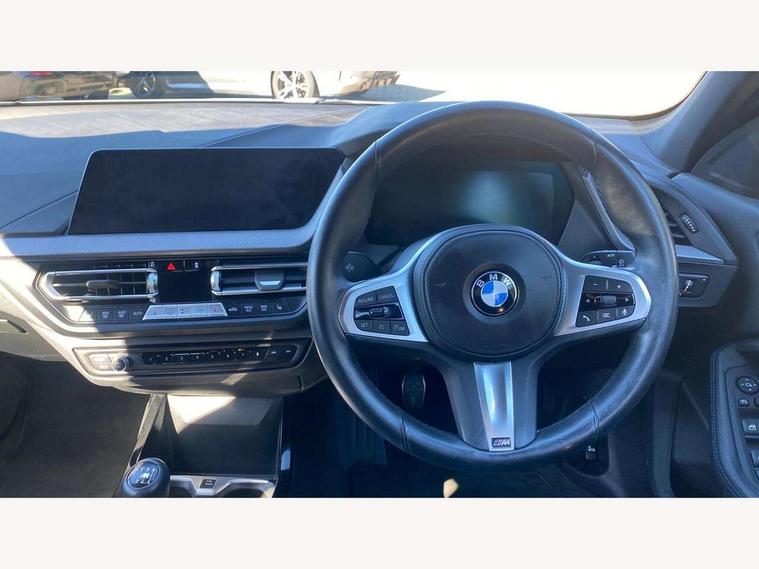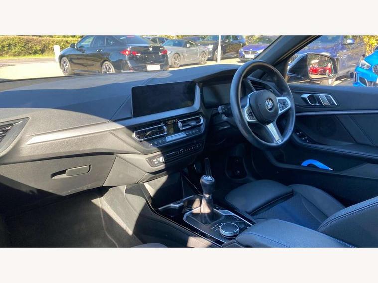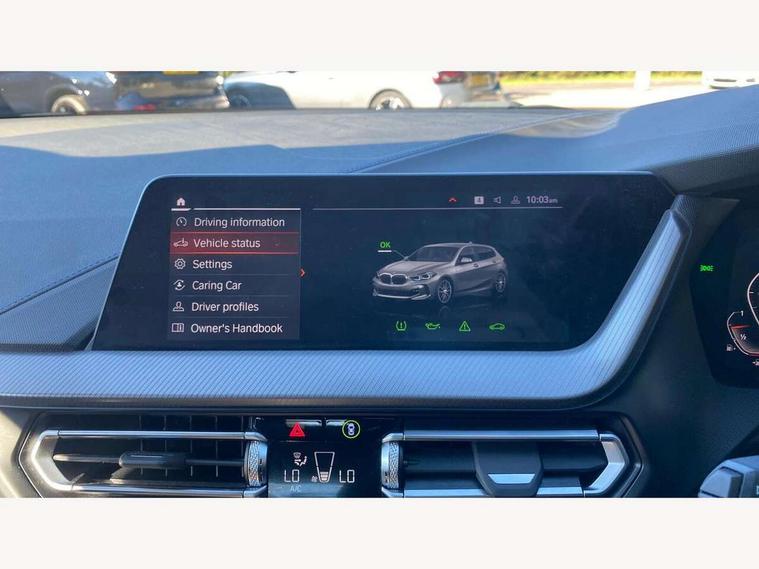 Active guard plus, Attentiveness assist, BMW ConnectedDrive online services, BMW Teleservices, Check Control warning system for monitoring of lights and door/luggage compartment open warning, Cruise control with brake assist, Eco pro mode, Front axle single joint with specific axle kinematics to minimise drive influences on steering + provide increased rigidity agile driving behaviour, Integrated owners handbook, Lane departure warning system, Oil sensor for level and grade, On board computer, Optimum shift indicator, Personal Profile, Pull away assistant, Rigidly mounted rear subframe - Multi link construction with separate spring / damper configuration and excellent driving characteristics, Speed limit Info including no-overtaking indicator, Speed limiter, Aluminium lightweight construction, Anti roll bar front and rear, Balancer shaft, Double VANOS twin scroll turbocharging system, Drive Performance Control, Electronic differential lock, High precision injection, M sport suspension, Petrol Particulate Filter, Twin tube gas filled shock absorbers with degressive characteristic curve, VALVETRONIC engine management, DAB Digital radio, Auto dimming rear view mirror, Automatic headlight beam throw control, Automatic windscreen wipers and automatic headlight, Body colour door handles, Body colour mirror caps, Body colour roof trims, Chrome 'M' logo side designation, Chrome exhaust twin tailpipes round 90mm in left, Chrome kidney grille frame with Satin Aluminium struts, Direction indicator side lights in exterior mirrors, Fading support, Folding side mirrors with auto dimming/folding wing mirrors with auto dimming, Follow me home headlights, Front and rear bumper system with replaceable deformation elements, Front and rear electric windows with open and close fingertip control, anti trap facility and comfort closing, Front door sill finishers in black plastic with M designation in metallic look, Green tinted heat protection glazing, Heated, electrically adjustable exterior mirror aspheric on driver side, convex on passenger side, High gloss shadowline window frame, Recess cover mirror frames and B/C pillar embelisher trim, High level third brake light, Integrated front windscreen with washer jets, LED daytime running lights, LED eyebrow turn indicators, LED front fog lights, LED Headlights, Lightweight engineering, Matt black air guide grilles, Matt black wheel arch trim, Model designation on electric bootlid, Nearside reverse light in rear light cluster, Preparation for high beam assistant, Rear fog lights, Rear side wing doors, Rear window wiper, Shark fin antenna, Trailer stabilisation logic, Visible VIN plate, Welcome lighting, 12V power socket in front centre console with blanking plug, 3 rear seat head restraints, 3 seat bench in 2nd row, 3 spoke sports leather steering wheel in black leather with black stitching and decorative finisher in pearl chrome, specific M badge + leather knob, Anthracite headlining, Black boot net with lashing eyes, Cargo function on 2nd seat row, Child seat ISOFIX attachment for two outer rear seats and front passenger seat with anchorage points, Conditioned based service, Driver and front passenger seat heating, Folding rear clothes hook, Four grab handles integrated in roof lining, Front and rear door pockets with bottle holders, Front and rear side armrest integrated into door trim, Front armrest, Front sports seats, Gearshift lever with M designation, Glove compartment, Height adjustable front head restraints, Luggage compartment for bag hooks on left and right, foldable luggage compartment liner and four lashing eyelets, Manual adjust steering wheel, Multi-function controls for steering wheel, Single front passenger seat, Storage compartment in centre console, Sun visors with vanity mirrors and insert tab, Two front centre console cupholders, Two zone automatic air conditioning, Velour floor mats, Additional interior lighting pack - 1 Series, BMW live cockpit professional pack- 1 Series, Connected pack professional - 1 Series, Interior lights pack - 1 Series, M Sport exterior styling aerodynamics pack - 1 Series, 2 tone horn, 3 point seatbelts on all seats, front pyrotechnic belt tensioners, stopper and belt force limiters, rear coded belt buckles, Airbags - Front driver/passenger, front and rear curtain head protection, front side, manual deactivation of front passenger airbag, Anti lock braking system (ABS) with brake assist, BMW emergency call, Brake drying, Braking readiness, Child proof locking system in rear door, City braking function, Comfort modes, Cornering brake control, Crash sensor activating central locking release, hazard warning lights, fuel cut off, interior lighting + activation of safety battery terminal clamp, Driver and front passenger seat belt security check, Dynamic stability control + (DSC+), Dynamic Traction Control - DTC, Electrically operated hand brake, Front and rear disc brakes, Seatbelt warning, Side impact protection, Tyre pressure monitoring system, Warning triangle and first aid kit, Central locking switch for all doors, fuel filler cap and luggage compartment, Deadlocking function system to all doors, Drive away locking system on all doors and luggage compartment with de-activated in iDrive settings, Locking wheel bolts, Remote control with integrated key with High-gloss Black inlay and M designation and 1 button for open/ close lock, window, open luggage compartment, Start/stop button illuminated in centre console with keyless engine start and auto start stop deactivation button, Thatcham Cat.1 alarm and immobiliser, Wheel slip limitation close to the actuator (ARB), Contrast stitching on instrument panel, Electrically powered 12V compressor, Reduced rolling resistance tyres,