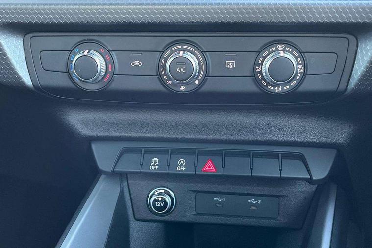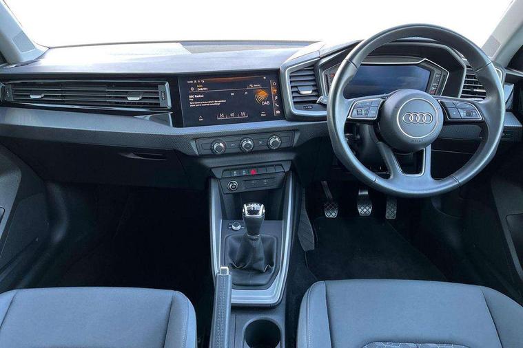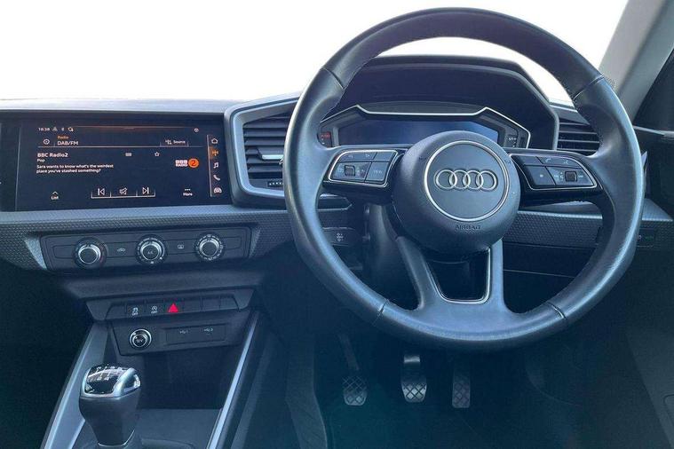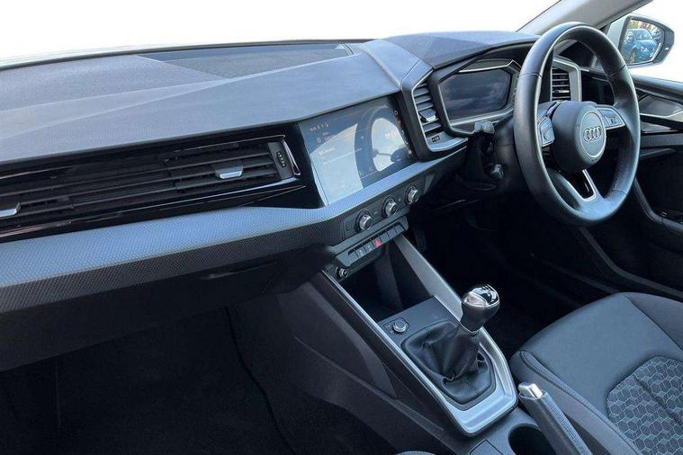 10.25" Digital instrument cluster display classis style instrument dials + speed, odometer, time, outside temperature, telephone menu + fuel level warning, Audi smartphone interface with connect compatible smartphone via USB directly MMI display + Nav, music, third party apps controlled via MMI controller, Automatic start/stop system, Bluetooth interface, Cruise control, Driver's information system, Electromechanical power steering, Emergency e-call, Lane departure warning system, Rear parking sensor, Service interval indicator, Speed limiter, Voice control system, Washer fluid level indicator, Dynamic suspension, 2 x USB type C connection points, 6 passive loudspeakers, DAB Digital radio, MMI radio plus with 10.1" colour MMI display screen and MMI touch, Auto dimming rear view mirror, Body coloured bumpers, Body coloured door mirrors, Electric front and rear windows, Electrically adjustable, heated, folding door mirrors with integrated LED side indicator, Front side air inlets in grained matt black and C frame in anthracite black, Heat insulating glass windscreen and side windows, Heated rear windscreen, High level LED brake light, LED headlights with LED rear lights + dynamic rear indicators + headlight adjustment and high beam, turning light + LED daytime running lights, Radiator grille and rear diffuser in matt anthracite black, Radiator protective grille frame in matt aluminium silver, Rain and light sensors, Rear fog lights, Rear side wing doors, Rear wiper, Side front spoiler lips in grained matt black, 12V socket in centre console with two cup holders, 3 rear seats with headrests, 3 seat bench in 2nd row, 3 spoke leather multifunction plus steering wheel, 40:60 Split folding rear seat or folded fully, Black front and rear floor mats, Door sill trims with aluminium inlay, Driver and passenger seat with manual height adjust with forward and backwards adjustment, Front head restraints, Front passenger seat, Grey cloth headlining, Height and reach adjustable steering wheel, ISOFIX child seat mounting for front passenger and outer rear seats including top tether attachment point of outer rear seats, Leather gear knob with aluminium trim, Leather handbrake grip, Luggage compartment light with front and rear reading lights, Manual air conditioning, Manually adjustable lumbar support in front seats, Novum cloth upholstery with front sport seats, Luggage compartment pack - A1, 3x3 point rear seatbelts, Audi pre-sense front with pedestrain and cyclist recognition, Brake assist function, Driver and front passenger airbag with front side and head airbags, Electronic Stability Control including ABS, EBD, ASR and EDL, Front passenger airbag deactivation switch, Hill hold assist, Manual rear child locks, Seatbelt height adjustment for front seats, Seatbelt monitoring, Tyre pressure warning light, Warning triangle and first aid kit, Anti theft alarm, Anti theft wheel bolts and loose wheel warning, Immobiliser, Remote central locking with 2 foldaway keys, Aluminium trim for control switches, air vents and digital instrument cluster, Black dashboard, Silver grey accent areas including air vents, door handle recesses and centre console in diamond paint finish, Slate grey inlays polygon structure in fine paint finish,