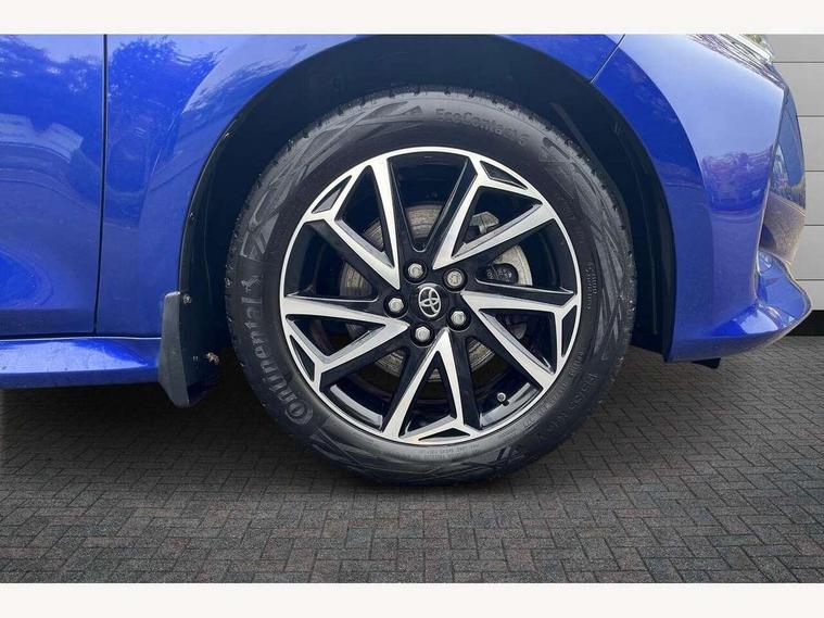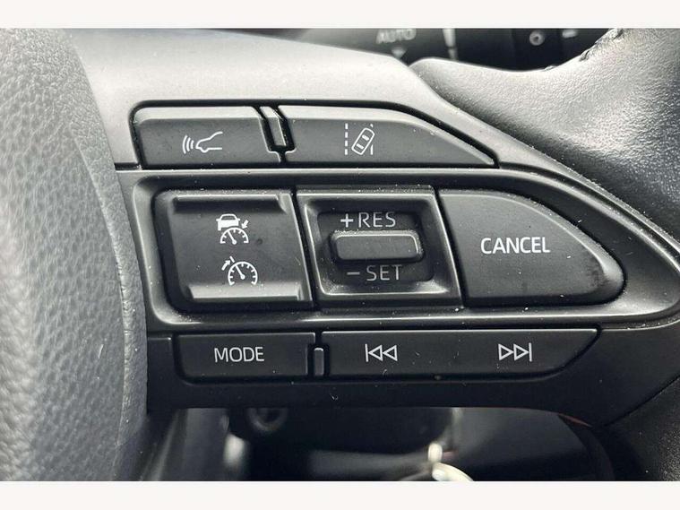 Adaptive cruise control, Adjustable speed limit with speed warning, Bluetooth connectivity, Colour binocular inspired displays with digital speedometer, E-call, Electric power steering, Hybrid energy display, Multi information display switches on steering wheel, Reversing camera, Smartphone integration with Apple CarPlay and Android auto, Tailgate, Voice recognition, Vehicle Stability Control (VSC), 4 speakers, 8" Multimedia display touch screen, USB connection, Acoustic windscreen glass, Auto windscreen wipers, Automatic headlights, Body coloured door mirrors, Electric adjustable heated door mirrors, Follow me home headlights, Front auto power windows with anti jam protection, Full LED rear lights, LED daytime running lights, LED front fog lights, LED front light guide, LED Headlights, LED High mounted stop lamp, LED Indicators, LED rear light guide, Manual headlight levelling, Painted chequered front grille, Rain sensor, Rear auto power windows with anti jam protection, Rear privacy glass, Rear side wing doors, Rear spoiler, Rear wiper, Shark fin antenna, Turning signal integrated indicators in door mirrors, Variable front intermittent wipers, 3 adjustable rear headrests, 3 spoke leather steering wheel, 60/40 split folding rear seat, Active headrests, Adjustable boot height, Auto air conditioning, Coat hooks in rear grab handles, Cup holders (2 front & door), Data Communication Module (DCM) connected services, Fabric upholstery, Front armrest, Glovebox, Grey roof lining, Height adjustable driver's seat, Isofix seat fixing, Leather gearshift, Pollen filter, Shopping bag hooks, Single front passenger seat, Tilt/telescopic steering column, 3 point seatbelts on all rear seats, ABS+EBD+Brake assist, Electronic parking brake, Emergency brake light system (EBS), Front passenger airbag on/off switch, Front seatbelt reminder, Hill start assist control (HAC), Rear child proof door locks, Rear seat belt reminder, Supplemental Restraint System (SRS) 8 airbags: Driver & passenger's airbags, dual side curtain airbags, side impact airbags, front centre airbag, Toyota Safety Sense 2, Precollison + Night time Pedestrian & Cyclist Detection, Lane Trace Assist, Auto High Beam, Intelligent ACC & Road Sign Assist, Tyre pressure warning system, 2x Master key, Alarm/immobiliser, Remote powered central double locking doors, Soft touch instrument panel, Space saver spare wheel,