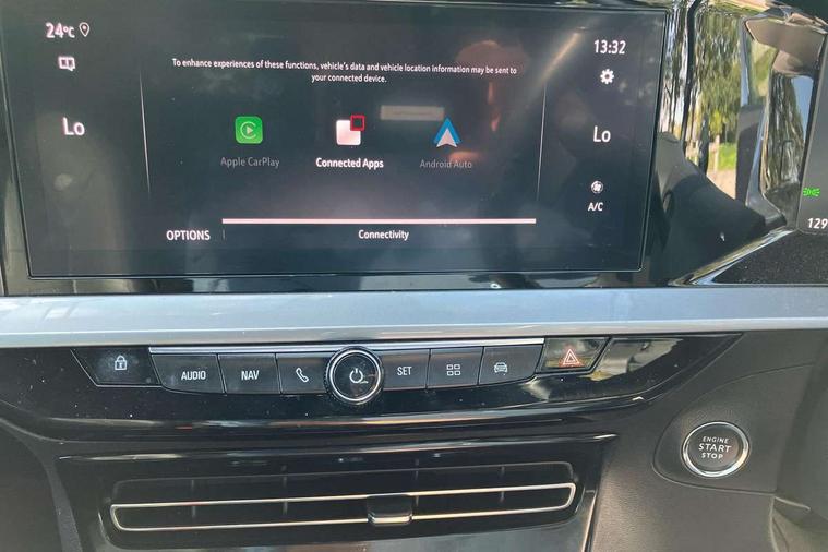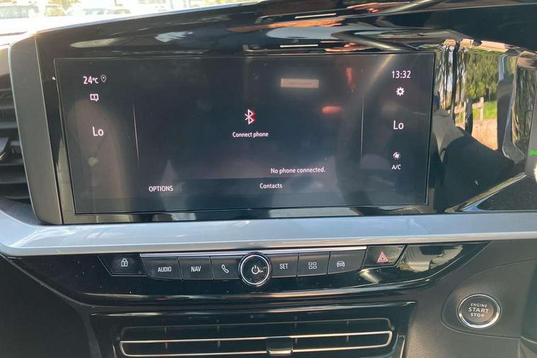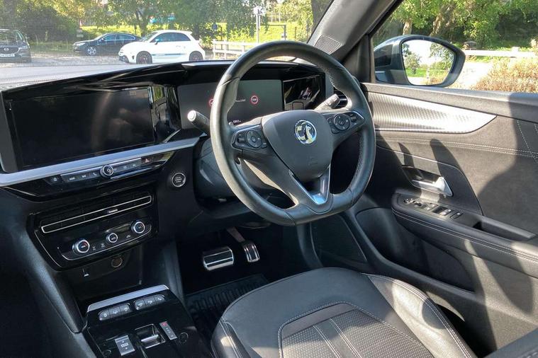 12" digital instrument cluster, Advanced Park Assist, Automatic adaptive cruise control, Digital instrumentation with digital speedometer, rev counter, fuel and water temperature gauge, Driver drowsiness alert system, Driver information display with multi function trip computer, audio info, digital clock and outside air temperature with ice warning function, Engine start/stop button, EV information display, Front and rear parking distance sensors, Front camera system, Lane keep assist system (LAS) with Lane departure warning system (LDWS), Lane positioning assist, Lights on audible warning, Panoramic rear view camera, Power assisted speed sensitive steering, RDS with traffic programme, Side blind spot alert and flank guard, Smartphone integration compatible with Apple CarPlay and Android Auto, Speed sign recognition, Sports switch with engine sound enhancement, Start/stop system, Traffic sign recognition, Vauxhall connect with e-Call, 8 speed automatic transmission, 6 speakers, AM/FM stereo radio with 36 station presets, Bluetooth A2DP audio streaming, DAB Digital radio, Flexible Roof Mounted Radio Aerial, Front USB connection, Mobile phone portal - bluetooth connect, vehicle microphone, handsfree calls, SMS read out and reply, phone book access, Multimedia Navi Pro with 10" colour touchscreen, Steering wheel mounted controls, Two rear USB sockets, Adaptive brake lights, Automatic headlamp levelling, Automatic lighting control with tunnel detection, Automatically dimming anti dazzle rear view mirror, Black door mirror housings, Body colour door handles, Body colour front and rear bumpers, Chrome effect front and rear bumper inserts, Chrome effect Griffin logo and vizor frame, Chrome effect skid plates, Chrome effect upper window moulding, Dark tinted rear side windows + tailgate window, Electric folding door mirrors, Electrically operated front and rear windows with safety auto reverse and one touch up/down facility, Hazard warning lights, Heated rear window+rear wash/wipe, High beam assist with anti glare, Integrated black tailgate spoiler, IntelliLux Matrix LED headlights with adaptive forward lighting, LED 3rd brake light, LED daytime running lights, LED front fog lamps, LED side repeat indicators, LED tail lights, Rear foglight, Rear side wing doors, Reversing light, Solar heat absorbing windscreen and windows, Twin electrically adjustable and heated door mirrors, Two speed rain-sensitive windscreen wipers with variable intermittent wipe, Windscreen and side window demist vents, 12V Accessory socket, 3 seat bench in 2nd row, 3 spoke flat bottomed leather steering wheel with satin chrome bezel, 4 speed fan with illuminated controls, 6 way manual adjustable driver fore/aft, up/down with reclining seatback, 6 way manual adjustable front passenger fore/aft, up/down with reclining seatback, Air recirculation system, Alcantara/leather upholstery, Alloy sports pedals, Black headliner, Cabin particulate filter - removes dust, airborne particles and pollen, Centre console with two cup holders at front and one in rear, Chrome effect interior door handles, Door pockets with two litre capacity, Driver and passenger sun visors with vanity mirror, Electronic climate control (ECC), Four adjustable facia vents, Four load restraint lashing eyes, Front centre armrest with storage, Front head restraints, Front map reading lights, Front seat back storage pockets, Fully carpeted load area, Heated front seats, Heated steering wheel, Interior courtesy light, Interior tailgate handle, Luggage compartment cover, Luggage compartment lighting, Movable boot floor, Reach + rake adjustable steering column, Single front passenger seat, Three height adjustable rear seat head restraints, Twin gas assisted tailgate struts, 2x Isofix child seat fitting on outer rear seats, 3x3 point rear seat belts, Anti-lock braking system (ABS), Child proof locks on rear doors, Cornering brake control, Deactivation switch for front passenger front and side impact airbags, Drag torque control, Driver and front passenger airbags, front seat side impact airbags, full size curtain airbags, Electronic brake force distribution, Electronic Stability Programme (ESP), Emergency brake assist, Enhanced automatic emergency city braking, Forward collision alert at all speed, Hill start assist, Inertia reel lap and diagonal seatbelts for all seats, Seatbelt unfastened audible warning and warning light, Straight line stability control, Traction control, Tyre pressure monitoring system, Electronically protected audio equipment, Engine deadlock immobiliser, Freewheeling door locks, Key left in ignition audible warning, Keyless entry and start, Locking wheel nuts, Remote control central locking, Remote control ultrasonic security alarm system, Visible vehicle identification number, Atlantis black trim inserts of front doors, Black facia with silver trim insert, Instrument panel bar in polar silver, 18" bi colour alloy wheels,