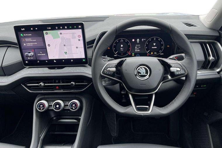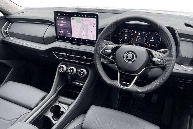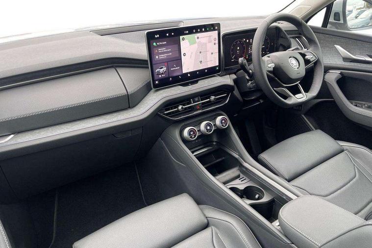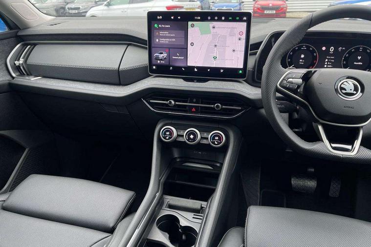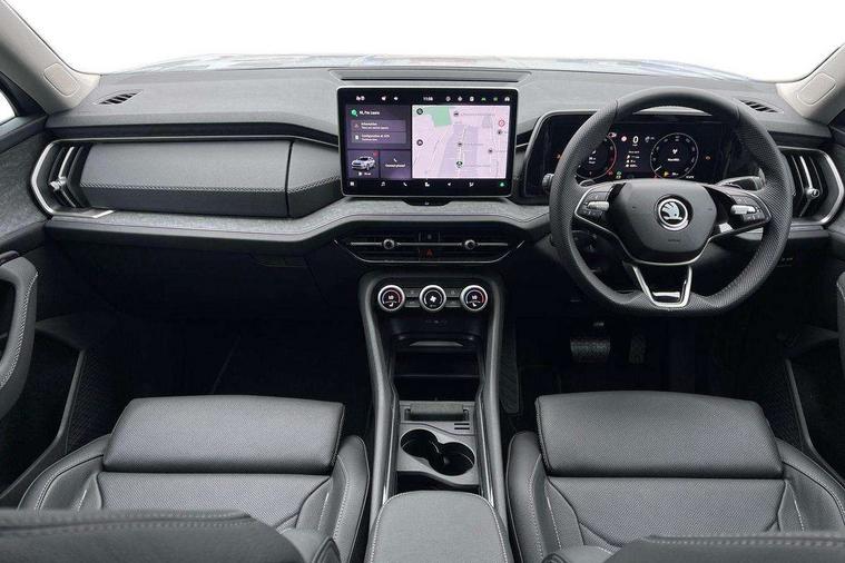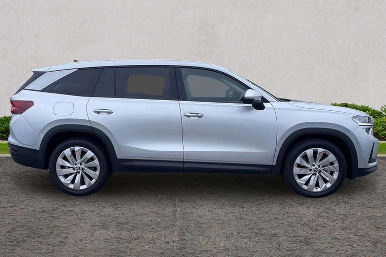 13" satellite navigation touchscreen display, Blind spot detection with door exit warning, Bluetooth system, ChatGPT functionality, Driver alert - Fatigue and drowsiness monitor, Dry display cleaner, Emergency call, Front and rear parking sensors, Front cross traffic assist, Lane assist, PAS, Rear traffic assist, Tailgate unlocking from outside, Traffic sign recognition, USB C Port x 2 in front centre console, Virtual Cockpit - 10.25" digital display, Voice control system, Wireless charging for two smartphones (15W) with cooling function, Wireless SmartLink for Apple CarPlay and Android Auto, Stop/start function, 2x USB-C in the rear, DAB Digital radio, Aero front windscreen wipers with intermittent function, Auto dimming rear view mirror, AWL (all weather lighting) and all weather light with cornering function, Black wheel arch surrounds, Body colour bumpers, Body colour door mirrors and handles, Cornering light and poor weather light, Electric folding /adjustable/separted heated/folding door mirrors, auto dimming with boarding sports and memory function, Electric front and rear windows, Exterior black decorative trims, Heat insulating glass in windshield, Heated rear window, Ice scraper in fuel tank cap, Invisible tailpipe, LED daytime running lights, LED third brake light in rear spoiler, Light assistant with automatic headlight control and coming home feature, Logo projection in door mirrors, Privacy glass, Rear roof spoiler, Rear side wing doors, Rear window wiper, Red decorative strip between rear LED lights, Safety reflectors on front and rear doors, Unique dark chrome design logo on alloy wheels, Window control switches with black trim, Windscreen wipers with rain sensor, Without engine designation, 1.5l bottle holder points in all door, 1x centre rear reading light, 2 seat bench in 3rd row, 3 configurable smart dials with 32mm coloured display, 3 seat bench in 2nd row, 4 foldable roof handles with rear coat hooks, Ambient interior lighting - Dashboard, front-door stowage compartments, front and rear door panels and footwell lighting, Automatic gear selector on steering column, Chrome interior door handles, Driver/front passenger reading lights, Fabric headlining, Fixed bench 40:60:40 split folding backrests, Front and rear floor mats, Front centre armrest with jumbo box storage compartment, cup holder and 12V socket, Height adjustable front headrests, Isofix child seat fittings in outer middle row rear seats and front passenger with top tether, Manually adjustable steering column, Pollen filter, Rear centre armrest with cupholders, Rear seat boot backrest release, Single front passenger seat, Skoda lettering on steering wheel, Storage pocket including mobile phone pockets on the backs of the front seats, Sunvisors with illuminated vanity mirrors, Three rear height adjustable headrests, Ticket holder on A Pillar, Tri zone climate control, Umbrella in door panel x1 made from sustainable materials, Upper and lower glovebox with card holder and coin compartment, USB C port by rear view mirror for charging only (15W), Exterior styling pack - Kodiaq, Auto door release and activation of warning lights in the event of an accident, Driver and front passenger airbag with knee airbag and front passenger airbag deactivation, Electric child locks, Electronic parking brake, ESC (incl. ABS+EMD+MSR+ASR+EDL+HBA+DSR+RBS+ESBS+MCB+TSA+XDS), Front assist with braking reaction to vehicles, pedestrians and cyclists, Front disc brakes, Fuel cut off safety device, Height adjustable front 3 point seatbelts + pretensioners, Hill hold assist, Junction assist with automatic emergency braking, Rear disc brakes, Safety vest holder in door, Seat belt reminder for all seats, Three point rear seat belts, Two tone horn, Tyre pressure monitor, Anti-theft wheel bolts, Immobiliser, Remote central locking with 2 keys,