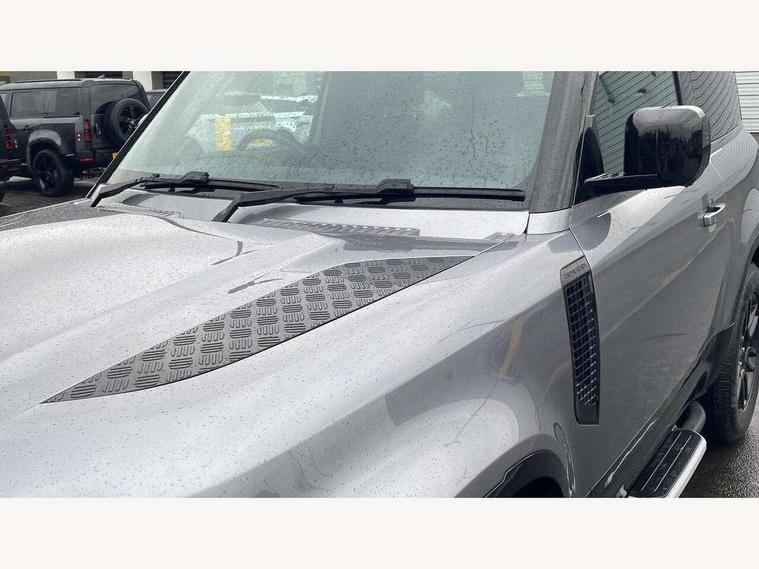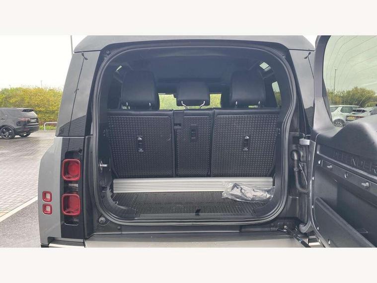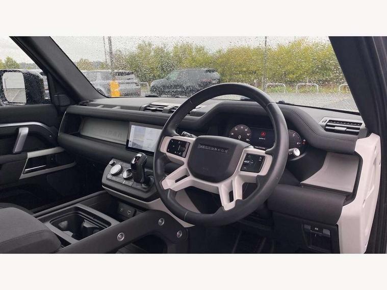 360 degree parking aid, 3D Surround Camera with 360 View, 180 Rear View, Front Traffic Detection, Forward Vehicle Guidance, Tow Hitch Assist and clear sight Ground View, Android Auto, Apple CarPlay, Assisted tailgate with soft close, Blind spot assist, Bluetooth system, Brake pad wear indicator, Clear exit monitor, Connected navigation pro, Driver condition monitor, Electric power assisted steering (EPAS), Lane keep assist, Push button start, Rear traffic monitor, Traffic sign recognition with adaptive speed limiter, Trip computer, Wade Sensing, 8 speed automatic transmission, All wheel drive system, Twin speed transfer box, DAB Radio (Digital Audio Broadcasting), Meridian 400w sound audio system with 11 speakers and subwoofer, Pivi pro connected, Automatic headlight levelling, Automatic headlights, Centre high mounted stop light, Electric heated/power fold door mirrors with approach lights and auto dimming driver side, Electric windows with one touch open/close and anti-trap, Follow me home lighting, Front fog lights, Heated rear window with timer, Heated windscreen, LED tail lights, Panoramic rear side glass, Privacy glass, Puddle lights, Rain sensing windscreen wipers, Rear fog lights, Rear wiper, Side hinged tailgate, Trailer stability assist, X-Dynamic badge, 12V power socket in loadspace, 3 seat bench in 2nd row, Alpine lights, Durable rubber cabin flooring, Durable rubber loadspace flooring, Footwell lights, Loadspace cover, Loadspace Hook, Multifunction steering wheel, Overhead stowage for sunglasses, Premium cabin lighting, Rear headrests, Rear ISOFIX, Rear reading lights, Single front passenger seat, Standard seat configuration, Storage glovebox, Sunvisors with illuminated vanity mirrors, Online pack with data plan - Defender, 5 x 3 point seatbelts, ABS, Brake hold function, Cornering brake control (CBC), Customer configurable autolock, DSC - Dynamic Stability Control, EBD - Electronic brakeforce distribution, Electric parking brake (EPB), Emergency brake assist, Emergency braking, ESP + traction control, Front airbags with passenger seat occupant detector, HDC - Hill descent control, Hill launch assist, Low traction launch, Remote for (e-Call, Optimised assistance call, InControl app, Climate, beep and flash and door), RSC - Roll stability control, Seat belt reminder, TPMS (Tyre pressure monitoring system), Alarm, Immobiliser, Intrusion sensor, Keyless entry, Locking wheel nuts,