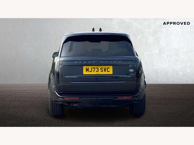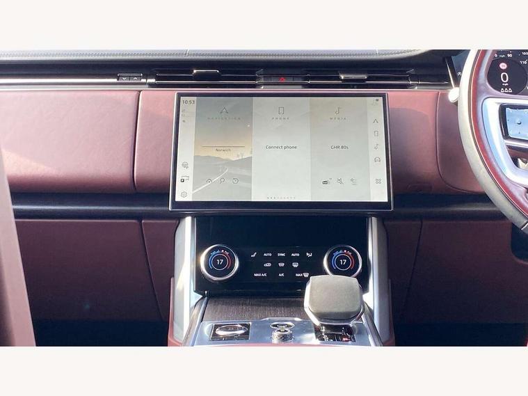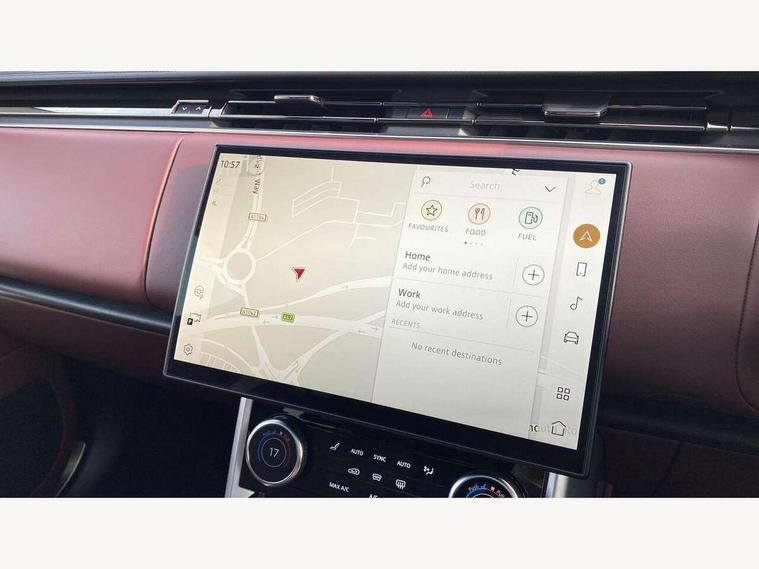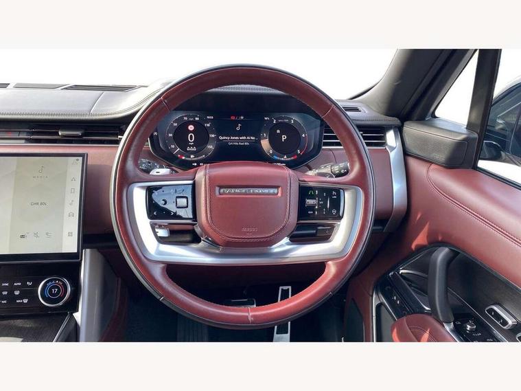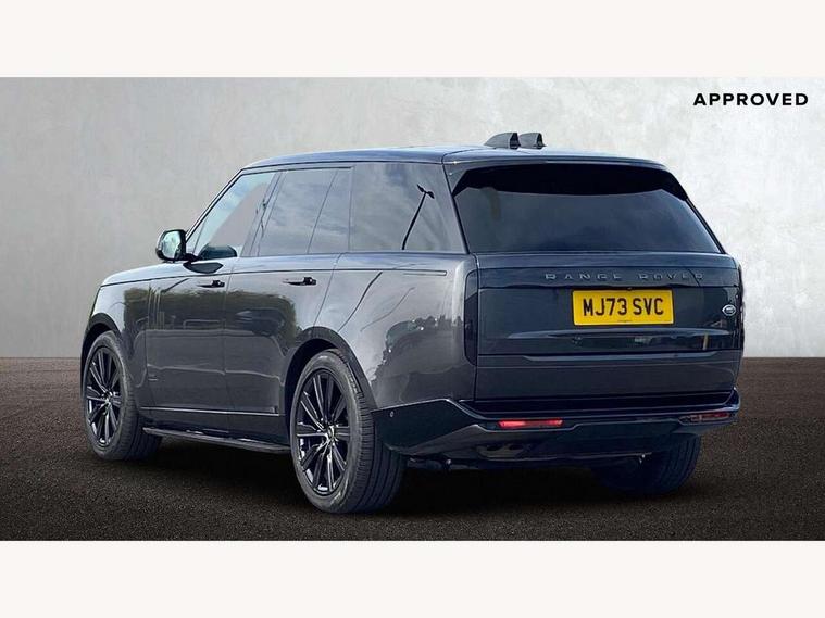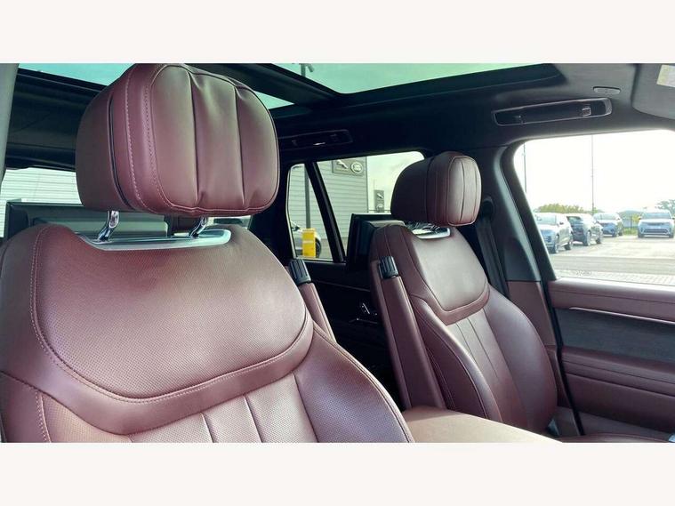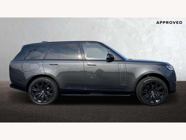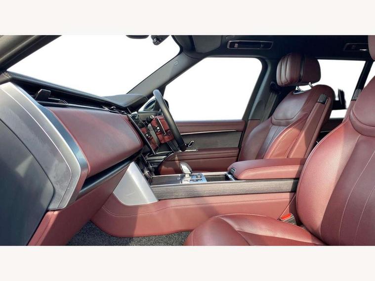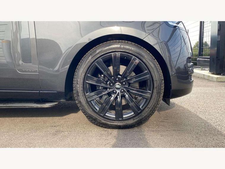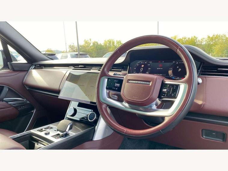 13.1" Touchscreen, 3D surround camera inc frwd traffic detection, vehicle clearance guidance, 3D view, clearsight ground view, manoevure light, 360 parking aid, wade sensing, All Terrain Info Centre, All wheel steering, Android Auto, Apple car play, Blind spot assist, Bluetooth connectivity streaming, Configurable programs, Driver condition response, Eco mode, Electric power assisted steering (EPAS), Emergency call service, Front and rear parking aid, Head up Display, Interactive driver display, Lane keep assist, Rear collision monitor, Rear traffic monitor, Remote, Traffic sign recognition with adaptive speed limiter, Wi-Fi Enabled with data plan, Wireless device charging with phone signal booster, 8 speed automatic transmission, Active damper technology system, Adaptive dynamics, All terrain progress control, All Wheel Drive (AWD), Automatic access height, Terrain Response 2 Auto, Twin speed transfer box, Digital Audio Broadcast radio-DAB, Pivi pro including smart settings, Connected navigation pro, nuance speech, USB socket, Acoustic laminated windscreen, Animated directional indicators, Automatic headlights, Automatic levelling headlights, Centre high mounted stop light, ClearSight interior rear view mirror, Electric windows with one touch open/close and anti trap, Engine cover, Flush deployable exterior door handles, Front and rear recovery eyes, Front fog lights, Headlamp power wash, Heated rear window, Heated washer jets, Illuminated metal treadplates with Autobiography script, Laminated front and rear side glass, LED tail lights, Power fold, auto-dimming, heated door mirrors with approach lights, Rain sensing windscreen wipers, Rear boot, Rear fog lights, Rear side wing doors, Side repeater indicators in mirror, Solar attenuating windscreen, Trailer stability assist, Winter wiper park position, 12V power sockets, 3 seat bench in 2nd row, Air quality sensor, Auto folding loadspace cover, Bright metal pedals, Cabin air purification pro, Cabin lighting, Customer configurable single point entry, Driver and passenger front seat armrests, Easy boot loading, Ebony Carpet, Electric rear side window sunblinds, Four zone climate control, Front and rear cupholders, Front and rear grab handles, Front head restraints, Gearshift paddles, Heated steering wheel, Hook in load space, Loadspace light, Luggage tie down in loadspace, Multifunction steering wheel, Rear centre armrest, Rear head restraints, Rear ISOFIX, Single front passenger seat, Soft close doors, SV bespoke carpet mats, Twin blade sunvisors with Illuminated vanity mirrors, Upper and lower glovebox, Versatile loadspace floor in tailgate, Online pack with data plan - Range Rover, 3x3 point rear seat belts, Anti-lock braking system (ABS), Black brake calipers, Brake hold function, Cornering brake control (CBC), Customer configurable autolock, DSC - Dynamic Stability Control, Electronic brake force distribution, Electronic parking brake, Electronic traction control, Emergency brake assist, Emergency braking, Front airbags with passenger seat occupant detector, Front side airbags, Hill descent control, Hill launch assist, Illuminated seat belt buckles, Low traction launch, Occupant protection assist, Power operated child locks, Roll stability control, Tyre pressure monitoring system (TPMS), Immobiliser, Intrusion sensor and alarm, Keyless entry, Locking wheel nuts, Remote central locking, Noble chrome controls,