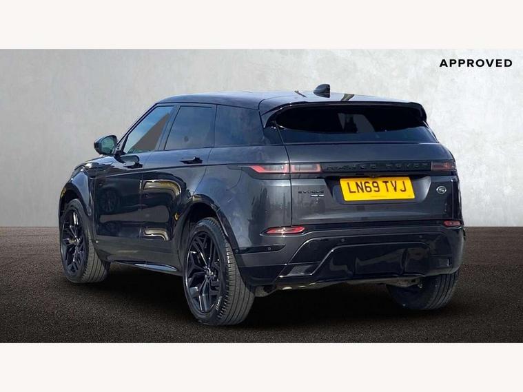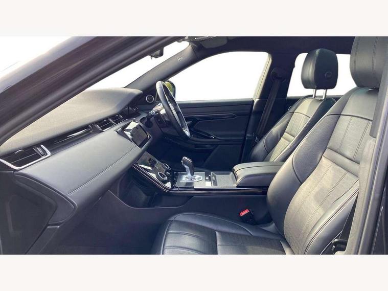 360 degree parking aid, Adaptive cruise control, Android Auto, Apple car play, Blind spot assist, Bluetooth connectivity, Brake pad wear indicator warning light, Clear exit monitor, Driver condition monitor, Duo touch pro, Electronic power assisted steering (EPAS), InControl remote, Interactive Driver display instrument cluster, Land Rover InControl apps, Lane keep assist, Navigation pro system, Park assist - Parallel, perpendicular and parking exit, Powered gesture tailgate/boot lid, Pro services and wifi hotspot, Push button starter, Rear traffic monitor, Smart settings, Traffic sign recognition with adaptive speed limiter, Voice control system, All terrain progress control, Efficient Driveline, Passive suspension, Terrain Response 2 Auto, Digital Audio Broadcast radio-DAB, Steering wheel mounted controls, Automatic headlight levelling, ClearSight interior rear view mirror, Electric windows with one touch open/close and anti trap, Evoque and R-Dynamic badge, Flush deployable exterior door handles, Heated rear window with timer, Heated washer jets, Heated windscreen, Power fold, auto-dimming, heated door mirrors with memory and approach lights, Rain sensing windscreen wipers, Rear fog lights, Shadow atlas bonnet and tailgate script, Tailgate spoiler, 40:20:40 split folding rear seats, Black gearshift paddles, Bright metal pedals, Isofix system on outer rear seats, Overhead lighting console, Overhead stowage for sunglasses, Passive front head restraints, Rear air vents, Rear centre headrest, Sunvisors with illuminated vanity mirrors, Twin front cupholders with cover, Twin sliding front centre armrest, Two zone climate control, Anti-lock braking system (ABS), Customer configurable autolock, DSC - Dynamic Stability Control, Electronic brake force distribution, Electronic parking brake, Electronic traction control, Front and rear seatbelt reminder, High speed emergency braking, Hill descent control, Hill launch assist, Low traction launch, Power operated child locks, Roll stability control, Six airbags - Driver and passenger airbags/driver knee airbag/front side airbag and curtain airbags, Torque vectoring brake, Tyre pressure monitoring system, Alarm, Immobiliser, Intrusion sensor, Keyless entry, Locking wheel nuts,