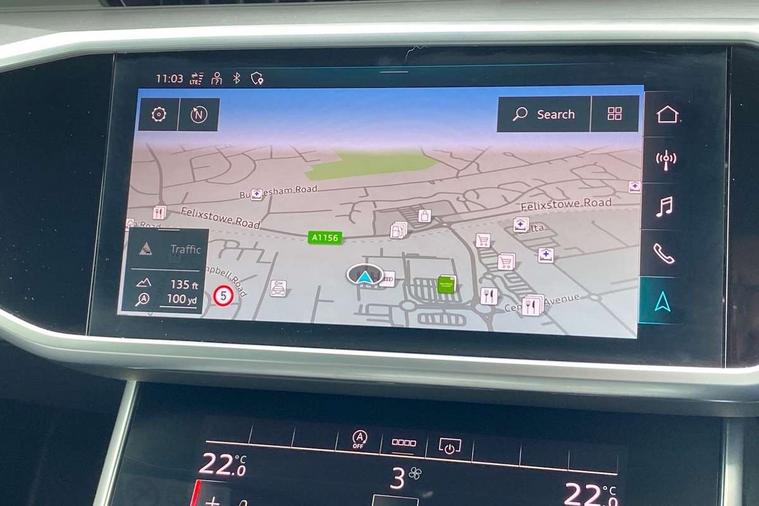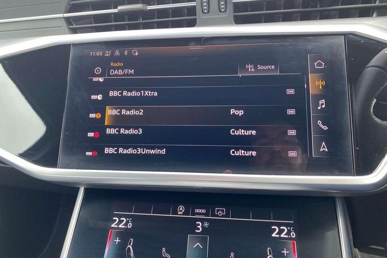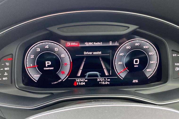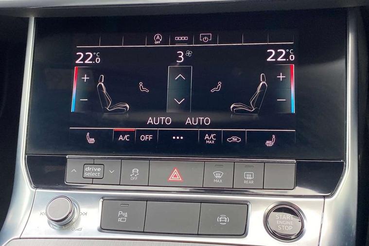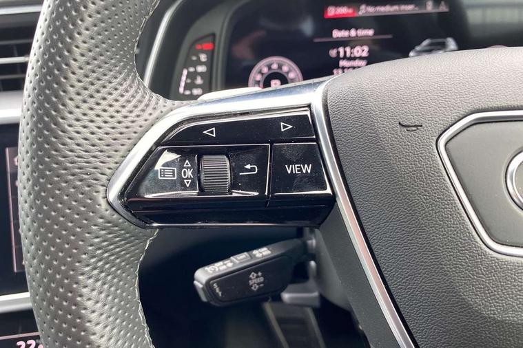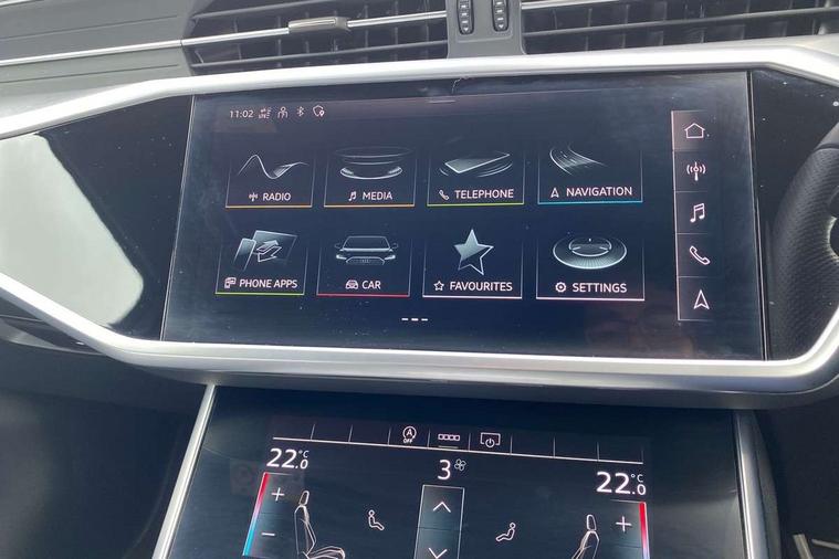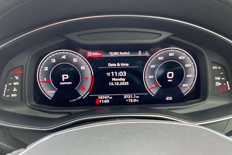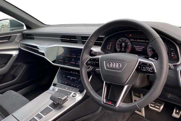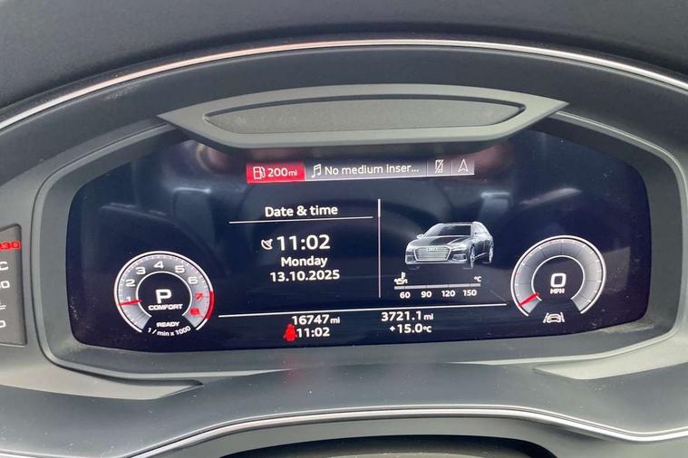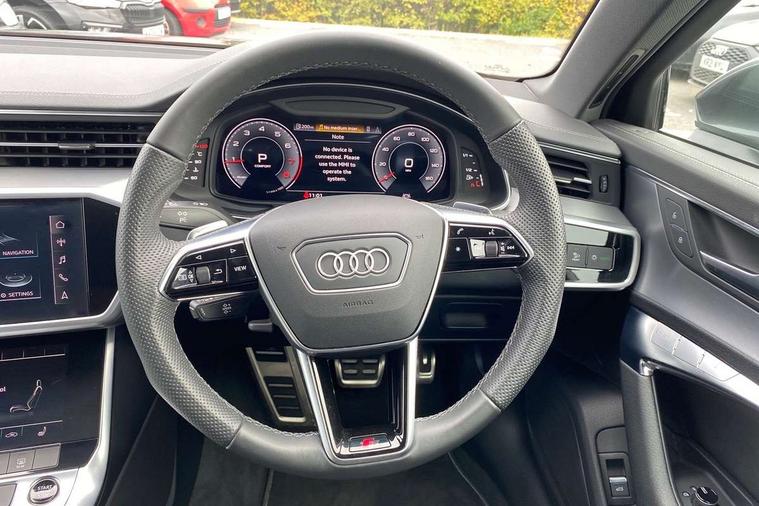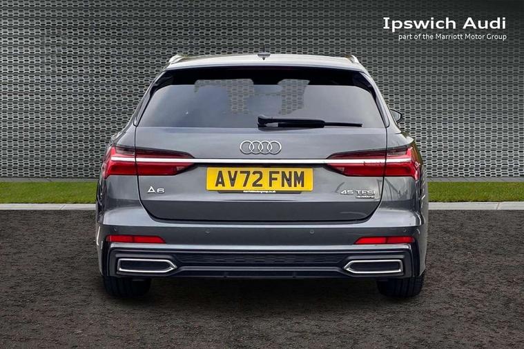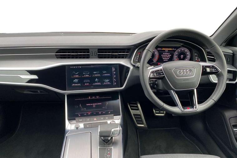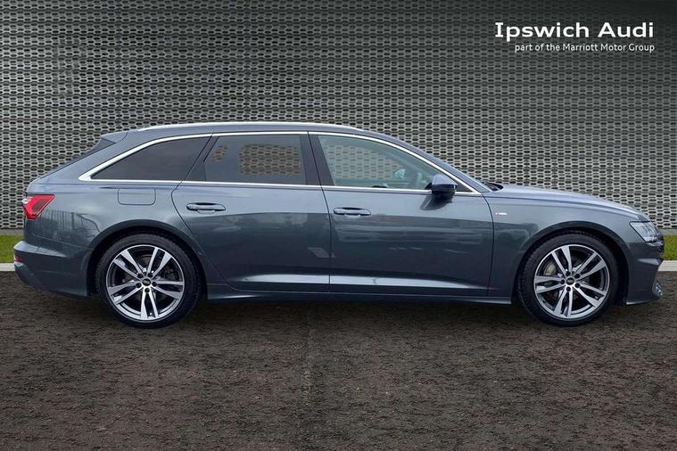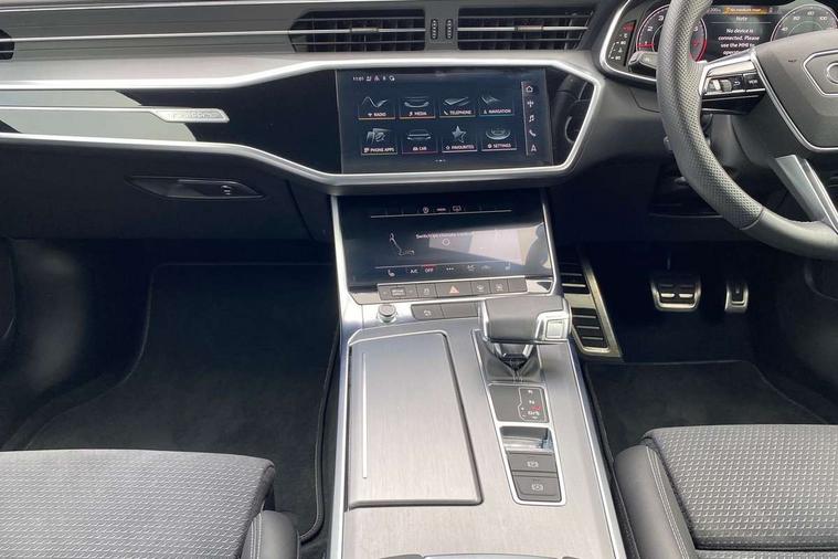 7" high resolution colour driver information display system, Audi connect safety and service (e-call), Audi connect with Amazon Alexa Integration, Audi drive select, Audi parking system plus - acoustic and visual park assist system for front and rear, Automatic start/stop system with coasting functionality, Bluetooth interface, Lane departure warning system, Power operated tailgate, Progressive steering, Rear view camera, Service interval indicator, Smartphone interface includes wireless Apple carplay/Android Auto, Voice control system, 12V Mild hybrid, Quattro on demand, Sports suspension, Audi front music interface, Audi sound system, Auxiliary input socket, DAB Digital radio, USB connection, All weather LED headlights, Aluminium roof rails, Body coloured door mirrors, Electric front/rear windows, Frameless auto dimming interior rear view mirror, Front intermittent wipers, Headlight washers, Heat insulating darkened glass in side and rear windows, Heat insulating glass in windshield, LED rear lights, LED signature front daytime running light, LED third brake light, Matt black side air intake grille with inlay in matt aluminium, Privacy glass, Radiator grille in titanium black matt, single frame in chrome and horizontal struts in matt aluminium silver, Rain and light sensors, Rear side wing doors, Rear wiper, S line air inlet design with inlay in matt aluminium, S Line badge on front fender, S Line front and rear bumpers, S line rear diffuser and grille in matt black with matt aluminium tailpipes, S Line roof edge spoiler, S Line side skirts, 2 zone deluxe electronic climate control, 4 way electric lumbar support for driver and front passenger, 40/20/40 split folding 3 rear seat bench in 3 parts with rear centre armrest, Black cloth headlining, Black steering wheel insert, Electrically adjustable front seats with driver memory, Front centre armrest, Front head restraints, Heated front seats, Height/reach adjust steering wheel, Illuminated door sill trims with S logo, Illuminated sun visors with vanity mirrors, ISOFIX child seat mounting and Top Tether with front passenger airbag deactivation, Leather gear knob, Luggage compartment system, Rear headrests, S line front and rear black carpet floor mats with contrast stitching, Single front passenger seat, Stainless steel pedals and foot rest, LED Interior Ambient Lighting Pack - A6, Non smoking pack - A6, Technology pack - A6, 3 point seatbelts on all seats, Airbags - Front side, front and rear including head, Audi pre-sense front, Black seatbelts, EBD - Electronic brakeforce distribution, Electromechanical parking brake, Electronic Stability Control (ESC) including ABS, ASR and EDL, Extended pedestrian protection measures, Manual child proof rear door locks, Seatbelt monitoring, Tyre pressure warning light, Warning triangle and first aid kit, Anti theft alarm with tow away protection, Anti-theft wheel bolts and wheel loosening detection, Immobiliser, Keyless Go, Remote central locking, Matt brushed aluminium dark inlays,