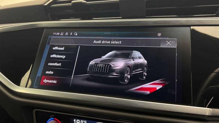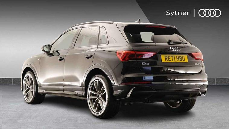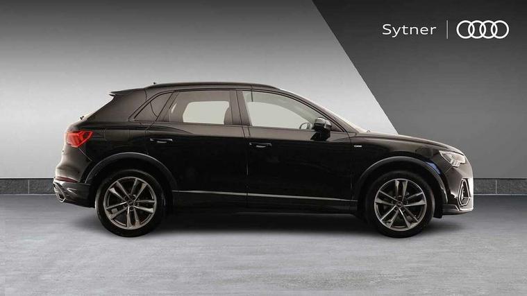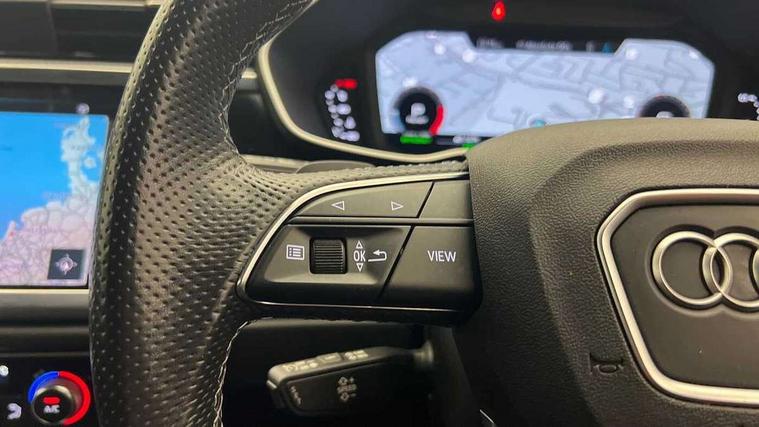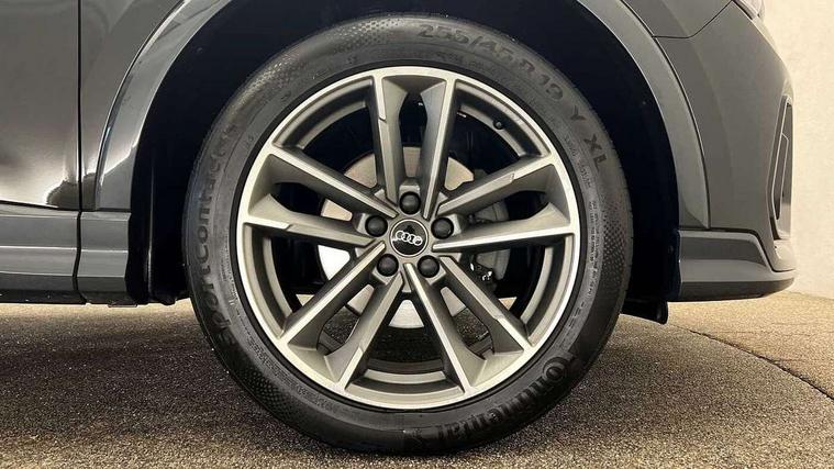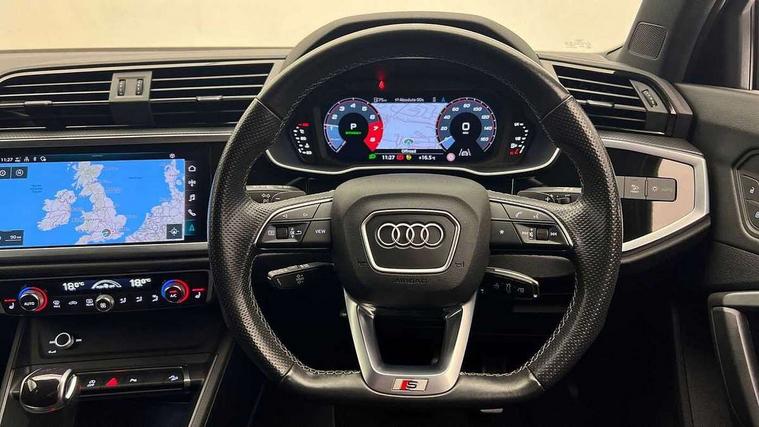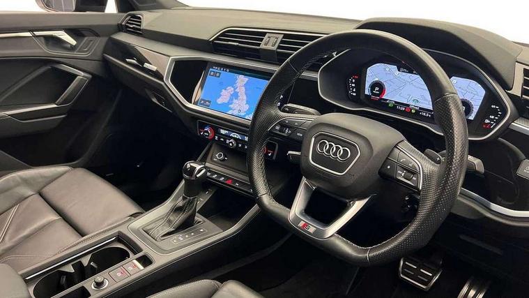 Amazon alexa Integration, Audi connect safety and service (e-call), Audi drive select, Audi lane departure warning, Audi smartphone interface includes wireless Apple carplay/Android Auto, Audi Virtual Cockpit - 10.25" display, Bluetooth interface, Camera based traffic sign recognition, MMI Navigation Plus with high resolution 10.1 inch touchscreen colour display, Power operated tailgate, Progressive steering, Service interval indicator, Start stop system with recuperation, Voice control system with natural language interaction, 48V Mild hybrid technology, Sports suspension, 2 USB-C ports with charge and data functions, 6 passive loudspeakers, DAB digital radio module, Acoustic windscreen, Auto dimming frameless rear view mirror, Black roof rails, Electrically folding, adjustable and heated door mirrors with integrated LED side indicators and kerb view function for passenger side, Front and rear electric windows, Front fog lights, Grille vertical bars in aluminium silver/Matt, High gloss black finish B and C pillars, LED headlights with LED daytime running lights and dynamic rear indicator, LED rear lights, Privacy glass dark tinted rear and rear-side windows (from B-pillar backwards), Rain and light sensors, Rear diffuser strip in matt titanium black, Rear side wing doors, Rear wiper, S line bumpers in contrasting Manhattan grey, Third brake light, Tinted rear windows, Variable front intermittent wipers, 12V socket in rear centre console, 3 seat bench in 2nd row, 40:20:40 folding with manual adjustment for 60:40 forwards/backwards position and backrest angle, Adjustable rear seat bench/backrest with centre armrest and cupholder, Black cloth headlining, Dual zone electronic climate control, Front and rear black floor mats with contrast stitching in rock grey, Front and rear headrests, Front and rear roof module including reading lights, Front centre armrest, Glove compartment lighting, Height and reach adjustable steering wheel, Illuminated door sill trims with S logo, ISOFIX child seat mounting for front passenger with airbag deactivation and outer rear seat including top tether attachment point for outer rear seats, Luggage compartment light, Manual front seats with height adjustment, Perforated leather gearknob, Single front passenger seat, Stainless steel luggage compartment sill finisher, Stainless steel pedals, Tool kit, Black styling pack - Q3, Non smoking pack - Q3, 3x3 point rear seatbelts, 6 airbags - Driver, front passenger, curtain and side windows, Electrically operated child locks on rear doors, Electromechanical parking brake, Electronic stabilisation control including ABS, ASR and EDL, Front seatbelt reminder, Hill descent control, Hill hold assist, Pre sense basic, Seatbelt monitoring, Tyre pressure warning, Warning triangle and first aid kit, Anti theft alarm, Anti theft wheel bolts, Audi pre-sense front with pedestrain and cyclist recognition, Immobiliser, Remote central locking, Leatherette door armrest, MMI touch colour display in glass look, black with surround in aluminium look, Piano black inlay, Tyre repair kit,