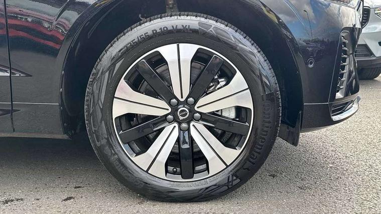 12.3" Progressive Driver Display, 360 degree surround view parking camera with side proximity sensors, 9" centre console touch screen, Adjustable steering wheel force, Apple carplay (wired), Bluetooth handsfree system, Drive mode settings, Driver alert control with lane keeping aid, Driver assistance (pilot assist and adaptive cruise control), Emergency services call system, Front and rear park assist, Google Automotive Services, Oncoming Lane Mitigation, PAS, Service interval indicator, Speed limiter, Speed sensitive steering, Trip computer, Volvo on call with App, Wireless/Inductive Mobile Phone Charging, 3.7 kW monophase on board charger, 7m 10amp charge cable with 3 pin plug and 6m 3 phase 16amp type 2/mode 3 charge cable, 8 speed automatic transmission with start/stop + manual change functions, Dynamic chassis, Electric rear axle drive, Recharging port located in nearside front wing, DAB Digital radio, Low speed exterior sound speaker, Premium Sound by Harman Kardon, dirac unison, dolby pro logic II surround sound, 13 speakers/600W output and fresh air subwoofer, Steering wheel remote infotainment controls, Adaptive brake lights with high level LED brake lights, Auto dimming interior + exterior mirrors, Automatic headlight levelling system, Automatic LED Headlights + Active high beam incorporating daytime running lights, Electric adjustable/heated/auto power folding door mirrors, Electric front+rear windows, Heated front windscreen, High gloss black door mirrors and window surround, High gloss black front and rear bumper decoratives, High gloss black mesh front grille with high gloss black surround, Home safe and approach lighting, Integrated roof rails in high gloss black, Power glass tilt and slide panoramic sunroof with sun curtain, Puddle lights, Rain sensor with automatic windscreen wiper activation, Rear side wing doors, Rear wiper, Roof antenna, Roof spoiler, Tinted windscreen, Visible VIN plate, 12V socket in front tunnel console and luggage compartment, 2 zone electronic climate control with Clean zone air quality system and pollen filter, 3 seat bench in 2nd row, A-pillar parking ticket holder, Air purifier particulate matter (PM) 2.5 filter, B Pillar ventilation, Bright metal luggage threshold, Centre console cupholders and storage, Charcoal floor mats, Front and rear courtesy lights, Front and rear door pocket illumination, Front cupholder illumination, Front footwell illumination, Front reading lights, Front seat cushion extensions, Glovebox compartment with illumination, Head restraints for all seats, Heated front seats, Heated steering wheel, Height/reach adjustable steering column, Illuminated luggage compartment, Illuminated vanity mirrors + ticket holder, ISOFIX attachment on outer rear seats, Load cover, Load protection net, Multi directional lumbar support, Power driver seat with memory + exterior mirrors memory, Power height adjustable passenger seat, Rear armrest with cupholder, Rear footwell and front and rear side step illumination, Rear seat concealed storage, Recharge aluminium tread plates, Single front passenger seat, Tailgate illumination and ambient door lighting, Underfloor stowage compartment, Versatile split folding rear seat - 60/40, 5 three point seatbelts, City safety with steering support with Pedestrian + cyclist + front collision warning with full auto brake and rear auto brake, Drivers knee airbag, Dual stage driver/passenger airbags, Electronic parking brake with auto hold, First aid kit, Front seats SIPS airbags, Hill descent control - Off-road drive mode, Hill start assist, IC (Inflatable Curtains) - Full Length, Passenger airbag cut-off device, Power child locks on rear doors, Road sign information display, Run off Road Mitigation, Run off Road Protection, Seatbelt reminder and pretensioners, SIPS (Side Impact Protection System), Slippery road and hazard light alert, Stability and Traction Control with Spin control, Engine Drag Control and Corner Traction Control, Tyre pressure monitoring system, Vehicle deceleration control with Anti-lock Brake System, Electronic Brake Distribution and Emergency Brake Assist, Warning triangle, WHIPS whiplash protection system - front, Anti-theft alarm including immobiliser/volume sensor + level sensor, Care key with user defined top speed, Key integrated remote control central locking + fuel flap with deadlocking system and auto open/close power windows, Keyless Drive (includes Keyless Entry and Keyless Start) with Handsfree Tailgate Opening/Closing, Locking wheel nuts, Private locking for tailgate, Tyre sealant kit + 12v compressor,