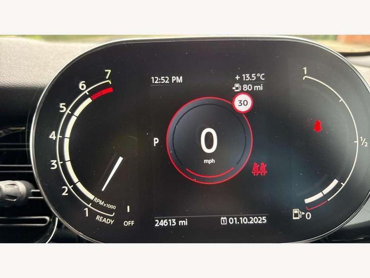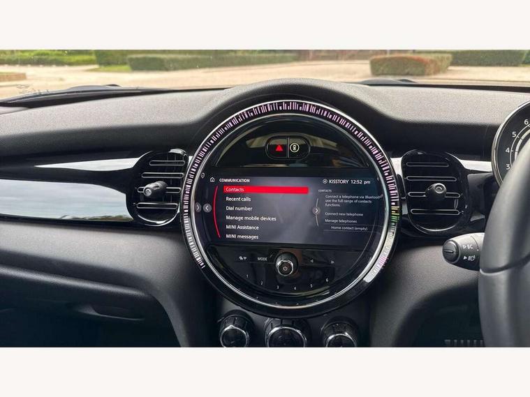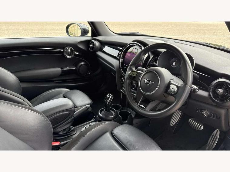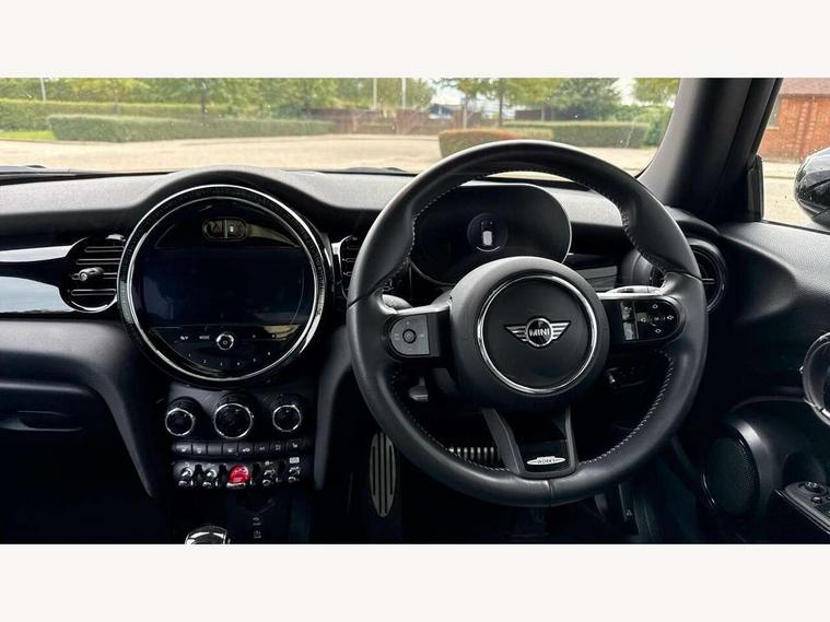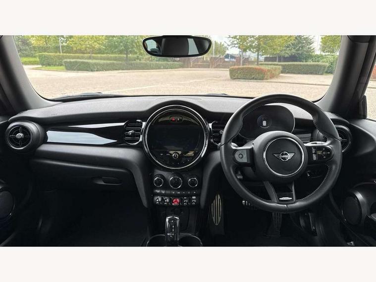 Apple CarPlay, Automatic start/stop function with brake energy recuperation, Compatible mobile phone bluetooth with audio streaming, Cruise control with brake assist, Electro-mechanical speed dependant steering assistance, Flexible car sharing preparation, Instrument cluster, MINI Driving Modes - centre toggle switch to control driving setting (sport, mid and green), Mini E-call, MINI TeleServices, On board computer, Rear park distance control, Service interval indicator, Double Vanos system, Fully variable valve control, High precision injection, Intelligent adaptive suspension, Performance Control, Steptronic transmission with double clutch, 8.8" touchscreen with LED ring, FM tuner and DAB digital radio, 3rd brake light, Automatic headlight activation switch, Body colour fuel filler cap, Chrome border high gloss black slats radiator grille, Dynamic brake lights, Electric front windows, Exhaust tailpipe on left with chrome finisher, Heated rear window, Heated windscreen washer jets, JCW Aerodynamic kit - Front and rear bumpers with sporty JCW styling and part-painted side sills with MINI John Cooper Works door sill finishers, John Cooper Works rear spoiler, LED headlight with closed ring and daytime driving lights, Metal door sill strips with MINI imprint, Model logo Cooper on right of tailgate, Rain sensor window wipers, Rear fog lights, Rear LED lights with union jack design, Rear window wiper, Side scuttle panel with integrated indicator, Sun/heat protection glass, White indicator lenses, 12V Accessory socket in centre console, 2 seat bench in 2nd row, 4 lashing eyes in luggage compartment, 60/40 split folding rear seat, Anthracite headliner including grab handles and clothes hooks, Carbon black colour line - Knee roll and door armrest, Chrome interior highlights, Cupholders, Front and rear isofix with front passenger airbag deactivation, Front floor mats in velour, Glove compartment, Height and length steering column adjustment, Interior lighting with 12 different colours across the dashboard, underneath door bezel with illuminated laser-engraved design on central display, JCW Sport seats with integrated headrests, adjustable thigh support and John Cooper Works logo, Leatherette gearshift lever and handbrake gaiters, LED reading lights, vanity mirror lights, front foot well light and spotlight on front seats, Manual air conditioning, Mechanical seat adjustment - forward/back & backrest for front seats and driver seat height adjust, Multifunction steering wheel, Passenger seat height adjuster, Single front passenger seat, Storage compartments in doors, Sunvisors with vanity mirrors, Tool kit, Walknappa leather steering wheel with grey seam and John Cooper Works badge on Piano Black lower steering wheel spoke, Navigation pack without Apple Carplay - Mini Hatchback, Piano black exterior pack - Mini Hatchback Cooper, 3 point seatbelts on all four seats, 6 Airbags - front, side, head and seat belt tensioners, Anti-lock braking system (ABS), DSC - Dynamic Stability Control, Front and rear disc brakes, Single tone fanfare horn, Tyre pressure monitoring system, Alarm system with tilt sensor, monitoring doors, bonnet interior and tailgate, Electronic vehicle immobiliser, Start/stop toggle with keyless go, Piano black interior trim,