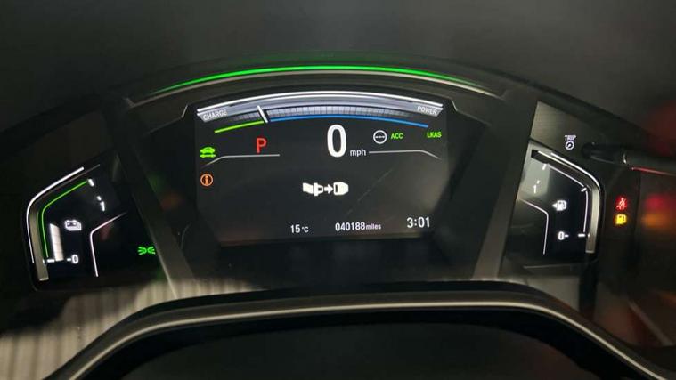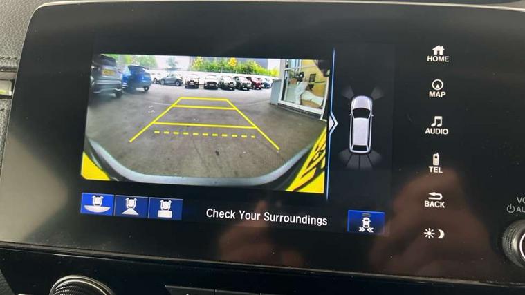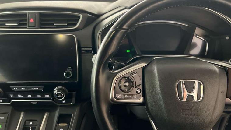 Adaptive cruise control, Agile handling assist, BLIS (Blind Spot Information System) with dual power heated blind spot mirrors, Bluetooth hands free telephone connection, E-call, Economy mode, Electric power steering, Emergency stop signalling system, Forward collision warning, Front parking sensors, Honda CONNECT with GARMIN Navigation + 7" touchscreen, DAB radio, Apple CarPlay, Android Auto, Aha app integration and internet browsing, Intelligent multi info display, Lane departure warning system, Lane keep assist system, Low speed following, Rear parking sensors, Rear view camera, Road departure mitigation, Speed limiter, Traffic sign recognition, Vehicle stability assist, 2 USB sockets in rear, 2x USB sockets in front, 9 speakers, DAB Digital radio, Dashboard centre speaker, Front tweeters, Steering wheel mounted controls, Subwoofer, Aspheric door mirrors, Auto dimming rear view mirror, Automatic headlights with dusk sensor, Body colour bumpers, Body colour door handles, Cornering light, Door mirrors tilt when reversing, Electric front windows/one touch facility, Electric rear windows + one touch facility, Electrically adjustable and heated door mirrors, Electrically retractable door mirrors, Front windscreen de-icer, High beam assist, LED daytime running lights, LED front fog lights, LED Headlights, LED rear lights, Rain sensor, Rear privacy glass, Rear side wing doors, Rear wiper, Roof rails, Shark fin roof aerial, Third brake light, Welcome home function, 3 seat bench in 2nd row, 60/40 split folding rear seat, Accessory sockets, Ambient interior lighting, Cargo hooks, Courtesy lights, Driver's electric adjustable lumbar support, Driver/passenger front seatback pockets, Driver/passenger sunvisors with illuminated vanity mirrors, Dual zone automatic climate control, Electric lumbar adjustment on passenger's seat, Front centre armrest, Front map lights, Front passenger seat height adjust, Heated front seats, Height adjustable driver's seat, Hybrid emblem, Illuminated glovebox, Instrument panel with garnish wood film, Isofix child seat preparation, Leather steering wheel, Leather upholstery, Paddle shift controls, Rear air vents, Rear centre armrest, Rear headrests, Rear reading lights, Rear seat conversation mirror, Silver interior door handles, Single front passenger seat, Sunglasses holder with mirror, Tilt/telescopic adjustable steering wheel, Tonneau cover, Trunk light, 5 x 3 point seatbelts, ABS/EBD, Anti-whiplash front headrests, Brake assist function, Collision mitigation braking system, Deflation detection system, Driver airbag, Electronic parking brake with auto hold, Front and rear curtain airbags, Front and rear seat belts with emergency locking retractor (ELR), Front side airbags, Hill start assist, Manual child lock in rear doors, Passenger airbag deactivate switch, Honda super locks, Immobiliser, Security alarm, Smart entry + Smart start, Ultrasonic security sensor, Tyre repair kit,