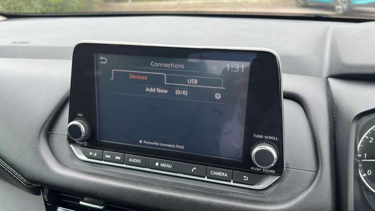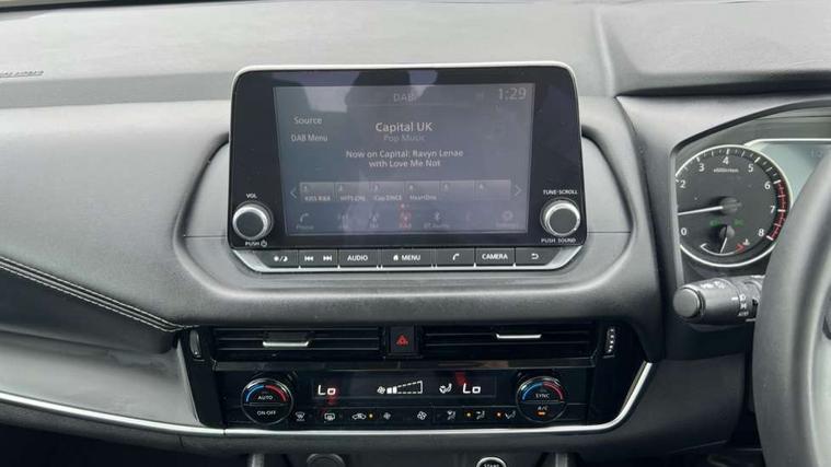 7" High definition full colour TFT screen combimeter, Android auto/Apple CarPlay (Wired), Blind spot warning, Drive modes (sport, normal, eco), Electric speed sensitive power steering, Emergency and breakdown call, Idle stop/start system, Intelligent Cruise control (ICC), Intelligent driver alert system, Intelligent forward collision warning, Intelligent lane intervention, Lane departure prevention, Lane departure warning system, Maximum speed limiter, Nissan connect 8" touchscreen infotainment system, Push button starter, Rear cross traffic alert, Rear parking sensors, Rear view camera, Traffic sign recognition with legal speed adjustment, Trip computer, 6 speakers, AM/FM audio system with DAB, Bluetooth audio streaming, Front USB connections (Type-A and Type-C), Auto dimming rear view mirror, Auto rear wiper when reversing, Automatic hazard signal with emergency stop signal, Body colour mirror caps, Body coloured door handles, Bodyside mouldings, Chrome side window finisher, Door handle with button, Electric auto folding door mirrors, Electrically adjustable and heated door mirrors with LED turn indicator, Follow me home headlights, High beam assist, Intelligent auto headlights, LED 3rd brake light, LED daytime running lights, LED Headlights, LED rear lights, One touch front and rear electric windows with remote opening and closing, Partially body coloured bumpers, Rear reversing light (bulb lighting), Rear roof spoiler, Rear side wing doors, Shark fin antenna, Splash free rain sensing wipers, Three blink turn signal, 12v power socket in dashboard and luggage, 2x Rear coat hooks, 3 bench rear seats in 2nd row, 3 rear headrests, 4 folding assist grip, 6-way manually adjustable driver's seat, 60/40 split folding rear seat bench, Centre console storage tray, Chrome interior door handles, Cloth monoform upholstery, Driver and front passenger sunvisors with illuminated vanity mirrors, Dual zone automatic climate control with pollen filter, Electrically adjustable lumbar support for driver, Front and rear door storage, Front centre console and armrest, Front cupholders x 2, Front door with bottle holders, Glovebox with light, Hard trunk cover, Height adjustable driver's seat, Height adjustable front headrests, Height adjustable passenger seat, Luggage space lighting, Manually adjustable passenger (slide recline + lifter), Multifunction steering wheel, Passenger seat back pocket, Rear armrest with 2 cupholders, Rear door bottle holders, Single front passenger seat, Steering wheel gearshift paddles, Steering wheel switches, Sunglasses holder, Tilt/telescopic adjustable steering wheel, Two rear isofix child seat anchorage points with top tether, 3x3 point rear seatbelt pretensioners + load limiters, ABS with EBD and brake assist, Active brake limited slip, Auto hold function, Child locks on rear doors, Curtain and front side, far side airbags, Driver and passenger airbags, Driver, passenger and 2nd row rear seat belt reminder, Electronic parking brake, Front seatbelt pretensioners + load limiters, Height adjustable front seatbelts, Hill start assist, Intelligent blind spot intervention, Intelligent front emergency braking with pedestrian, cyclist recognition and junction assist, Intelligent rear automatic braking, Tyre pressure monitoring system, Vehicle dynamic control, Capless fuel filler, Engine immobiliser, Intelligent Key, Remote central door locking with deadlocking, Thatcham Cat.1 alarm, Interior instrumental panel A finisher, 17" Alloy wheels, Tyre puncture repair kit,