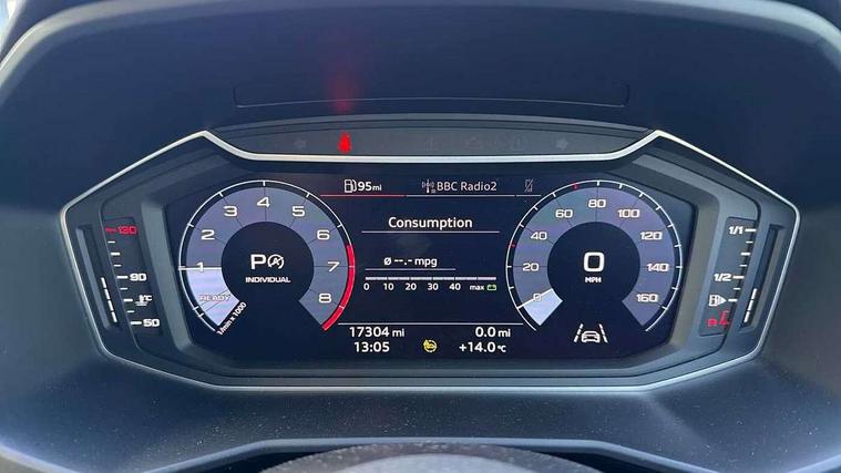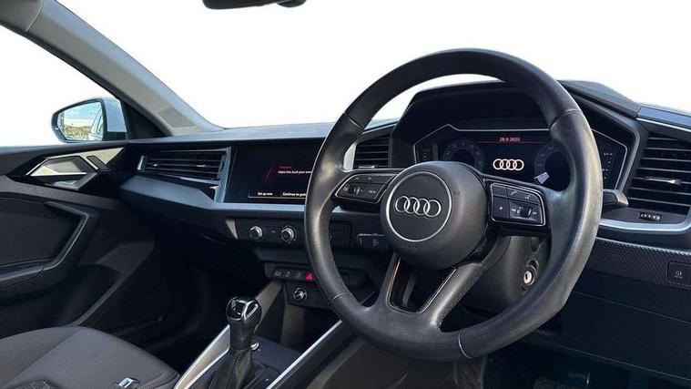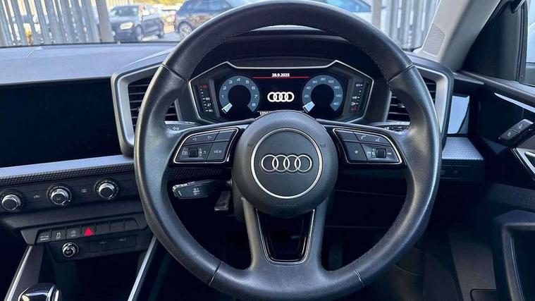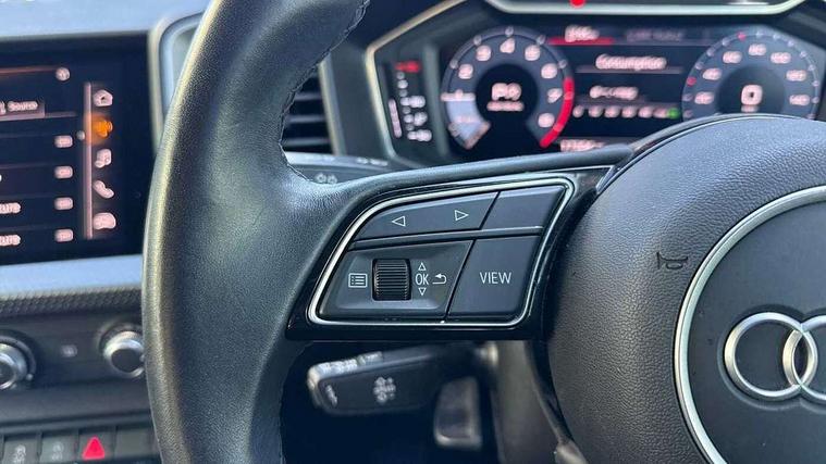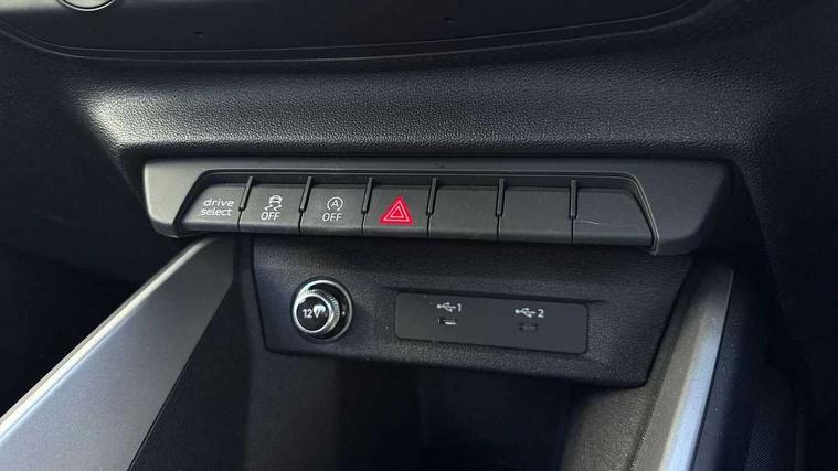 10.25" Digital instrument cluster display classis style instrument dials + speed, odometer, time, outside temperature, telephone menu + fuel level warning, Audi connect safety emergency and service including E-call, Audi drive select - power steering assistance + engine + gear shift 3 preset modes (auto, dynamic, efficiency and an Individual mode), Audi smartphone interface with connect compatible smartphone via USB directly MMI display + Nav, music, third party apps controlled via MMI controller, Automatic start/stop system, Bluetooth interface, Cruise control, Driver's information system, Electromechanical power steering, Lane departure warning system, Service interval indicator, Speed limiter, Voice control system, Washer fluid level indicator, Dynamic suspension, 1 x SDXC card reader, 2 x USB type C connection points, DAB Digital radio, MMI radio plus with 8.8" colour MMI display screen and MMI touch, Auto dimming rear view mirror, Body coloured bumpers, Body coloured door mirrors, Electric front and rear windows, Electrically adjustable, heated, folding door mirrors with integrated LED side indicator, Front side air inlets in grained matt black and C frame in titanium black, Heat insulating glass windscreen and side windows, Heated rear windscreen, LED headlights with LED rear lights + dynamic rear indicators + headlight adjustment and high beam, turning light + LED daytime running lights, Radiator grille and rear diffuser in matt titanium black, Radiator protective grille frame in matt aluminium silver, Rain and light sensors, Rear fog lights, Rear wiper, Scandium grey tailpipe trim, Side front spoiler lips in grained matt black, 12V socket in centre console with two cup holders, 3 rear seats with headrests, 40:60 Split folding rear seat or folded fully, Door sill trims with aluminium inlay, Driver and passenger seat with manual height adjust with forward and backwards adjustment, Front head restraints, Front/rear floor mats, Height and reach adjustable steering wheel, ISOFIX child seat mounting for front passenger and outer rear seats including top tether attachment point of outer rear seats, Leather gear knob with aluminium trim, Leatherette handbrake grip, Luggage compartment light with front and rear reading lights, Manually adjustable lumbar support in front seats, Novum cloth upholstery with front sport seats, Titanium grey cloth headlining, Luggage compartment pack - A1, 3x3 point rear seatbelts, Audi pre-sense front with pedestrain and cyclist recognition, Brake assist function, Driver and front passenger airbag with front side and head airbags, Electronic Stability Control including ABS, EBD, ASR and EDL, Front passenger airbag deactivation switch, Hill hold assist, Seatbelt height adjustment for front seats, Seatbelt monitoring, Tyre pressure warning light, Warning triangle and first aid kit, Anti theft alarm, Anti theft wheel bolts and loose wheel warning, Immobiliser, Remote central locking with 2 foldaway keys, Aluminium trim for control switches, air vents and digital instrument cluster, Silver grey accent areas including air vents, door handle recesses and centre console in diamond paint finish, Slate grey inlays polygon structure in fine paint finish,
