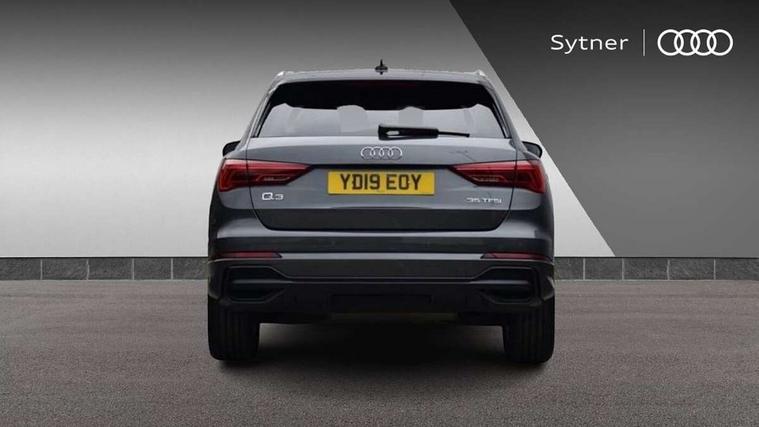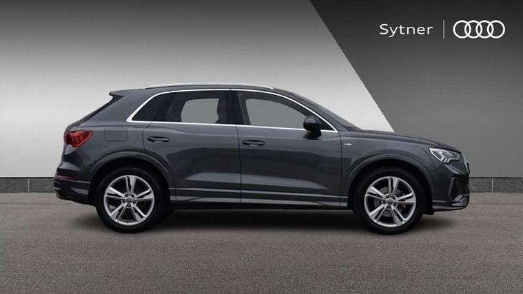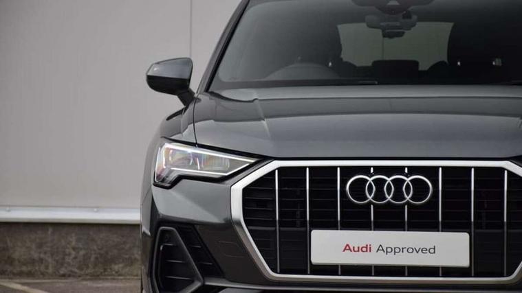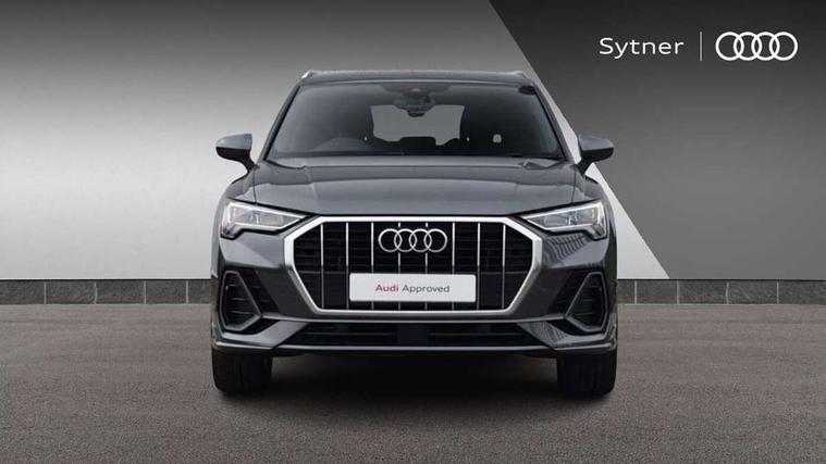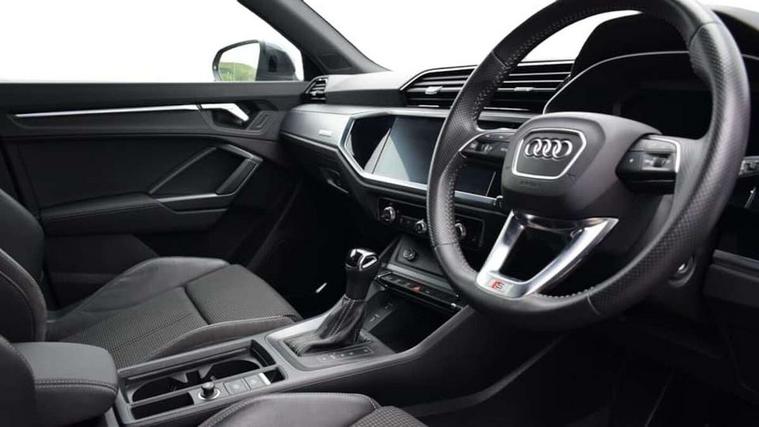 Audi connect safety and service (e-call), Audi drive select, Audi lane departure warning, Audi side assist, Audi smartphone interface, Audi Virtual Cockpit - 10.25" display, Bluetooth interface, MMI navigation plus with MMI touch, Power opening/closing tailgate, Progressive steering, Service interval indicator, Stop/start system, Voice control system, DAB digital radio module, Acoustic windscreen, Aluminium roof rails, Aluminium window trim, Auto dimming rear view mirror, Body colour door mirrors, Body coloured bumpers, Diffuser in matt Platinum grey, Electrically adjustable and heated door mirrors with integrated LED side indicators, Front and rear electric windows, Front fog lights, Front side air inlets in matt platinum grey, Front spoiler blade in matt platinum grey, Grille vertical bars in aluminium silver/Matt, High gloss black finish B and C pillars, Privacy glass, Rain and light sensors, Rear diffuser strip in selenite silver, S Line badge on wings, S Line front and rear bumpers, Side skirt insert in matt Platinium grey, Titanium black radiator grille, 12V socket in rear centre console, 40:20:40 split folding rear bench seat, Adjustable rear seat bench/backrest with centre armrest and cupholder, Aluminium door sill trims, Black cloth headlining, Dual zone climate control, Front and rear black floor mats with contrast stitching in rock grey, Front and rear headrests, Front centre armrest with storage compartment and angle adjustment, Illuminated door sill trims with S logo, ISOFIX child seat mounting and Top Tether with front passenger airbag deactivation, Perforated leather gearknob, Stainless steel luggage compartment sill finisher, Stainless steel pedals, Non smoking pack - Q3, 3x3 point rear seatbelts, 6 airbags - Driver, front passenger, curtain and side windows, Audi pre-sense front with pedestrain and cyclist recognition, Electronic stabilisation control including ABS, ASR and EDL, Hill hold assist, Pre sense basic, Seatbelt monitoring, Tyre pressure warning, Warning triangle and first aid kit, Anti theft alarm, Anti theft wheel bolts, Remote central locking, Dark matt brushed aluminium inlay, MMI touch colour display in gloss black with aluminium surround,