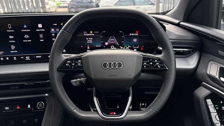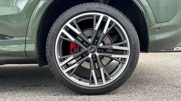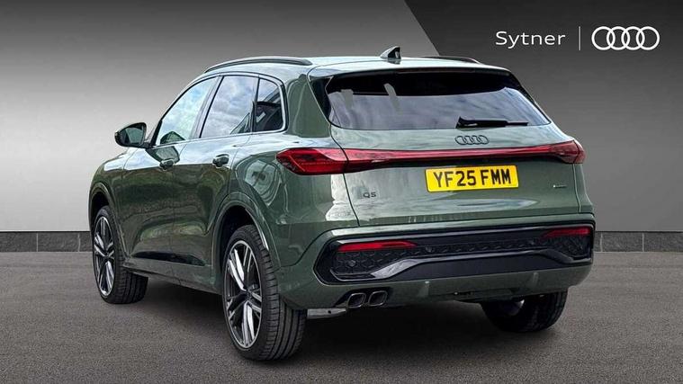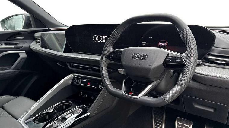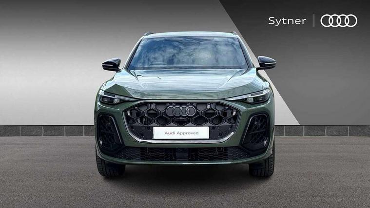 Adaptive cruise control, Advanced driver attention alert, Audi application store, Audi connect emergency call and service, Audi drive select, Audi smartphone interface, Audi virtual cockpit plus with 11.9" OLED colour display, Camera based traffic sign recognition, Fatigue monitor, Front cross traffic intersection assist, Lane change assistant with exit warning system, rear cross traffic alert and rear turn assist, Lane departure warning with emergency assist, MMI 10.9" front passenger touch display, MMI navigation plus with high resolution 14.5" OLED touchscreen colour display, Park assist plus, Parking system plus with 360 display, PAS, Reversing camera, Swerve assist and turn assist, Top view camera, Traffic sign based speed limiter, 2 USB-C ports in both the front and rear, Audi sound system impressive sound with 10 loudspeakers including centre speaker and subwoofer, 6-channel amplifier with a total output of 180 watts, DAB Digital radio, Smartphone compartment with wireless charging, Active digital light signatures - Six additional combinations of active daytime running light signature, Auto dimming rear view mirror, Black roof rails, Coming/leaving home lighting function, Electrically adjustable heated and folding + automatically dimming exterior mirrors, Exhaust tailpipes in dark chrome, Front and rear electric windows, Front door sill trims with aluminium inlays, illuminated with 'S' logo, Full body paint finish, Headlight cleaning system, Heated rear window, High beam assist, High gloss window surrounds, Inlay and front air inlets in matt anthracite chrome, LED rear lights pro incl. dynamic rear indicators and illuminated light strip with animated coming and leaving home function, Logo projection light in exterior mirrors, Matrix LED headlights, Memory function for door mirrors, Privacy glass, Projection light for rear window, Radiator grille in phantom black, Rear and side windows with heat insulating glass, Rear honeycombe grille in matt black with inlay in matt anthracite chrome, Rear side wing doors, Rear wash/wipe, S Line badge on the front wings, Towbar preparation, Windscreen with acoustic glazing, 3 rear head restraints, 3 seat bench in 2nd row, 3 spoke leather steering wheel with multi-function buttons with touch control, flattened on top and bottom, with S badging and contrast stitching, 4 way electric lumbar support for driver and front passenger, 40:20:40 split folding rear seat bench with centre armrest and cup holders, Comfort centre armrest, Deluxe 3 zone electronic climate control, Dinamica microfiber/leather upholstery, Electrically adjustable front seats with memory function for driver's side, Front and rear floor mats, Front sport seats with integrated head reastrains, Headlining in black cloth, Heated front seats, i-Size child seat mounting on the front passenger side and outer rear seats, i-Size and top tether on the outer rear seats, Interior trim in aluminium look, Luggage compartment lid, electrically opening and closing, Manual steering column adjustment, Single front passenger seat, Softwrap in Dinamica, Stainless steel pedals and footrest, Steering wheel grips in perforated leather and shift paddles, Ambient lighting package plus - Q5, Black styling package plus - Q5, Storage and luggage compartment pack - Q5, 3x3 point rear seatbelts, ABS, Acoustic vehicle alerting system, Convenience key with safelock, Driver and front passenger airbag with passenger airbag deactivation, Electric child safety locks, First aid kit with warning triangle and high visibility vests, Front emergency brake assist, Front side airbags with head airbag system and front interaction airbag, Hill hold assist, Occupant detection in rear seat area, Proactive passenger protection system for front, sides and rear, Red brake calipers, Side airbags in front and rear with head airbag system and front interaction airbag, Tyre pressure loss indicator, Anti theft alarm, Anti-theft wheel bolts, Remote control key with SAFELOCK and keyless go, Accent surfaces and control buttons in gloss black, Black dashboard with contrast stitching, Steel grey seat stitching, Upper and lower interior elements in dinamica microfiber, Tyre repair kit,
