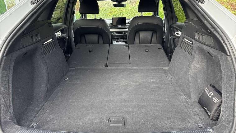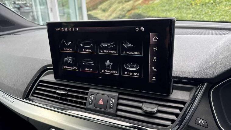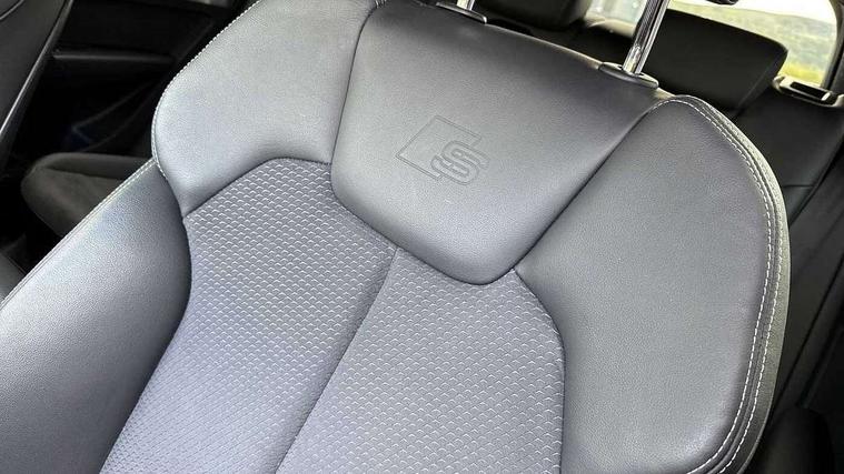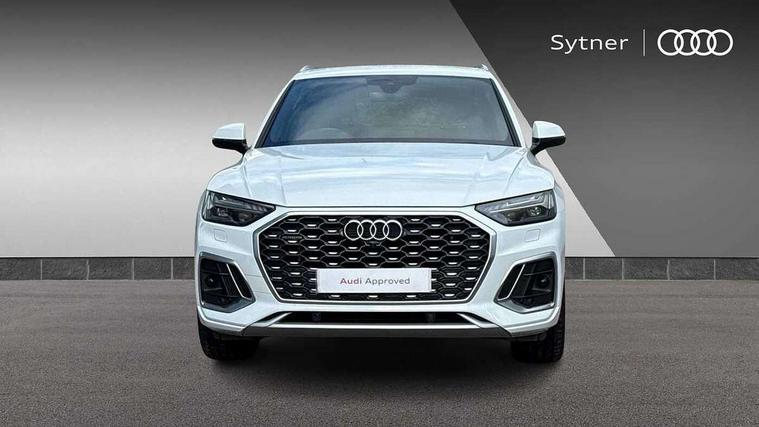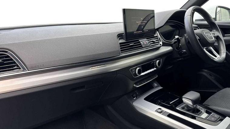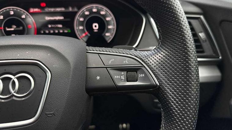 Audi connect safety and service (e-call), Audi connect with Amazon Alexa Integration, Audi drive select, Audi virtual cockpit plus with 12.3" screen and three different layout designs, Audi wireless smartphone interface, Automatic start-stop system with coasting functionality and efficiency programme, Bluetooth interface, Electro - mechanical power assisted steering, MMI navigation plus with 10.1" touch screen, Power tailgate, Reversing camera, Service interval indicator, Voice control system with Audi hotword activation "Hey Audi", Diesel particulate filter, Quattro on demand, S line sports suspension, 2 x USB charging port with aux input socket, DAB Digital radio, Acoustic windscreen, Aluminium roof rails, Audi matrix LED headlights with dynamic front and rear indicators, Auto dimming door mirrors, Auto dimming rear view mirror, Automatic headlights and windscreen wipers, Body colour door mirrors, Body colour rear diffuser with matt aluminium silver surrounds, Body colour underbody protection, Chrome plated exhaust trims, Daytime running lights, Door sills in Selenite silver, Electric adjustable/heated/folding door mirrors, Front air inlet surrounds in aluminium, Front and rear electric windows, Front radiator grille in honeycomb design, Headlight washers, High level LED brake light, Lower bumpers painted in contrast Manhattan grey, Rear chrome trim strip below lights, Rear privacy glass and rear side windows, Rear side wing doors, Rear wiper, Roof bars, S Line badges on the front wings, S Line front and rear bumpers, S Line rear spoiler, S Line side skirts, 3 rear headrests, 40:20:40 split folding 3 rear bench seat in 2nd row with rear centre armrest, Black cloth headlining, Comfort front centre armrest, Contrast stitching on seats, steering wheel and gear lever gaiter, Deluxe 3 zone electronic climate control, Front head restraints, Front/rear floor mats, Gear lever in black leather, Heated front seats, Height/reach adjustable steering column, Illuminated door sill trims with S logo, ISOFIX child seat mounting and top tether, Manual seat adjustment with 4-way electric lumbar support, Removable luggage compartment floor, Single front passenger seat, Stainless steel pedals, Sunvisors with vanity mirrors, Trunk roller cover, High gloss pack - Q5, LED interior light pack - Q5, 3 point seatbelts on all seats, 6 airbags - Driver, front passenger, curtain and side airbags, Electrically operated child locks on rear doors, Electromechanical parking brake, Electronic stabilisation control including ABS, ASR and EDL, Front passenger airbag deactivation, Hill descent control, Hill hold assist, Multi collision brake assist, Pop-up bonnet for pedestrian protection, Pre sense city, Seat belt force limiter, Seatbelt monitoring, Tyre pressure warning, Warning triangle and first aid kit, Anti theft alarm, Anti-theft wheel bolts, Keyless Go access/ignition system, Remote central locking, Matt brushed aluminium inlays,