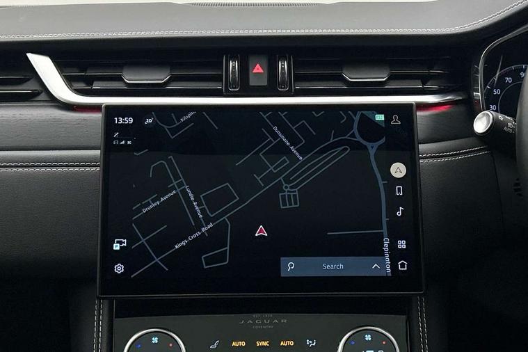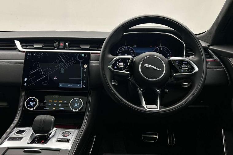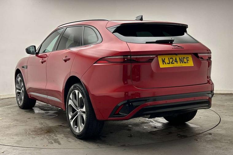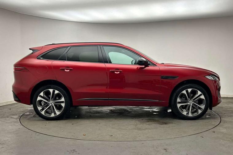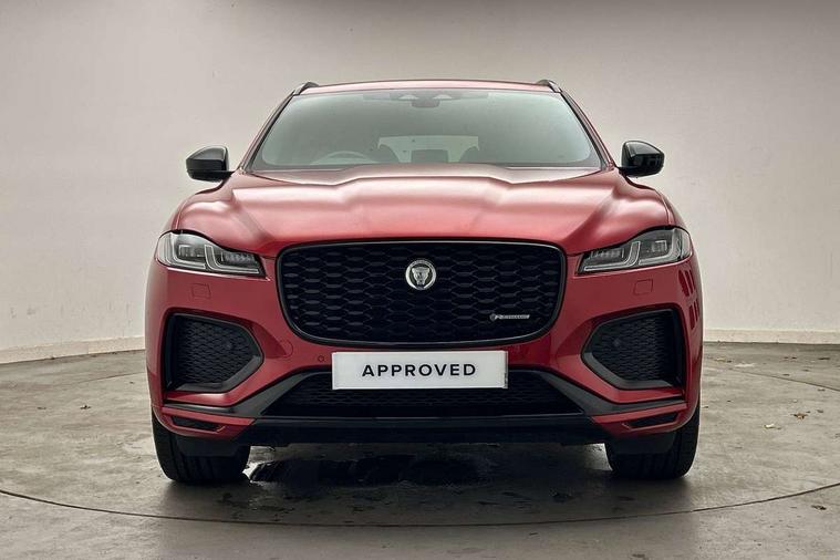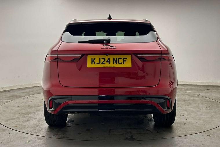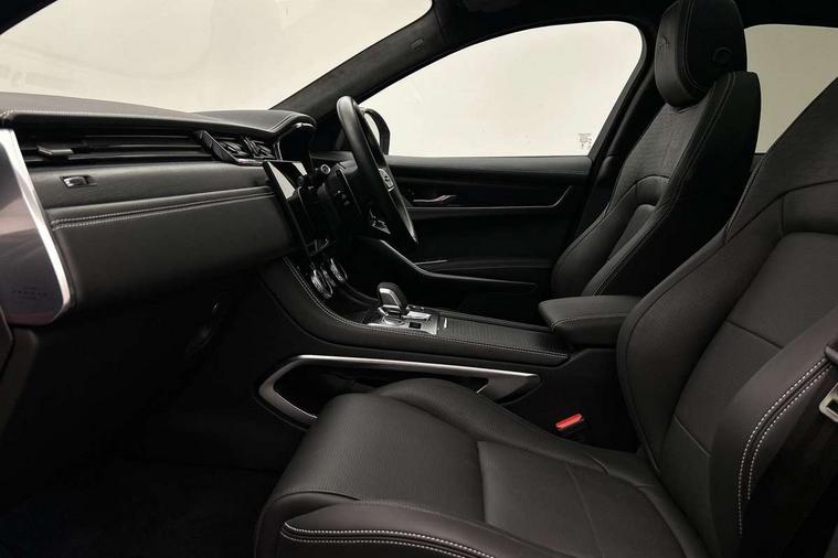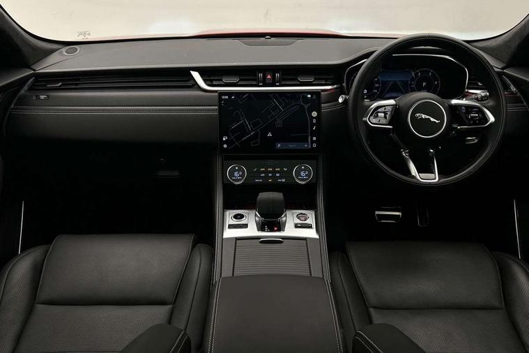 11.4" touchscreen, Adaptive cruise control with steering assist, Android Auto, Apple car play, Blind spot assist, Bluetooth connectivity, Clear exit monitor, Driver alert system, Driver condition monitor, eCall emergency call system, Eco driving style assistant, Electric power assisted steering, InControl remote, Interactive driver display digital with 12" TFT display, Jaguar Toggle shift selector, Lane departure warning system, Lane keep assist, Outside temperature gauge, Personalisation profile management, Pivi pro connected navigation system with app interface and media storage, Pro services and wifi hotspot, Push button starter, Rear collision monitor, Rear traffic monitor, Service interval indicator, Speed proportional steering, Start up sequence with movement in dials and lighting, Traffic sign recognition with adaptive speed limiter, Trip computer, Voice control system, Wireless device charging, 8 speed automatic transmission, Adaptive dynamics, All terrain progress control, All Wheel Drive (AWD), Configurable dynamics, Open differential with torque vectoring by braking, AM/FM radio, Bluetooth streaming, DAB Radio (Digital Audio Broadcasting), Dynamic volume control, InControl apps, InControl protect, iPod integration, 3 flash lane change indicators, AHBA and animated directional indicators, Approach Illumination, Auto dimming rear view mirror, Automatic headlights, Electric heated/power fold memory door mirrors with approach lights and auto dimming driver side, Electric windows with one touch open/close and anti trap, F-Pace and R Dynamic badge, Green tinted glass, Heated front windscreen + heated washer jets, Heated rear window with timer, Illuminated metal tread plates with Jaguar script, Jaguar script and leaper, LED High level third brake light, LED tail lights, Metal load space scuff plates, Non acoustic front windscreen, Privacy glass (rear side windows and rear screen), R Dynamic badge on side door, Rain sensor windscreen wipers, Rear fog lights, Rear metal tread plates, Rear side wing doors, Rear wiper, Trailer stability assist, Variable front intermittent wipers, 12V power point front, 3 rear headrests, 3 seat bench in 2nd row, Additional power sockets - Two additional USB sockets in rear centre console and one 12V socket in trunk, Air distribution speed, Bright metal foot pedals, Centre armrest console, Centre console with side storage, Configurable cabin lighting, Deletion loadspace storage rails, Door sill tread plates, Ebony suede cloth headlining, Electrically adjustable steering column, Fold flat front seats, Front centre armrest with storage compartment, Front door storage space, Glovebox finisher with jaguar script, Heated steering wheel, Hooks in loadspace, Illuminated glovebox, Interior front door handles with separate locking switches, ISOFIX on outer rear seats, Jaguar sense, Leather steering wheel, Luggage tie downs in loadspace, Mist sensing, Multifunction steering wheel, Overhead lighting console, Overhead stowage for sunglasses, Passive front head restraints, Premium carpet mats, Rear air vents, Rear armrest with twin cupholders, Rear centre headrest, Rear door storage space, Reversible boot floor, Satin chrome gearshift paddles, Shopping bag hook, Single front passenger seat, Sunvisors with illuminated vanity mirrors, Twin front cupholders with cover, Online Pack with data plan - F-Pace, 355mm front brakes and 325mm rear brakes, 3x3 point rear seatbelts, ABS, All surface progress control (ASPC), Brake pad warning light, DSC - Dynamic Stability Control, Electric parking brake (EPB), Emergency brake assist, Front airbags with passenger seat occupant detector, Front and rear seatbelt reminder, Front side airbags, Full length side window curtain airbag, Hill launch assist, Power operated child locks, Traction control, Tyre pressure monitoring system, Immobiliser, Keyless entry, Keyless Start, Locking wheel nuts, Perimeter alarm, Remote central locking, Valet mode,