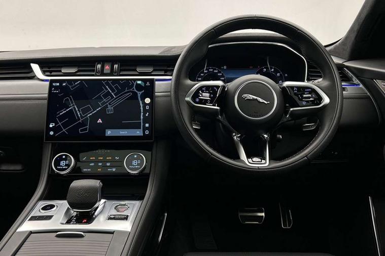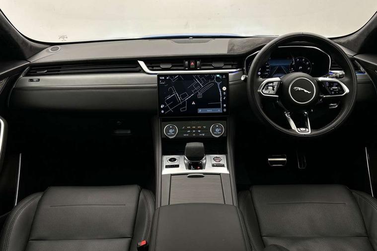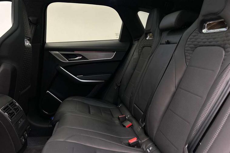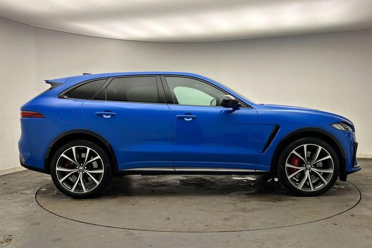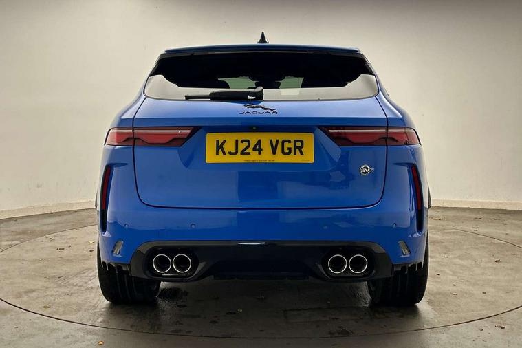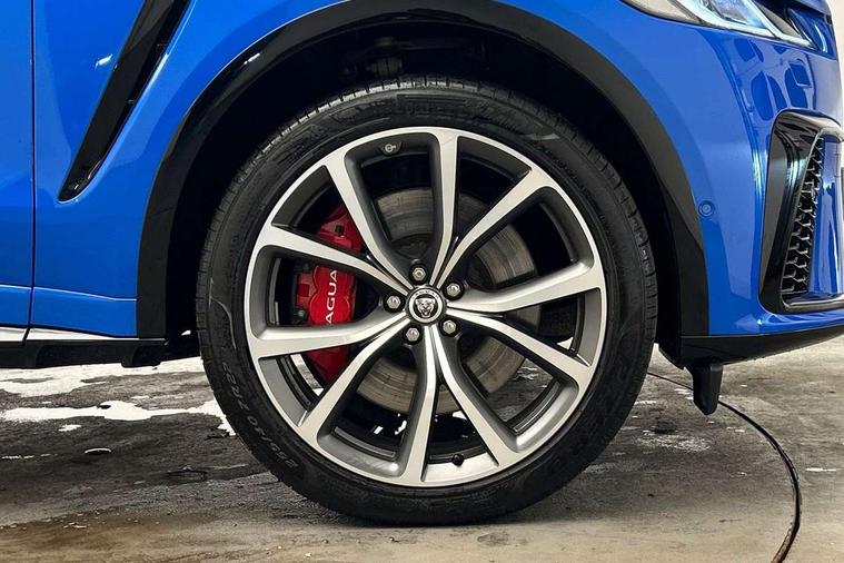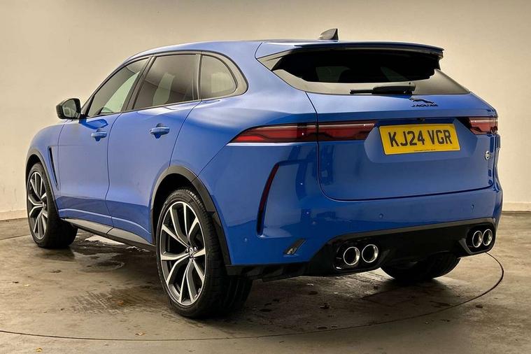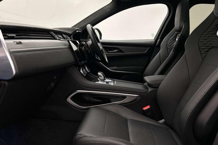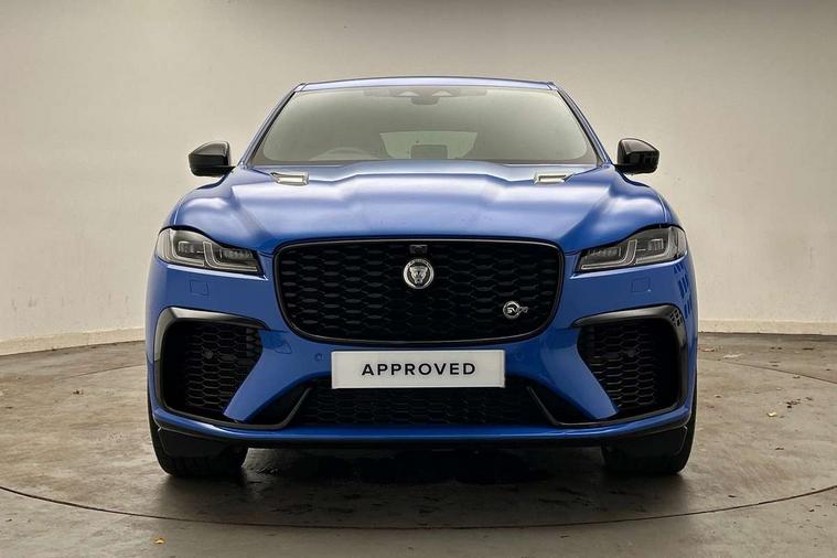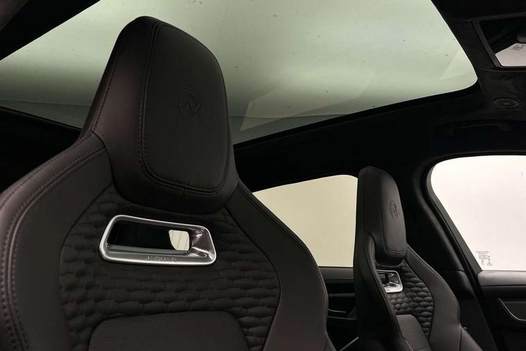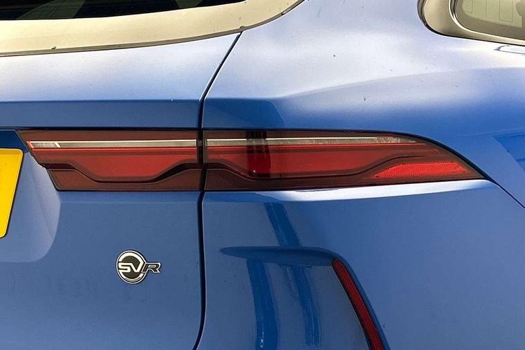 11.4" touchscreen, 3D surround camera, Adaptive cruise control with steering assist, Android Auto, Apple car play, Blind spot assist, Bluetooth connectivity, Clear exit monitor, Driver alert system, Driver condition monitor, eCall emergency call system, Eco driving style assistant, Electric power assisted steering, InControl remote, Interactive driver display digital with 12" TFT display, Jaguar drive control with adaptive surface response, Jaguar Toggle shift selector, Lane departure warning system, Lane keep assist, Outside temperature gauge, Personalisation profile management, Pivi pro connected navigation system with app interface and media storage, Power tailgate/boot lid, Pro services and wifi hotspot, Push button starter, Rear collision monitor, Rear traffic monitor, Service interval indicator, Speed proportional steering, Start up sequence with movement in dials and lighting, Traffic sign recognition with adaptive speed limiter, Trip computer, Voice control system, Wireless device charging, 8 speed automatic transmission, Adaptive dynamics, All terrain progress control, All Wheel Drive (AWD), Configurable dynamics, Electronic active differential with torque vectoring by braking, AM/FM radio, Bluetooth streaming, DAB Radio (Digital Audio Broadcasting), Dynamic volume control, InControl apps, InControl protect, iPod integration, Meridian 650W surround sound audio system with 17 speakers, subwoofer and active road noise cancellation, 'SVR' badge, 3 flash lane change indicators, AHBA and animated directional indicators, Approach Illumination, Auto dimming rear view mirror, Automatic headlights, Electric heated/power fold memory door mirrors with approach lights and auto dimming driver side, Electric windows with one touch open/close and anti trap, Front and rear wheel arch spats, Green tinted glass, Heated front windscreen + heated washer jets, Heated rear window with timer, Illuminated metal tread plates with Jaguar script, Jaguar script and leaper, LED High level third brake light, LED tail lights, Metal load space scuff plates, Non acoustic front windscreen, Privacy glass (rear side windows and rear screen), Rain sensor windscreen wipers, Rear fog lights, Rear metal tread plates, Rear side wing doors, Rear wiper, SVR front bumpers with lower meshes, Switchable active sports exhaust, Trailer stability assist, Variable front intermittent wipers, 12V power point front, 14 way electric heated and cooled driver and passenger memory performance front seats, 3 rear headrests, 3 seat bench in 2nd row, 40:20:40 SVR folding, heated rear seats with centre armrest, Additional power sockets - Two additional USB sockets in rear centre console and one 12V socket in trunk, Air distribution speed, Bright metal foot pedals, Centre armrest console, Centre console with side storage, Configurable cabin lighting, Deletion loadspace storage rails, Door sill tread plates, Ebony suede cloth headlining, Electrically adjustable steering column, Fold flat front seats, Front centre armrest with storage compartment, Front door storage space, Front headrests with SVR embossing, Glovebox finisher with jaguar script, Heated steering wheel, Hooks in loadspace, Illuminated glovebox, Interior front door handles with separate locking switches, ISOFIX on outer rear seats, Jaguar sense, Luggage tie downs in loadspace, Mist sensing, Multifunction steering wheel, Overhead lighting console, Overhead stowage for sunglasses, Passive front head restraints, Performace style individual rear seats for outer positions, Rear air vents, Rear armrest with twin cupholders, Rear centre headrest, Rear door storage space, Reversible boot floor, Satin chrome gearshift paddles, Shopping bag hook, Single front passenger seat, Sunvisors with illuminated vanity mirrors, SVR front fender with functional vents, SVR leather steering wheel with Black R logo, SVR lower valance/splitter, SVR luxury carpet mats, SVR vented bonnet, Twin front cupholders with cover, Online Pack with data plan - F-Pace, 395mm front and rear brakes, 3x3 point rear seatbelts, ABS, All surface progress control (ASPC), Brake pad warning light, DSC - Dynamic Stability Control, Electric parking brake (EPB), Emergency brake assist, Front airbags with passenger seat occupant detector, Front and rear seatbelt reminder, Front side airbags, Full length side window curtain airbag, Hill launch assist, Power operated child locks, Red brake calipers, Traction control, Tyre pressure monitoring system, Immobiliser, Keyless entry, Keyless Start, Locking wheel nuts, Perimeter alarm, Remote central locking, Valet mode, Summer tyres,
