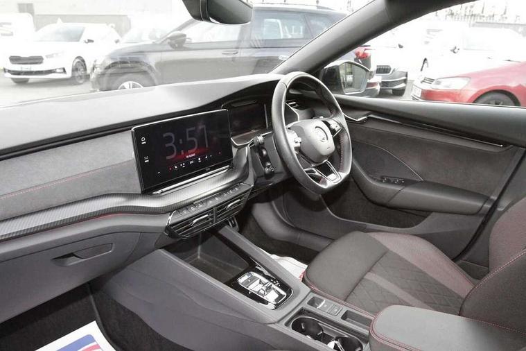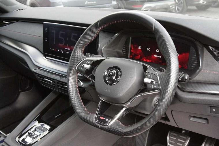 1x USB Type C port in rear view mirror (charging only), 2x USB Type C ports in rear of front centre armrest (charging only), Bluetooth system, Colour multifunction trip computer, Columbus satellite navigation with 10" touchscreen display, Drive mode selector, Front assist system, Progressive dynamic steering, Smartlink (includes android auto and mirrorlink), Speed limiter, Turn Assist, Virtual Cockpit - 10.25" digital display, Voice control system, Wireless SmartLink for Apple Car Play, Front and rear stabilizers, Sports suspension with 15mm lower, 2x USB Type C ports (for charging and data transfer), DAB Digital radio, Swing radio with 8.25" touchscreen, Aero front windscreen wipers with intermittent function, Auto dimming rear view mirror, Body colour door handles, Chrome exhaust tailpipes, Door sills with vRS logo, Electric front and rear windows, Electrically adjustable, heated and folding door mirrors with memory function, Exterior gloss black sports styling including front grille, side strip, window surrounds, door mirror and badging, Full LED Matrix headlights with AFS, rear LED lights and dynamic indicators and cornering front fog lights, Heated rear windscreen, High level third brake light, Ice scraper in fuel cap, Rain and light sensors, Rear fog light on one side, Rear privacy glass, vRS bumpers and lip spoiler, 3 rear headrests, 4 foldable roof handles, Alcantara padded dash panel with contrast stitching, Aluminium pedals, Black headlining, Chrome inner door handles, Cloth upholstery, Front centre armrest, Front head restraints, Heated front seats, Height adjustable driver and passenger seat with lumbar support, Illuminated air conditioned glovebox, Leather trimmed gearshift lever, Luggage compartment lighting x1 light, Mechanical rear seat release, Parcel shelf - folding, Satin black textured with artificial stiching in dash board pads, Sun visors with mirrors, Sunglasses storage, Textile floor mat set, Three spoke leather sports multifunction steering wheel with paddles, Ticket holder, Umbrella in door panel, Unsplit rear bench seat and split folding backrest, LED interior light pack - Octavia, 3 point front/outer rear seatbelts+pre-tensioners, Alarm with interior monitoring, tilt sensor and back up horn, Automatic door unlocking in case of crash, Automatic fuel cut off in case of crash, Automatic warning lights in case of emergency braking, Drivers knee airbag, Electronic parking brake, Emergency call and proactive services, ESC including ABS, EBV, MSR, ASR, EDS, HBA, DSR, Front and rear disc brakes, Head and curtain airbags, Hill hold control, Hill start assist, ISOFIX on front passenger seat and outer rear seats, Passenger airbag deactivate switch, Red brake calipers, Two tone horn, Tyre pressure monitor, Visual and acoustic seat belt reminder, Warning reflectors in front door, Door locks with immobiliser, Keyless entry and start/stop including rear doors, Remote central locking, Carbon optic decorative inserts, Gloss black air vent surrounds, 19" Altair anthracite alloy wheels,