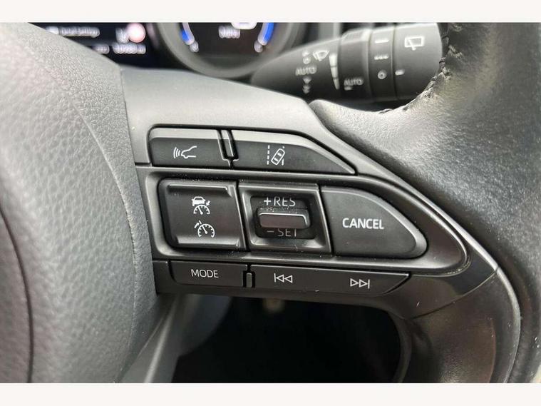 4.2" multi information display, 8" Toyota touch 2 multimedia system with Smartphone integration with Apple CarPlay and Android auto, Adjustable speed limiter, Bluetooth connectivity, Digital speedometer, Driver attention alert system, eCall emergency system, Electric power steering, Full range intelligent adaptive cruise control, Hybrid system indicator, Key reminder warning, Lane trace assist, Multimedia, audio, telephone and voice recognition switches on steering wheel, My T Connected services, Pre-collision system enhanced with emergency steering assist, Reversing camera, Road sign assist - RSA, Steering assisted vehicle stability control, 6 speakers, DAB Digital radio, USB connection, 3rd brake light, Acoustic windscreen glass, Anti-jam protection on power windows, Auto high beam [AHB] with on/off switch, Automatic headlights, Black lower front grille, Black Shark-fin antenna, Black upper front grille, Black wheel arch mouldings, Body colour door handles, Body colour front bumper, Body colour rear bumper, Electric adjustable heated door mirrors, Follow me home headlights, Front and rear electric windows with auto up/down function, Front intermittent wipers, Halogen projector headlights, Headlight cut off reminder, Indicators integrated on door mirrors, Intermittent rear wiper, LED daytime running lights, LED Indicators, Manual headlight levelling, Manually retractable door mirrors, Noise reduction layer on windscreen, Rain sensor, Rear side wing doors, Rear spoiler, Rear window defogger, 12v power outlet - front, 2x Rear coat hooks, 3 seat bench in 2nd row, 3 spoke leather steering wheel, 60/40 split folding rear seat, Adjustable speed limiter switch on steering wheel, Auto air conditioning, Boot light, Central armrest, Driver and front passenger personal lights, Fabric door trim, Fabric upholstery, Front console box, Front cup holders, Front head restraints, Glovebox, Grey roof lining, Height adjustable driver's seat, Height adjustable front passenger seat, ISOFIX child restraint system, Lane departure alert switch on steering control, Leather gearshift, Manual telescopic and tilting steering wheel, Mirror on driver and passenger sun visor, Pollen air filter, Rear head restraints, Single front passenger seat, Soft tonneau cover, 3x3 point rear seat belts, ABS+EBD+Brake assist, Driver and passenger central airbags, Driver and passenger front airbags, Driver and passenger side airbags, Electronic parking brake, Emergency brake light system (EBS), Front seat belt reminder, Hill start assist control (HAC), Passenger airbag on/off switch, Pre-collision system with pedestrian and cyclist detection, Rear door child safety locks, Rear passenger side airbags, Rear seat belt reminder, Traction control, Tyre pressure warning system, Immobiliser, Intrusion alarm, Keyless smart entry with push button start, Power door locks, Power passenger window lock, Remote door lock, 16" 10 spoke alloy wheels, Tyre repair kit,
