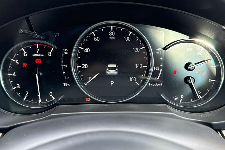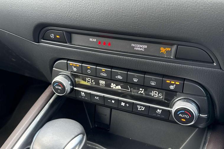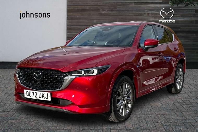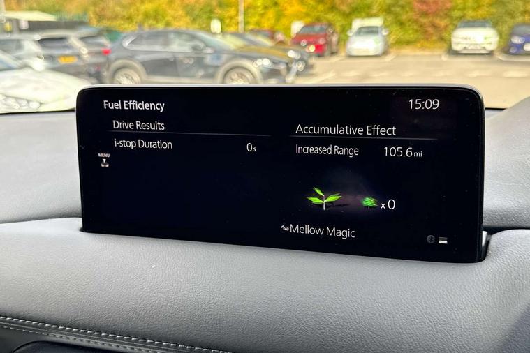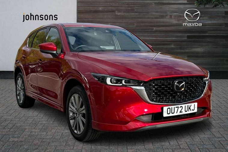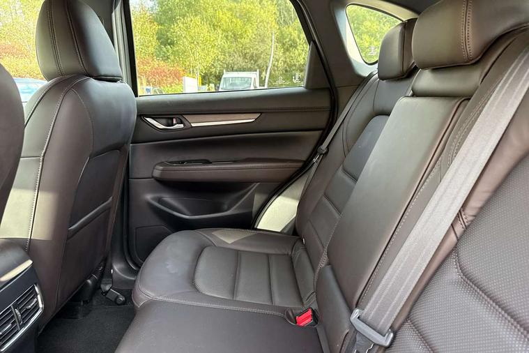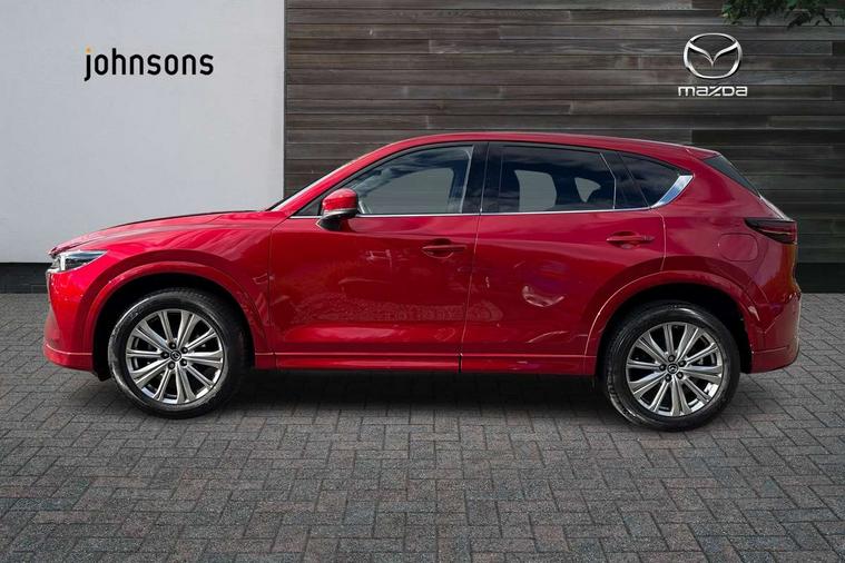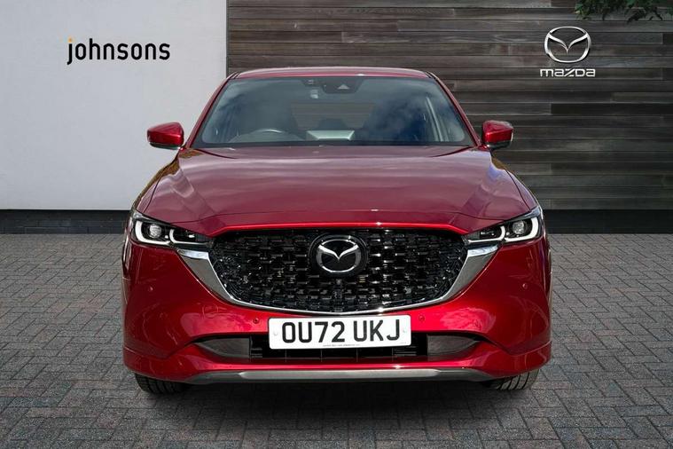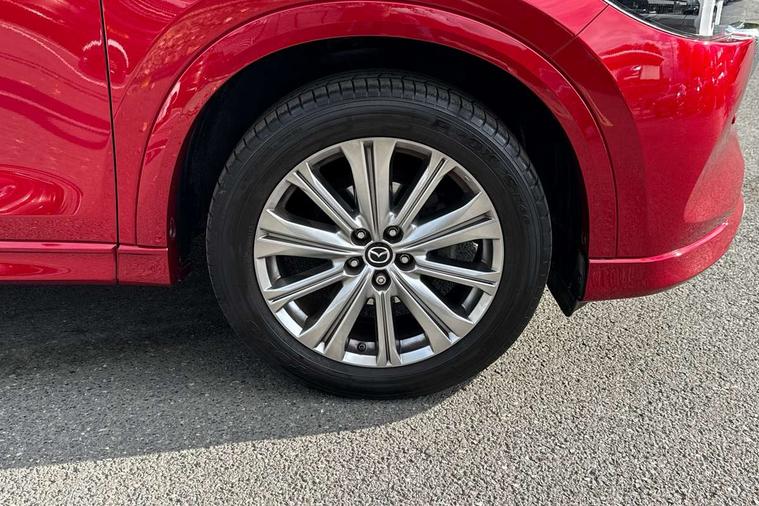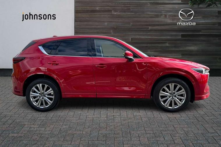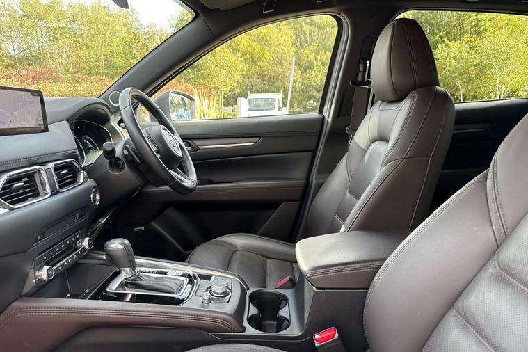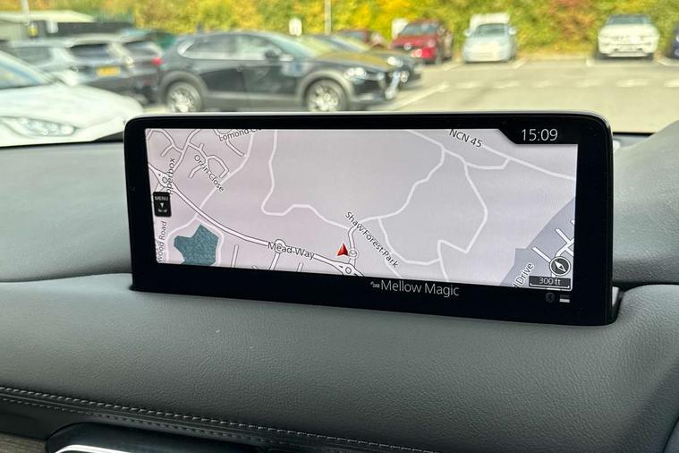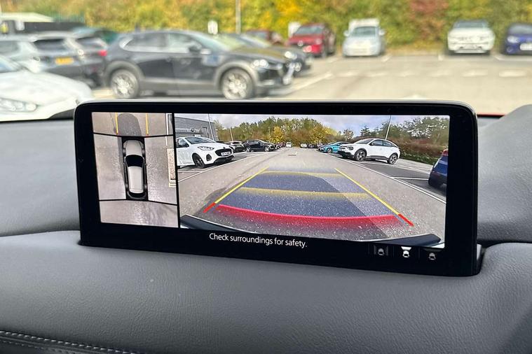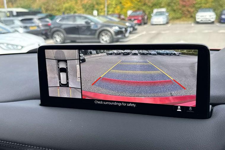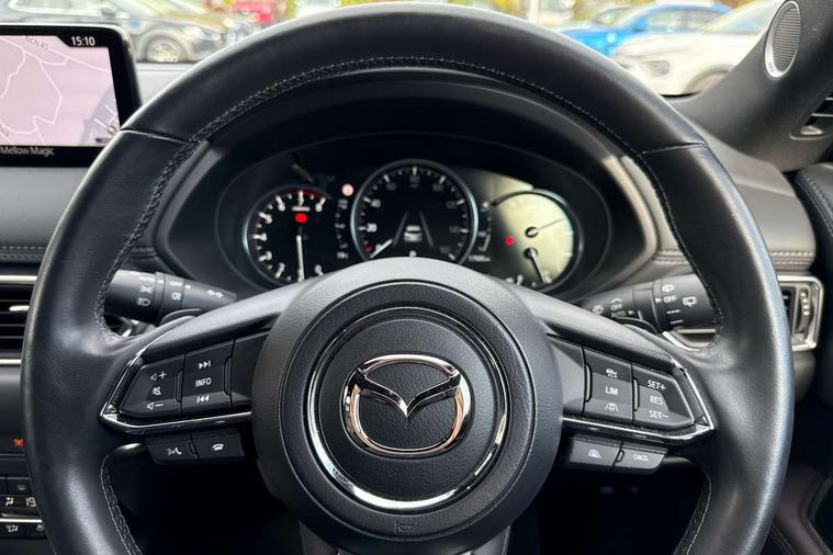10.25" display with Mazda Connect infotainment, 360 degree surround camera, 7" colour TFT display, Advanced blind spot monitoring, Apple car play/Android Auto, Bluetooth connectivity with voice control, Collision prevention assist, Connected services, Cruising Traffic Support, Drive mode selector, Driver attention alert system, Electric power steering, Emergency stop signalling system, Engine start/stop button, Forward collision warning, Front and rear parking sensors, Integrated navigation system, Intelligent speed assist, Lane departure warning system, Lane keep assist, Power liftgate, Qi wireless phone charging, Radar cruise control with Stop and Go, Rear cross traffic alert, Service indicator, Traffic sign recognition (TSR), Trip computer, Windscreen projected colour active driving display (HUD) with memory, i-stop, 2 USB sockets in rear, 2x USB sockets in front, AM/FM radio, Bluetooth audio streaming, Bose premium sound system with 10 speakers, DAB Digital radio, Multimedia Commander including separate volume dial, Steering wheel mounted audio controls, Adaptive LED Headlights, Automatic headlights, Body colour door mirrors, Body colour roof spoiler, Body coloured front and rear lower bumper mouldings, Body coloured tire arch and side mouldings, Bright finish signature wing, Coming/leaving home lighting function, Door mirror integrated indicators, Dual large chrome tailpipes, Dusk sensitive headlamps, Electric front/rear windows with one touch auto up/down, Frameless auto dimming interior rear view mirror, Front grille in gloss black finish, Gloss black B and C pillars garnish, Gloss black front grille accent, High beam assist, Intermittent rear wash/wipe, LED auto levelling, LED daytime running lights, LED front fog lights, LED third brake light, Power folding and heated door mirrors, Power tilt/slide sunroof, Privacy glass (rear side windows only), Rain sensing front wipers, Real wood inlay dashboard panel, Rear side wing doors, Scuff plates, Shark fin antenna, Signature LED rear combination lights, Vinyl with real wood inlay door trim panel, Windscreen wiper de-icer, 12v electrical power outlet, 3 seat bench in 2nd row, 3 stage heated front seats, 40:20:40 Karakuri fold-flat seat system, 6 way electric adjustable passenger seat, 8 way electric driver seat with lumbar support + memory, Black roof lining, Cargo room flat floor board with waterproof undertray, Driver seat power slide, recline and height adjustment, Driver, Front passenger and two rear grab handles with coat hooks, Driver/passenger front seatback pockets, Driver/passenger sunvisors + illuminated vanity mirrors (drivers with ticket holder), Dual zone climate control, Folding centre armrest with 2 cup holders, Front and rear door pockets, Front centre storage with two cupholders, Front passenger seat power slide, recline and height adjustment, Front seat ventilation, Heated outer rear seats, Heated steering wheel, Humidity sensor, Illuminated glovebox, Interior dome light with integral spotlight, ISOFIX child seat anchorage points attached on outer rear seats, Karakuri tonneau cover, Leather gear knob, Leather steering wheel with unique stitching and chrome centre bezel, Luggage compartment LED lighting, Luggage compartment power outlet, Nappa leather upholstery, Paddle shifts, Rear air vents, Rear headrests, Rear seat recline, Roof mounted sunglasses holder, Single front passenger seat, Three height adjustable head restraints, Tilt/height adjustable steering wheel, White interior LED illumination lighting, 3 point front seatbelts with pre-tensioners, 3 rear 3 point seatbelts, ABS, Advanced Smart City Brake Support - SCBS, Child locks on rear doors, Driver and front passenger side airbags, DSTC-Dynamic Stability and Traction Control, Dual front airbags, Electronic brake force distribution, Electronic parking brake with auto hold, ESP, Front and rear curtain airbags, Front passenger airbag deactivation, G-Vectoring control, Hill hold assist, Rear smart city brake support, Seatbelt reminder front and rear, Single stage passenger airbags, Smart brake support with forward obstruction warning, Tyre pressure monitoring system, Automatic door locking when moving off, Deadlock, Immobiliser, Power door locks, Remote central locking, Smart keyless entry, Thatcham Cat.1 alarm, Upper dashboard and door cards wood trim, 19" exclusive design bright alloy wheels, Tyre repair kit,