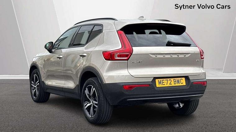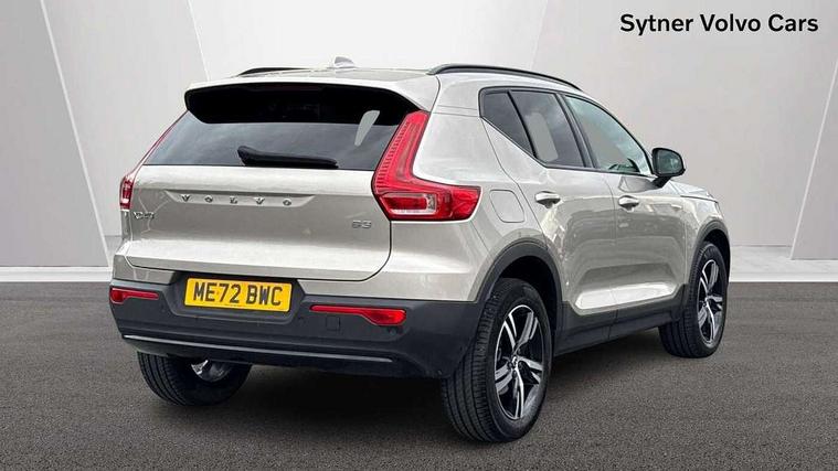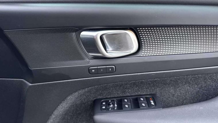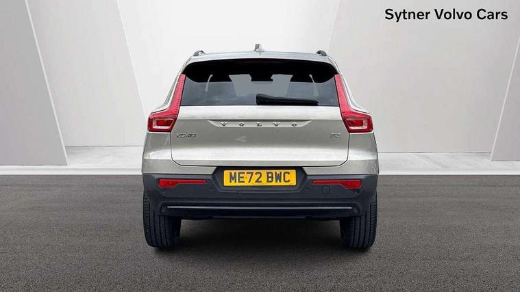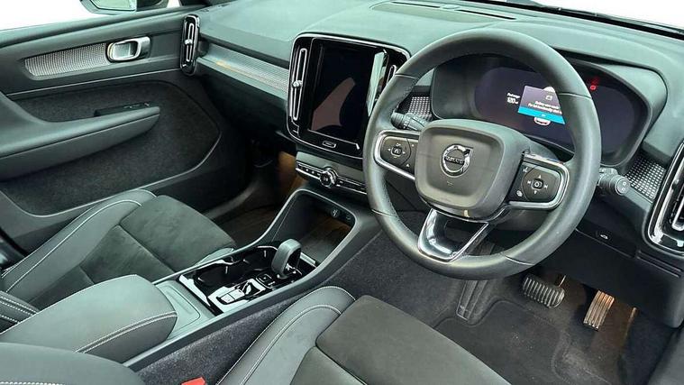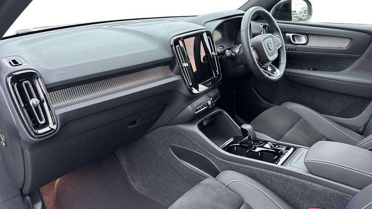 12.3" Progressive Driver Display, 9" centre console portrait touch screen, Adjustable steering wheel force, Bluetooth hands free telephone kit, Cruise control, Driver awareness - blind spot information system with steer assist, cross traffic alert with autobrake, rear collision warning and migitation, E-call, Front park assist, Google automatic services - Nav with google maps, apple carplay/android auto, voice recognition with google assistant, Hands free power tailgate, Lane keep assist with driver alert control, Oncoming Lane Mitigation, Rear park assist, Rear park assist camera, Speed limiter, Speed sensitive steering, Wireless/Inductive Mobile Phone Charging, Dynamic chassis, DAB Digital radio, High performance sound, 8 speakers/250W, front USB and 2 rear type C USB, Steering wheel mounted remote controls, Adaptive brake lights with high level LED brake lights, Auto dimming feature for exterior door mirrors, Auto dimming interior mirror, Automatic headlamp levelling, Automatic LED Headlights + Active high beam incorporating daytime running lights, Front aluminium tread plates, Front and rear electric windows, High gloss black front and rear skid plate, High gloss black mesh front grille with high gloss black surround, High gloss black window trim, Home safe and approach lighting, Integrated roof rails in high gloss black, LED front fog lights, Puddle lights, Rain sensor with automatic windscreen wiper activation, Rear side wing doors, Rear wiper, Roof antenna, Roof spoiler, Visible VIN plate, 12V socket in front tunnel console and luggage compartment, 2-Zone electronic climate control with CleanZone air quality system and pollen filter, 3 seat bench in 2nd row, 3 Spoke tailored steering wheel with chrome trim, 60/40 versatile split folding rear seat, A-pillar parking ticket holder, Ambient front door and instrumental panel lighting, Centre console cupholders and storage, Flexible load floor and grocery bag holder, Floor mats, Front door pocket and front cupholder illumination, Front footwell illumination, Front headrests, Front reading light and theatre lighting, Front seat cushion extensions, Front tunnel pocket, Glovebox bag hook, Heated front seats, Height adjustable passenger seat, Height/reach adjustable steering column, High gloss centre tunnel deco, Illuminated glovebox, Illuminated luggage compartment, Illuminated tailgate, Illuminated vanity mirrors, Integrated waste bin, Isofix attachments on outer rear seats, Load protection net, Multi directional lumbar support, Power driver seat with memory + exterior mirrors memory, Rear armrest / integral cup holders / storage tray, Rear headrests, Rear reading and courtesy lights, Single front passenger seat, Underfloor cargo storage, Climate pack without heated front seats - XC40, 3x3 point rear seatbelts, City safety with steering support with Pedestrian + cyclist + front collision warning with full auto brake and rear auto brake, Drivers knee airbag, Dual stage driver/passenger airbags, Electronic parking brake with auto hold, First aid kit, Front and outer rear seatbelt reminder and pretensioners, Front seats SIPS airbags, Hill descent control, Hill start assist, Inflatable curtain, Passenger airbag cut-off device, Power child locks on rear doors, Road sign information display, Run off Road Mitigation, Run off Road Protection, SIPS (Side Impact Protection System), Slippery road and hazard light alert, Stability and Traction Control with Spin control, Engine Drag Control and Corner Traction Control, Tyre pressure monitoring system, Vehicle deceleration control with Anti-lock Brake System, Electronic Brake Distribution and Emergency Brake Assist, Warning triangle, WHIPS whiplash protection system - front, Anti-theft alarm including immobiliser/volume sensor + level sensor, Key integrated remote control central locking + fuel flap with deadlocking system and auto open/close power windows, Keyless drive includes keyless entry and keyless start, Locking wheel nuts,