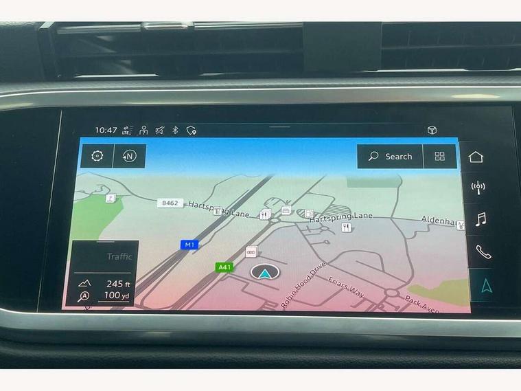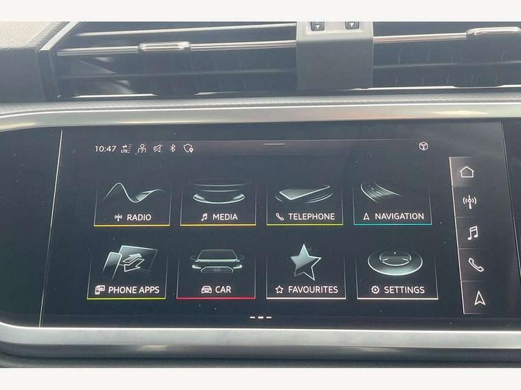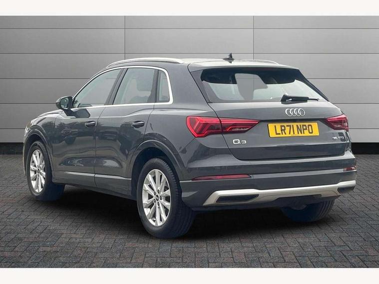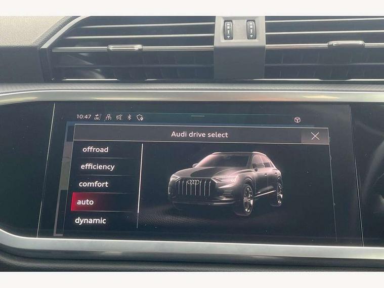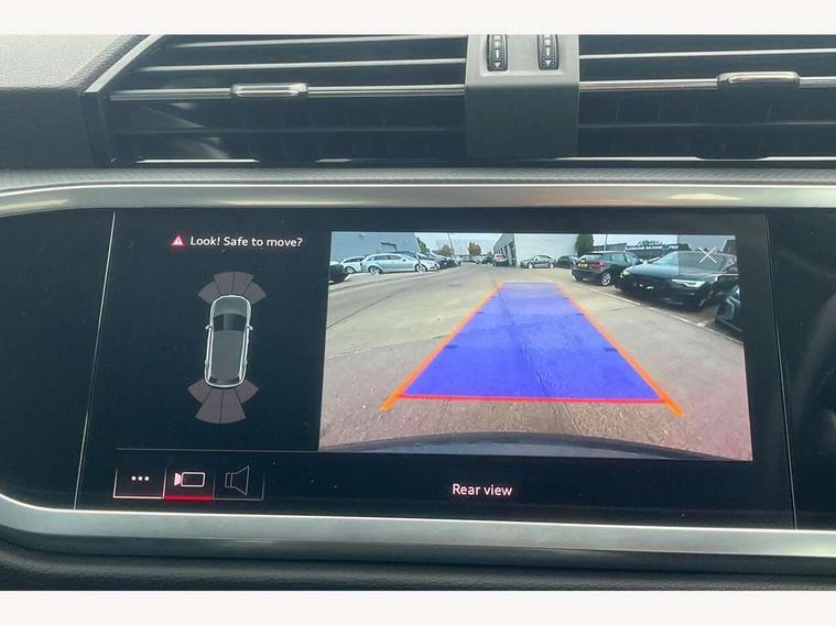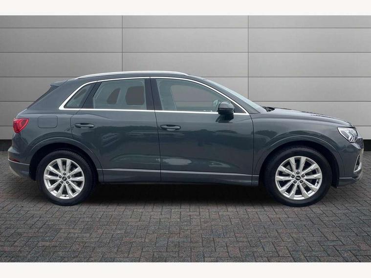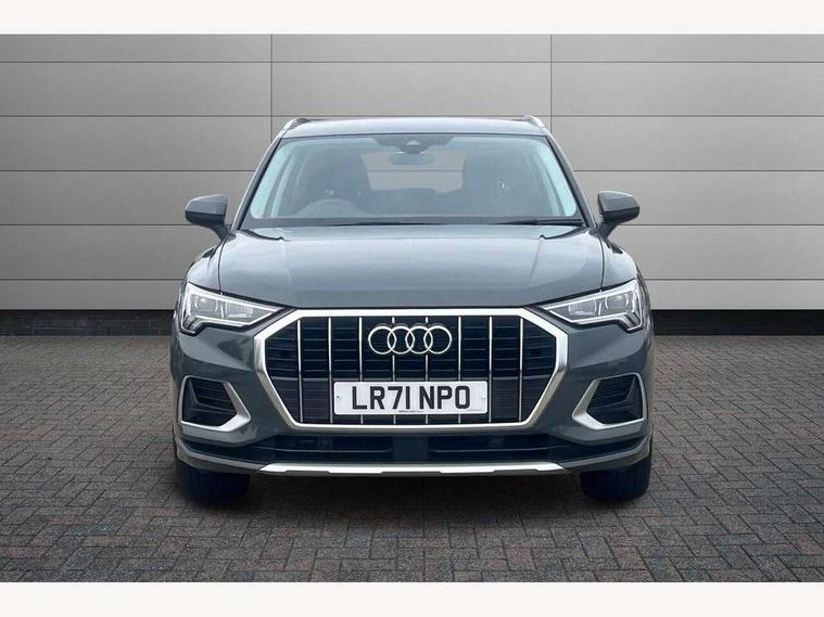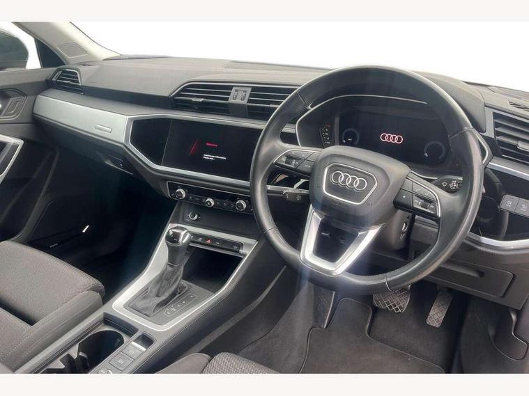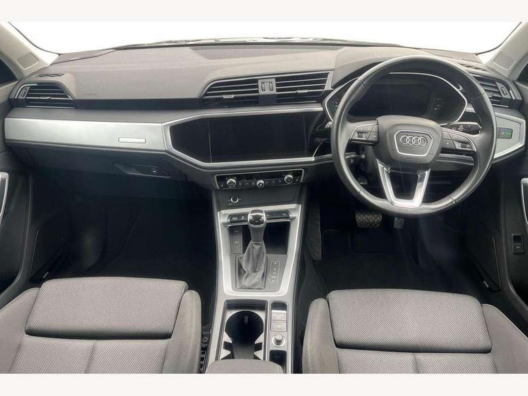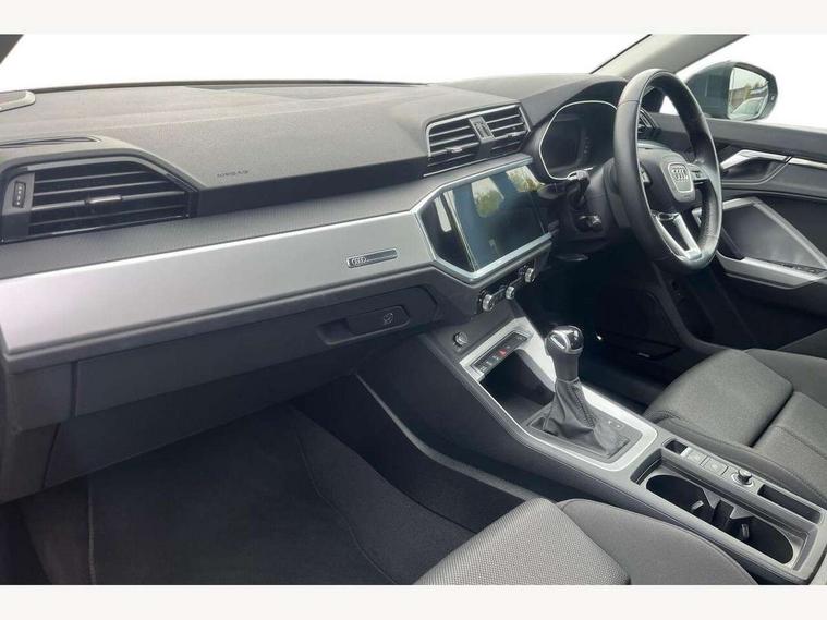 Amazon alexa Integration, Audi connect safety and service (e-call), Audi drive select, Audi lane departure warning, Audi Virtual Cockpit - 10.25" display, Bluetooth interface, Camera based traffic sign recognition, MMI Navigation Plus with high resolution 10.1 inch touchscreen colour display, Power operated tailgate, Progressive steering, Service interval indicator, Smartphone interface includes wireless Apple carplay/Android Auto, Start stop system with recuperation, Voice control system with natural language interaction, 48V Mild hybrid technology, Standard suspension, 2 USB-C ports with charge and data functions, 6 passive loudspeakers, DAB digital radio module, Acoustic windscreen, Aluminium roof rails, Aluminium window trim, Auto dimming frameless rear view mirror, Body coloured bumpers, Electrically folding, adjustable and heated door mirrors with integrated LED side indicators and kerb view function for passenger side, Front and rear electric windows, Front fog lights, Front side air inlets in matt selenite silver, Front spoiler in matt selenite silver, Grille vertical bars in aluminium silver/Matt, High gloss black finish B and C pillars, LED headlights with LED daytime running lights and dynamic rear indicator, LED rear lights, Rain and light sensors, Rear diffuser strip in matt selenite silver, Silver chrome grille surround, Titanium black radiator grille, 12V socket in rear centre console, 3 spoke multi-function leather steering wheel, 40:20:40 folding with manual adjustment for 60:40 forwards/backwards position and backrest angle, Aluminium door sill trims, Dual zone electronic climate control, Front and rear floor mats, Front and rear headrests, Front and rear roof module including reading lights, Front centre armrest, Glove compartment lighting, Height and reach adjustable steering wheel, ISOFIX child seat mounting for front passenger with airbag deactivation and outer rear seat including top tether attachment point for outer rear seats, Luggage compartment light, Lunar silver cloth headlining, Manual front seats with height adjustment, Stainless steel luggage compartment sill finisher, Non smoking pack - Q3, 3x3 point rear seatbelts, 6 airbags - Driver, front passenger, curtain and side windows, Audi pre-sense front with pedestrain and cyclist recognition, Electrically operated child locks on rear doors, Electromechanical parking brake, Electronic stabilisation control including ABS, ASR and EDL, Hill descent control, Hill hold assist, Pre sense basic, Seatbelt monitoring, Tyre pressure warning, Warning triangle and first aid kit, Anti theft alarm, Anti theft wheel bolts, Remote central locking, Detail dashboard around MMI touch colour display in glass look, black with surround in aluminium look, Micrometallic silver inlay, Tool kit, Tyre repair kit,