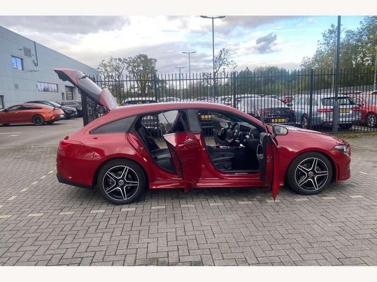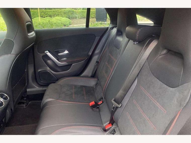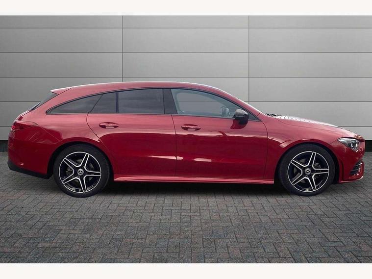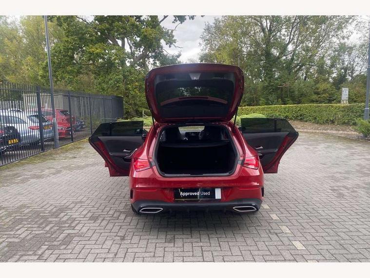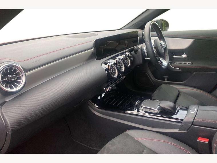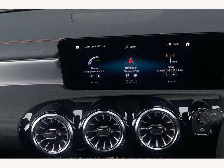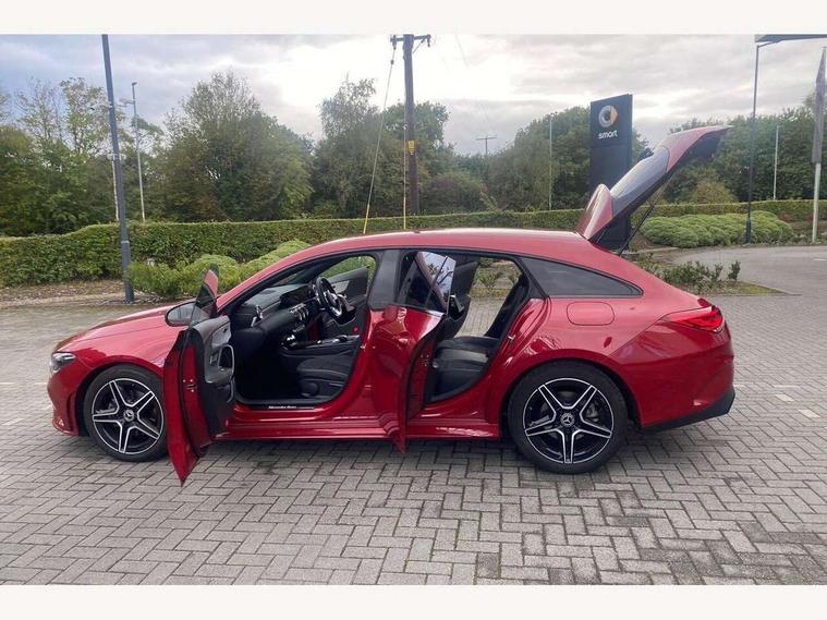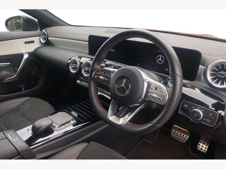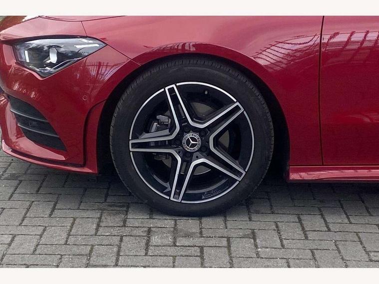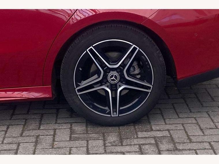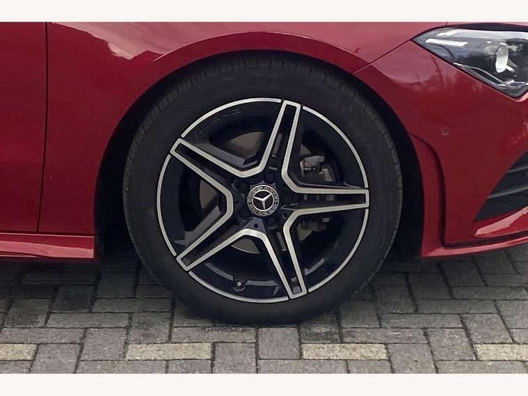 10.25 inch Instrument display with digital cockpit, 10.25 inch touchscreen central media display, Active lane keeping assist, Attention assist - Monitors steering behaviour and long journey fatigue, Bluetooth connection, Car wash mode, Cruise control with limiter, Direct steer system with speed sensitive power steering, DYNAMIC SELECT with a choice of driving modes (ECO, Comfort, Sport and Individual), ECO start/stop function, Fluid level warning indicator for fuel, oil, coolant and washer fluid, Hard-disk navigation, Hey Mercedes Voice activation, Lamp failure indicator, Mercedes me connect including emergency call system, accident recovery, breakdown management and maintenance, Mercedes me remote services, Outside temperature gauge, Owners manual and service booklet in English, Pre-installation of private car share, Preinstallation for Mercedes Benz link, Radio aerial integrated into front and rear windshields, Service indicator (ASSYST), Smartphone integration with Apple CarPlay and Android auto, Speed limit assist, Tailgate, Trip computer in multifunction display with current consumption indicator, Lowered comfort suspension, Rear axle multi-link, DAB digital radio tuner, MBUX multimedia system, Mercedes Benz sound system (100 W) with 6 speakers, USB (type C) ports (2) in stowage compartment and 1 in front of centre console, Adaptive brake lights, AMG body styling with AMG front apron and rear apron and visible exhaust tailpipe in chrome trim elements, AMG bodystyling side skirts, Body colour bumpers, Body colour door handles, Chrome beltline strips, Diamond radiator grille pins in chrome, Electric windows, Electrically adjustable and heated door mirrors with integrated LED indicators, Exhaust system with 2 Visible tailpipe trim elements and rear apron with trim in chrome, Headlamp assist automatic headlamp activation, Heated glass rear windscreen + timer control, High level LED third brake light, Interior mirror with black reading lamps and frameless, LED high performance headlamps with integrated LED daytime running lights, LED tail lamp, Privacy glass with dark tinting on rear side windows and rear window, Rain sensing windscreen wipers with two sensitivity settings, Rear fog lamp, Rear side wing doors, Rear wiper, Variable front intermittent wipers, Window line trim strip in chrome, 3 seat bench in 2nd row, 3 spoke flattened bottom nappa leather multifunction steering wheel with perforated leather in grip area, 40:20:40 split folding rear seats with backrest, Air conditioning - Two zone thermotronic luxury automatic climate control with display, Air vents with surround in silver chrome, Artico man-made leather upholstery, Automatic child seat recognition sensor, Black roof lining, Brushed stainless steel sports pedals with rubber studs, Floor mats with stitched AMG lettering, Front centre armrest with stowage, Front door sills with Mercedes Benz lettering, Galvanished gear shift paddles on steering wheel, Heated front seats, Illuminated glove compartment stowage, Interior lighting - 64 colour Ambient lighting, Luggage net on driver/front passenger seat backrest, Manually adjustable front seats, Manually height and reach adjustable steering column, Rear head restraints, Single front passenger seat, Sport seats with fixed head restraints, Stowage compartment in centre console with retractable cover, Sunvisors with illuminated vanity mirrors, Touchpad on center console, Twin front cupholders, Two outer rear seat isofix and top tether child seat fixing points, Light and sight pack - CLA, Mirror pack - CLA, Night package - CLA, Parking package - CLA, Seat comfort pack - CLA, Active bonnet pedestrain safety measure which detects an impact and raises bonnet by 65mm, Active brake assist includes forward collision warning system with autonomous braking, Adaptive brake assist with hold function and hill start assist, Anti lock braking system (ABS) with brake assist, Black seat belts, Bonnet with power domes, Brake pad wear warning indicator, Childproof locks manually operated for rear doors and electrically operated for rear power windows, Crash responsive emergency lighting, Driver and front passenger head and sidebags, Driver and front passenger windowbags, Drivers knee airbag, Dual stage driver and front passenger airbags, Electric parking brake, Electronic stability programme with acceleration skid control, ESP curve dynamic assist, Front and rear seatbelt reminder, Front passenger seat occupancy sensor, Three point rear seat belts, Tyre pressure monitoring system, Warning triangle and first aid kit, Guard 360 degree guard vehicle protection system with immobiliser and interior protection, Keyless Go starting function, Remote central locking and crash sensor with emergency opening function, Light aluminium with longitudinal grain interior trim, 18" AMG 5 twin spoke light alloy wheels painted in black with high sheen finish, Summer tyres, Tirefit tyre sealant kit,