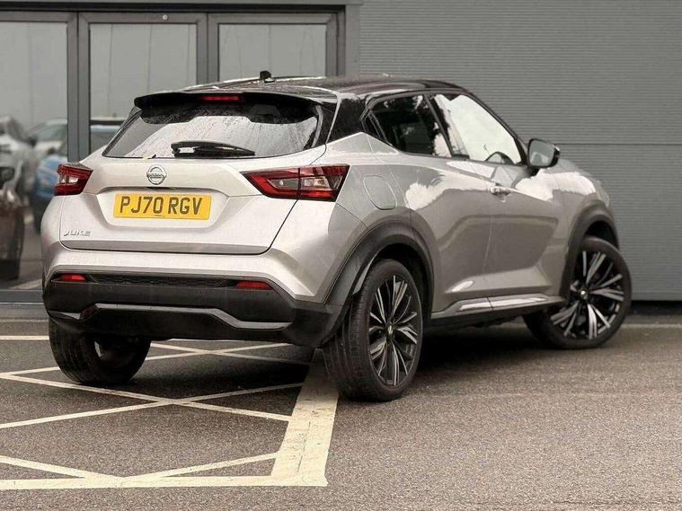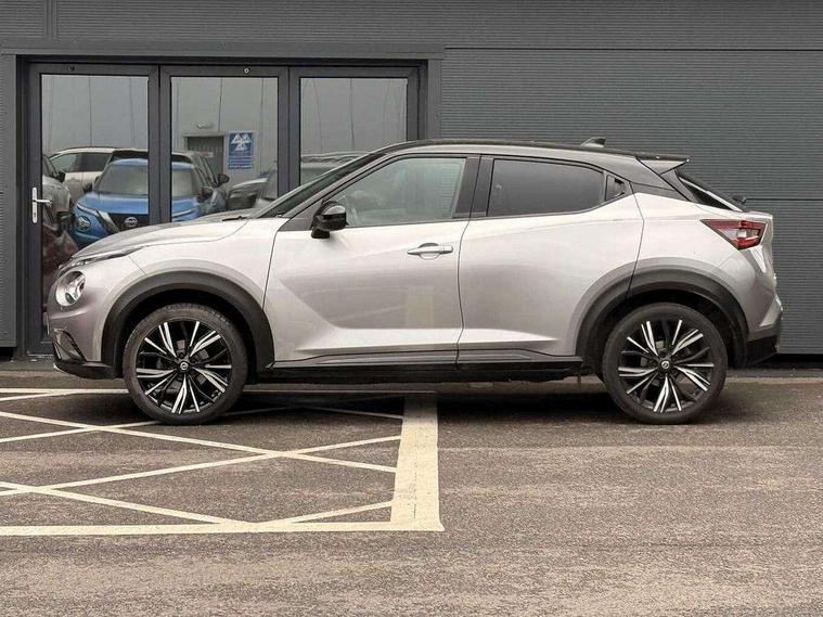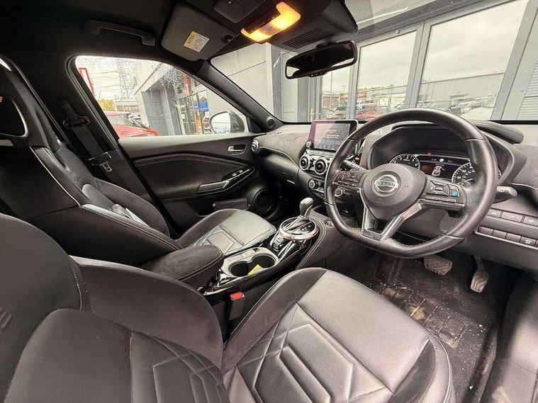 7" full colour TFT screen combimeter, 8" infotainment colour display with touch screen, Apple CarPlay and Google Android auto, Drive modes select (Eco, normal and sport), Emergency and breakdown call, Front parking sensor, Idle start/stop system, Intelligent lane intervention, Lane departure warning system, Nissan connect nav with TomTom traffic, Nissan connect services and Wifi connection, Outside temperature sensor, Power Steering, Rear parking sensor, Traffic sign recognition, Trip computer, Gasoline particulate filter, Bluetooth system, USB, Aux-in and 12V socket, Bose personal plus audio system with 8 speakers(4 speakers and 2 headrest speaker for driver and passenger seats), Bose personal sound stage control, DAB Digital radio, Front lower bumper painted in silver finisher, Rear console USB port, Auto dimming interior rear view mirror, Automatic hazard signal with emergency stop signal, Body colour bumpers, Body colour door handles, Electrically adjustable door mirrors with integrated indicators, Follow me home headlights, Front and rear electric window with one touch driver and passenger window, Heated and auto folding door mirrors, High beam assist, LED daytime running lights, LED front fog lights, LED headlamps, LED rear fog lamp, LED rear lamps, Rain sensor windscreen wipers, Rear privacy glass, Rear spoiler, Rear wiper, Thermaclear heated windscreen, Three blink turn signal, 3 height adjustable rear headrests, 60/40 split folding rear seat, Automatic climate control, Card holder on driver sunvisor, Door ambient lighting, Driver and passenger sliding and reclining seats, Driver seat back pocket, Driver side rear coat hanger, Driver/passenger sunvisors and illuminated vanity mirrors, Front and rear cabin lights, Front armrest, Front door pockets with bottle holders, Front head restraints, Front passenger isofix child seat anchorage point, Front/rear passenger grab handles, Gear console ambient circle lighting, Grey synthetic leather kneepad, Heated front seats, Height adjustable driver's seat, Height adjustable passenger seat, Internal chrome door handles, Leather gearshift knob, Leather steering wheel, Luggage board, Luggage space lighting, Monoform sporty seats, Multifunction steering wheel, Passenger seat back pocket, Rear door bottle holders, Steering wheel mounted gearshift paddles, Telescopic steering wheel adjustment, Two cupholders in front centre console, Two rear isofix child seat anchorage points with top tether, Voice recognition switch on steering wheel, Welcome light and console tray ambient lighting, ProPilot pack - Juke, ABS with EBD and brake assist, Active ride control, Active Trace Control, Driver and passenger airbags, Driver and passenger side airbags, Electric handbrake with auto hold function, Electronic Stability Programme (ESP), Front and rear curtain airbags, Height adjustable seatbelts, Hill start assist, Intelligent emergency braking with pedestrian and cyclist recognition, Seatbelt reminder for driver/front passenger and rear seats, Single tone horn, Three 3 point rear seatbelts, Traction control, Tyre pressure monitoring system, VDC Dynamic Vehicle Control, Ventilated rear brake discs, Alarm, Immobiliser, Intelligent Key with push button starter, Remote central locking, 19" Akari alloy wheels,