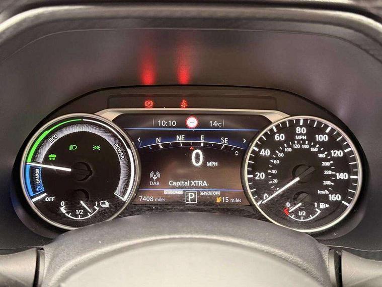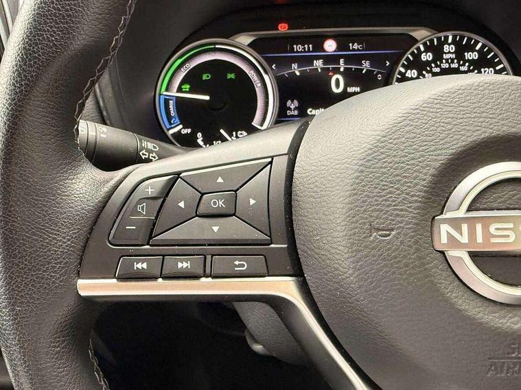 7" full colour TFT screen combimeter, Apple CarPlay and Google Android auto, Drive modes select (Eco, normal and sport), e-Pedal step, Emergency and breakdown call, EV mode selector, Front parking sensor, Intelligent lane intervention, Lane departure warning system, Nissan connect 8" touch screen entertainment system, Nissan connect nav with TomTom traffic, Nissan connect services and Wifi connection, Outside temperature sensor, Power Steering, Rear parking sensor, Traffic sign recognition, Trip computer, Voice recognition, Gasoline particulate filter, 6 speakers, Bluetooth system, USB, Aux-in and 12V socket, DAB Digital radio, Rear console USB port, Auto dimming interior rear view mirror, Auto headlights, Automatic hazard signal with emergency stop signal, Body colour bumpers, Body colour door handles, Electrically adjustable door mirrors with integrated indicators, Follow me home headlights, Front and rear electric window with one touch driver window, Heated and auto folding door mirrors, High beam assist, LED daytime running lights, LED headlamps, LED rear fog lamp, LED rear lamps, Rain sensor windscreen wipers, Rear privacy glass, Rear side wing doors, Rear wiper, Three blink turn signal, 3 height adjustable rear headrests, 3 seat bench in 2nd row, 60/40 split folding rear seat, Automatic climate control, Card holder on driver sunvisor, Cloth upholstery with black and metallic grey syntech leather inserts, Driver and passenger sliding and reclining seats, Driver side rear coat hanger, Driver/passenger sunvisors and vanity mirrors, Front and rear cabin lights, Front armrest, Front door pockets with bottle holders, Front head restraints, Front/rear passenger grab handles, Grey synthetic leather kneepad, Height adjustable driver's seat, Internal chrome door handles, Leather gearshift knob, Leather steering wheel, Luggage board, Luggage space lighting, Monoform sporty seats, Multifunction steering wheel, Rear door bottle holders, Single front passenger seat, Steering wheel mounted gearshift paddles, Telescopic steering wheel adjustment, Two cupholders in front centre console, Two rear isofix child seat anchorage points with top tether, Welcome light and console tray ambient lighting, ABS with EBD and brake assist, Active ride control, Active Trace Control, Driver and passenger airbags, Driver and passenger side airbags, Electric handbrake with auto hold function, Electronic Stability Programme (ESP), Front and rear curtain airbags, Height adjustable seatbelts, Hill start assist, Intelligent emergency braking with pedestrian and cyclist recognition, Rear door child safety locks, Seatbelt reminder for driver/front passenger and rear seats, Single tone horn, Three 3 point rear seatbelts, Traction control, Tyre pressure monitoring system, VDC Dynamic Vehicle Control, Ventilated rear brake discs, Alarm, Immobiliser, Intelligent key and start push button with walk away lock and approach unlock functions, Remote central locking,