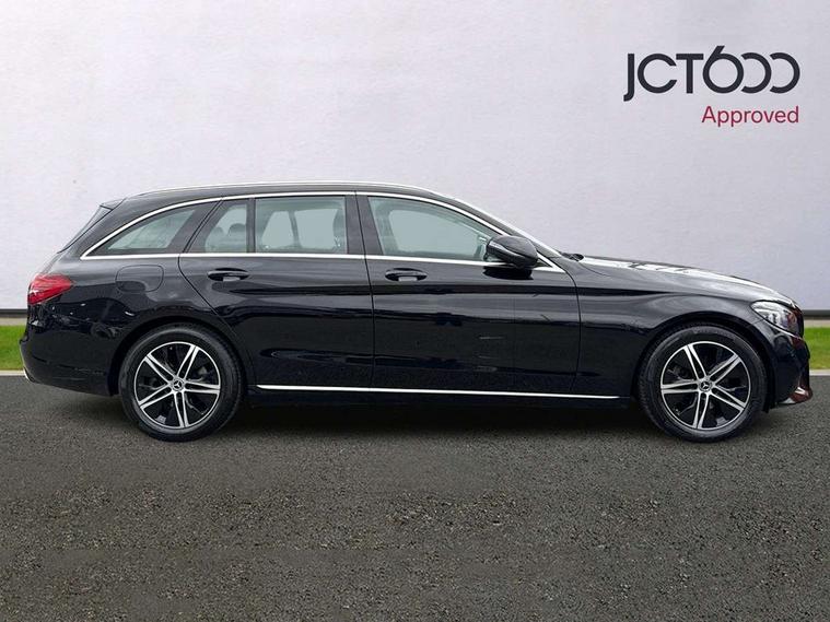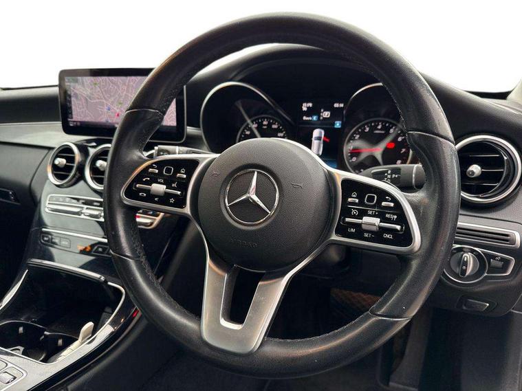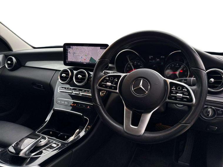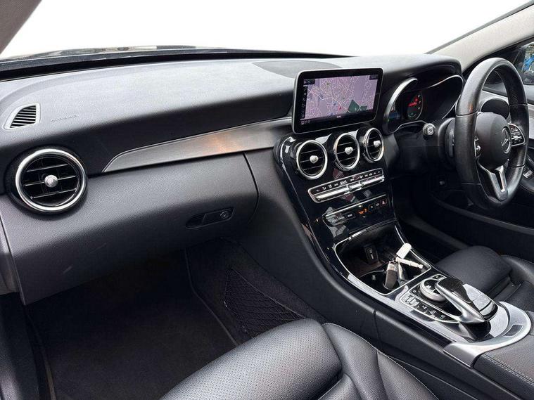 Active park assist with parktronic system, Attention assist, Bluetooth system, Collision prevention assist plus, Comand Online HDD Nav with media interface, radio/CD/DVD/MP3, 10.25 screen, linguatronic voice control, DYNAMIC SELECT with a choice of driving modes (ECO, Comfort, Sport, Sport+ and Individual), Multi function trip computer, Outside temperature gauge, Power opening/closing tailgate, Remote boot release, Reversing camera, Service indicator (ASSYST PLUS), Smartphone integration with Apple CarPlay and Android auto, Wireless charging, Petrol Particulate Filter, 2 USB ports in centre console, DAB Digital radio, Mid-range sound system with 7 speakers and 225W amplifier, SD card slot, Steering wheel mounted audio controls, Adaptive brake lights, Aerial in rear window, Body coloured bumpers, Body coloured door mirrors, Chrome roof rails, Electric windows one touch open/close, Electrically adjustable and heated door mirrors, Green tinted glass, Heated windscreen washers, LED daytime running lights, LED Indicators, LED tail lights, LED third brake light, Multi beam LED headlights, Radiator grille with integral star and 2 louvres in matt iridium silver with chrome trim, Rain sensor windscreen wipers, Rear wiper, Side windows surround in polished aluminium, 2 cupholders in front centre console, 3 spoke leather multi function steering wheel with silver chrome trim, 40:20:40 split folding rear seats, Artico man-made leather upholstery, Auto Mercedes-Benz child seat recognition sensor, Black floor mats, Dual zone automatic climate control, Electric front seat height adjustment, Front and rear head restraints, Front centre armrest with storage compartment, Front door sills with Mercedes Benz lettering, Gearshift paddles, Heated front seats, Illuminated glovebox, Interior lighting - 64 colour Ambient lighting, Load compartment cover, Rear top tether child seat ISOFIX attachment, Sports seats, Sunvisors with illuminated vanity mirrors, Lighting pack - C class, Mirror pack - C Class, Seat comfort pack - C Class, Stowage space pack - C Class, 3 rear 3 point seatbelts, ABS with Brake Assist, Active bonnet, Adaptive brake system, Black seat belts, Child proof door locks, Crash sensor, Drivers knee airbag, Drivers pelvis airbag, Dual stage driver/passenger airbags, Electronic parking brake, ESP with ASR, Front passenger seat occupancy sensor, Front side airbags, Hill start assist, Rear seatbelt warning indicator, Tyre pressure monitoring system, Warning triangle and first aid kit, Window airbags, Alarm system/interior protection/immobiliser, Chrome surround electric key, Remote central locking, Brushed aluminium trim, 17" 5 spoke aero alloy wheels in Silver, Tyre inflation kit,