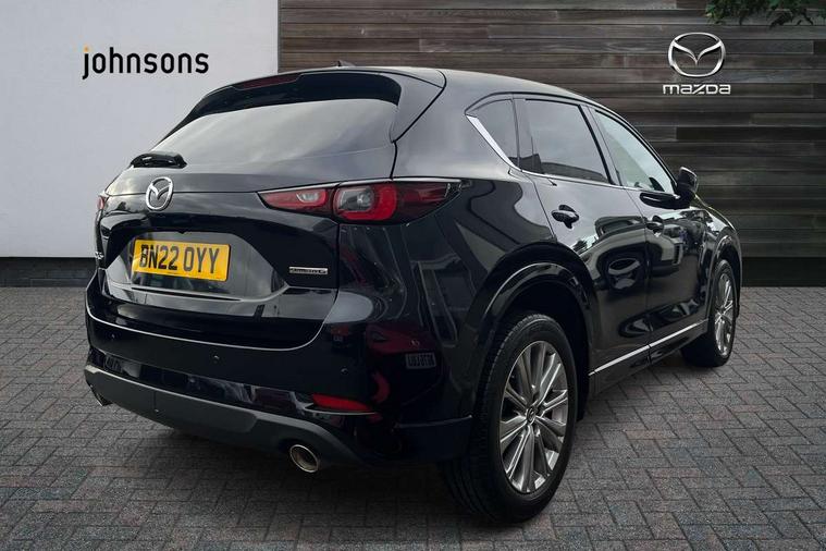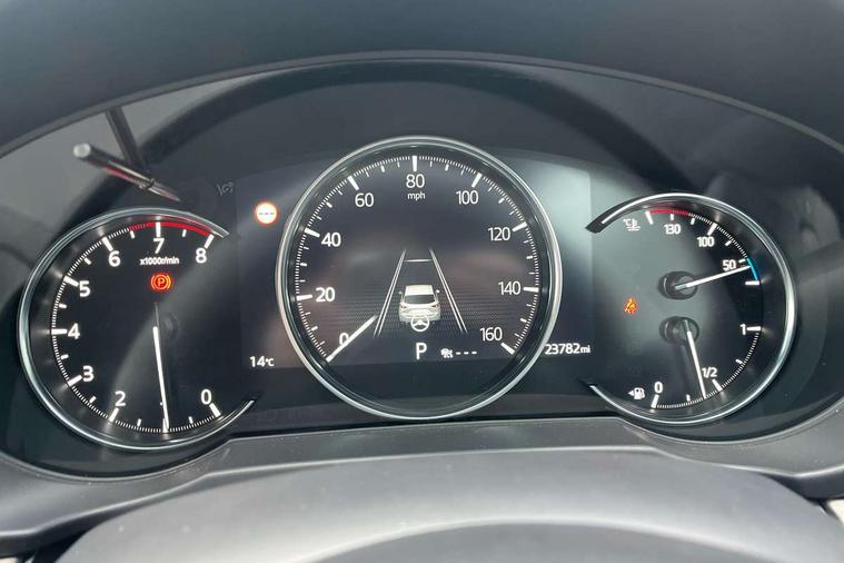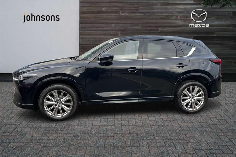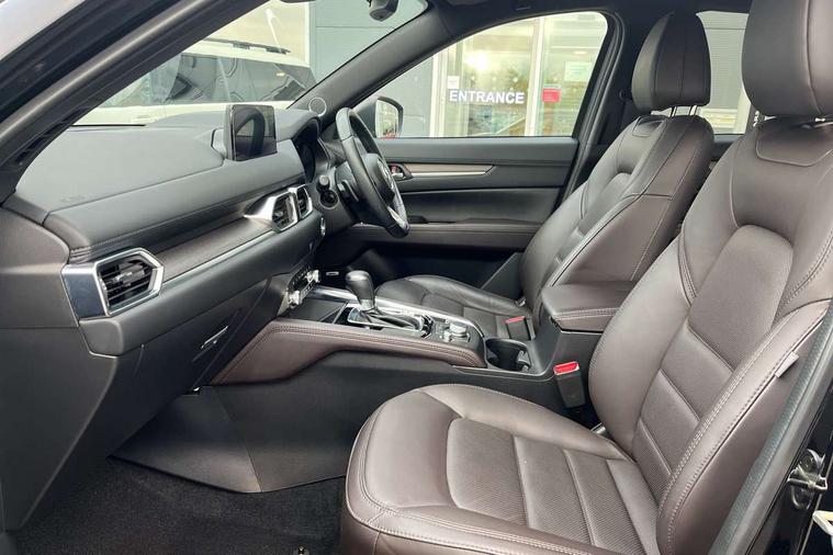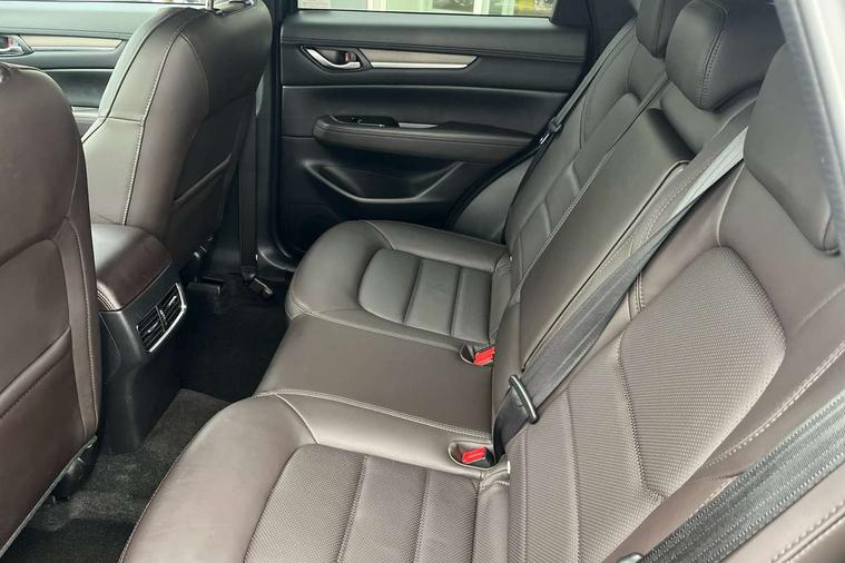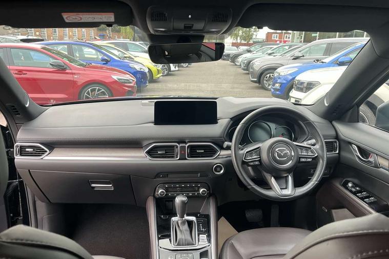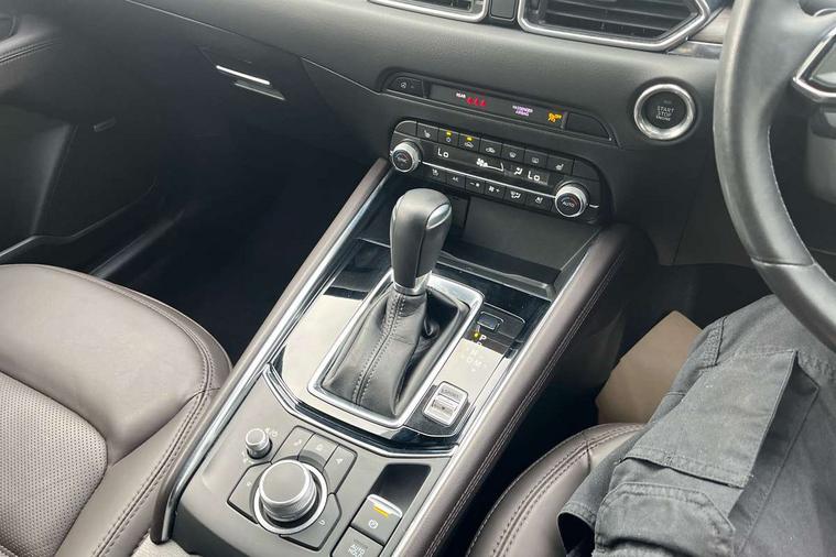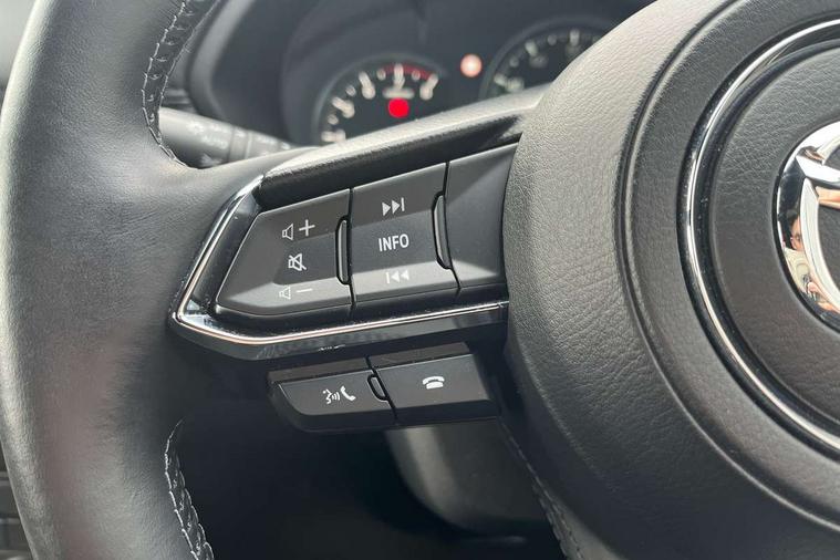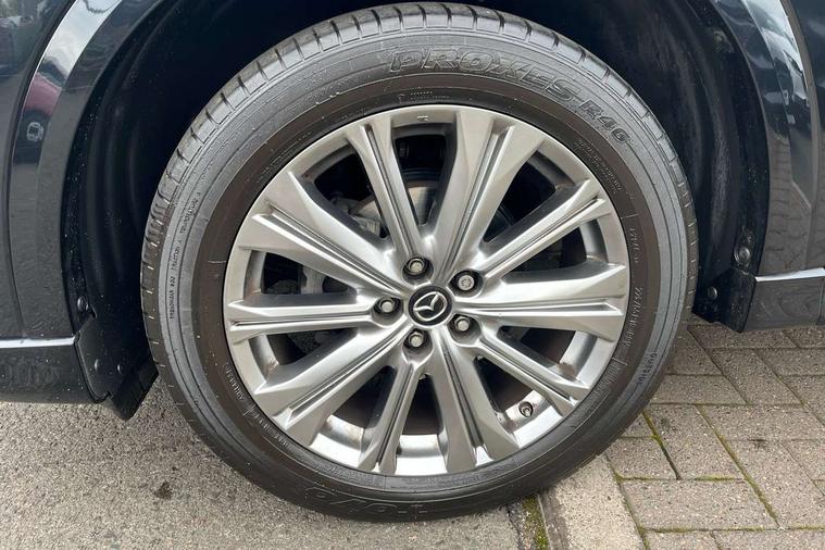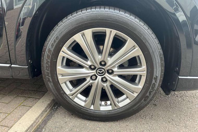 10.25" display with Mazda Connect infotainment, 360 degree surround camera, 7" colour TFT display, Apple car play/Android Auto, Blind spot monitoring with rear cross traffic alert, Bluetooth connectivity with voice control, Collision prevention assist, Connected services, Cruising Traffic Support, Drive mode selector, Driver attention alert system, Electric power steering, Emergency stop signalling system, Engine start/stop button, Forward collision warning, Front and rear parking sensors, Integrated navigation system, Intelligent speed assist, Lane departure warning system, Lane keep assist, Power liftgate, Qi wireless phone charging, Radar cruise control with Stop and Go, Service indicator, Trip computer, Windscreen projected colour active driving display (HUD) with memory, i-stop, 2 USB sockets in rear, 2x USB sockets in front, AM/FM radio, Bluetooth audio streaming, Bose premium sound system with 10 speakers, DAB Digital radio, Multimedia Commander including separate volume dial, Steering wheel mounted audio controls, Adaptive LED Headlights, Automatic headlights, Body colour door mirrors, Body colour roof spoiler, Body coloured front and rear lower bumper mouldings, Body coloured tire arch and side mouldings, Bright finish signature wing, Coming/leaving home lighting function, Door mirror integrated indicators, Dual large chrome tailpipes, Dusk sensitive headlamps, Electric front/rear windows with one touch auto up/down, Frameless auto dimming interior rear view mirror, Front grille in gloss black finish, Gloss black B and C pillars garnish, Gloss black front grille accent, High beam assist, Intermittent rear wash/wipe, LED auto levelling, LED daytime running lights, LED front fog lights, LED third brake light, Power folding and heated door mirrors, Power tilt/slide sunroof, Privacy glass (rear side windows only), Rain sensing front wipers, Real wood inlay dashboard panel, Rear side wing doors, Scuff plates, Shark fin antenna, Signature LED rear combination lights, Vinyl with real wood inlay door trim panel, Windscreen wiper de-icer, 12v electrical power outlet, 3 seat bench in 2nd row, 3 stage heated front seats, 40:20:40 Karakuri fold-flat seat system, 6 way electric adjustable passenger seat, 8 way electric driver seat with lumbar support + memory, Black roof lining, Cargo room flat floor board with waterproof undertray, Driver seat power slide, recline and height adjustment, Driver, Front passenger and two rear grab handles with coat hooks, Driver/passenger front seatback pockets, Driver/passenger sunvisors + illuminated vanity mirrors (drivers with ticket holder), Dual zone climate control, Folding centre armrest with 2 cup holders, Front and rear door pockets, Front centre storage with two cupholders, Front passenger seat power slide, recline and height adjustment, Front seat ventilation, Heated outer rear seats, Heated steering wheel, Humidity sensor, Illuminated glovebox, Interior dome light with integral spotlight, ISOFIX child seat anchorage points attached on outer rear seats, Karakuri tonneau cover, Leather gear knob, Leather steering wheel with unique stitching and chrome centre bezel, Luggage compartment LED lighting, Luggage compartment power outlet, Nappa leather upholstery, Paddle shifts, Rear air vents, Rear headrests, Rear seat recline, Roof mounted sunglasses holder, Single front passenger seat, Three height adjustable head restraints, Tilt/height adjustable steering wheel, White interior LED illumination lighting, 3 point front seatbelts with pre-tensioners, 3 rear 3 point seatbelts, ABS, Advanced Smart City Brake Support - SCBS, Child locks on rear doors, Driver and front passenger side airbags, DSTC-Dynamic Stability and Traction Control, Dual front airbags, Electronic brake force distribution, Electronic parking brake with auto hold, ESP, Front and rear curtain airbags, Front passenger airbag deactivation, G-Vectoring control, Hill hold assist, Rear smart city brake support, Seatbelt reminder front and rear, Single stage passenger airbags, Smart brake support with forward obstruction warning, Tyre pressure monitoring system, Automatic door locking when moving off, Deadlock, Immobiliser, Power door locks, Remote central locking, Smart keyless entry, Thatcham Cat.1 alarm, Upper dashboard and door cards wood trim, 19" exclusive design bright alloy wheels, Tyre repair kit,