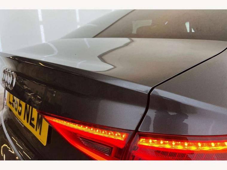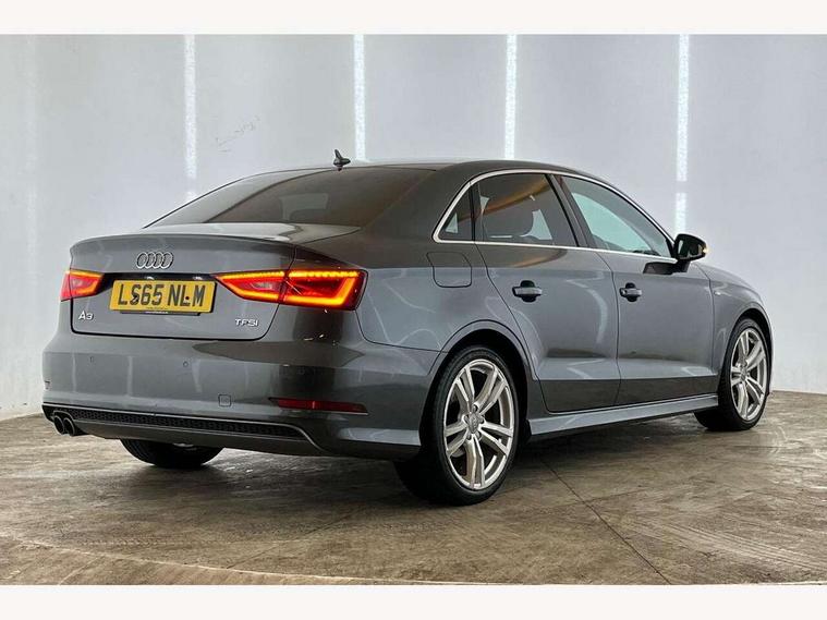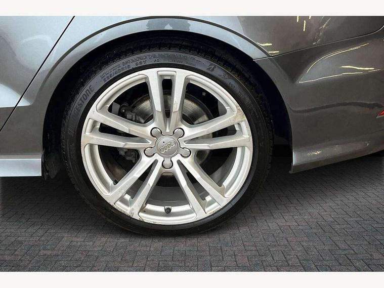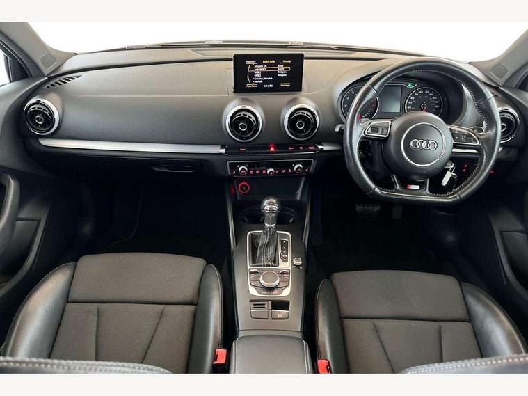 Audi drive select, Colour driver's information system display, Low washer fluid indicator, Service interval indicator, Voice control system, Audi music interface, DAB Digital radio, Aluminium side window trim, Body colour bumpers, Body colour door mirrors with integral indicators, Body colour roof spoiler, Chrome exhaust tailpipes, Front and rear electric windows, Front fog lights, Heated rear window, Heated windscreen washer jets, High gloss black fog light surround, High gloss black front grille, LED daytime running lights, S Line body styling, Twin exhaust tailpipe, 3 adjustable rear headrests, 3 spoke flat bottomed S Line multifunction steering wheel, 4 lashing points to secure luggage, 60/40 split folding rear seat, Adjustable front armrest, Aluminium door sill trims, Black cloth headlining, Coat hooks on both sides, Cup holders, Door sill trims with S line logo, Driver/passenger sunvisors, Dual zone electronic climate control, Front and rear interior lights with delay, Front/rear floor mats, Height adjustable front seats, Height/depth adjustable steering column, Illuminated glovebox, Illuminated luggage compartment, ISOFIX child seat preparation+airbag deactivation, Passenger underseat drawer, Perforated leather gearknob, Removable rear parcel shelf, Steering wheel gearshift paddles, Storage compartment in centre console, Storage compartments in doors, Storage and luggage pack - A3/RS3, 3 point seatbelts on all seats, ABS/EBD, Active bonnet, Active front headrests, ASR, Curtain airbags, Driver and passenger side airbags, Driver/Front Passenger airbags, Drivers knee airbag, EDL, Electromechanical parking brake, ESC - Electronic Stability Control + traction control, Front passenger airbag deactivation, Manual rear child locks, Seatbelt warning, Tyre pressure monitor, Warning triangle and first aid kit, Anti-theft wheel bolts, Remote control central locking, Thatcham category 1 alarm + immobiliser, Aluminium air vent surrounds, Aluminium trim elements, Matt brushed aluminium inlays, Space saver spare wheel,