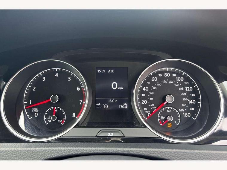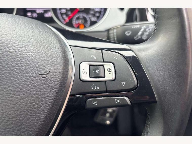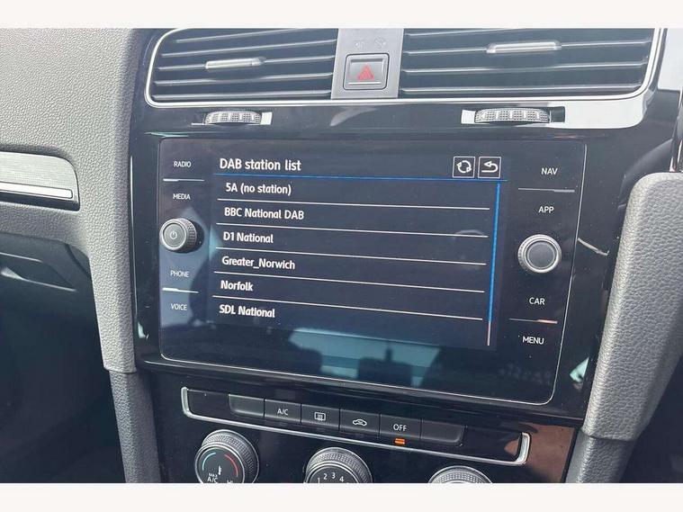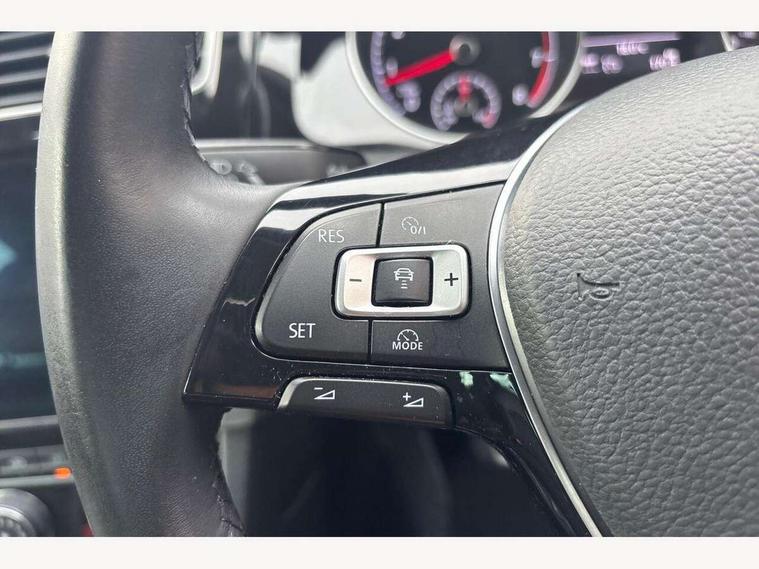 'Lights On' Reminder warning buzzer, 8" touch screen, Adaptive Cruise Control with pedestrian detection and speed limiter, App-Connect, Bluetooth hands free telephone connection, Brake pad wear indicator warning light, Driver alert system, Driver profile selection, Exterior temperature gauge, Front assistant collision mitigation, Instrument cluster in white, Multifunction computer, PAS - speed related, Rev counter, Trip and service interval display, Ultrasonic front and rear optical and audible parking sensors, Warning buzzer and light for front seatbelts unfastened, Lowered sports suspension, XDS electronic differential lock, CD/MP3/WMA, USB and SD card reader, aux-in, Composition media system, DAB Digital radio, Auto dimming rear view mirror, Automatic coming/leaving home lighting function, Automatic headlights, Black front air intake and radiator grille with chrome insert, Black rear diffuser, Body colour bumpers, Body colour door handles, Body colour door mirrors, Chrome grille surround, Electric front windows, Electric rear windows, Electrically adjustable and heated door mirrors, Heat insulated tinted glass 65% light absorbing from B pillar back, Heated rear windscreen, LED daytime running lights, LED front fog lights with static cornering light function, LED rear lights, Rain sensor, Rear roof spoiler, Rear windscreen washer and wiper with interval delay, 12V socket in luggage compartment, 3 rear headrests, 3 spoke steering wheel, 60/40 split folding rear seat, Bag hook in luggage compartment, Boot lashing points, Cooled glovebox, Courtesy light delay, Cover for storage compartment in centre, Dust/pollen filter, Front + rear carpet mats, Front centre armrest with storage box and rear air vents, Front passenger drawer stowage, Front passenger seat height adjust, Front seat back storage pockets, Grab handles, Height/reach adjust steering wheel, Illuminated vanity mirrors, Isofix preparation for 2 rear child seats, Load through provision with rear centre armrest and cupholders x2, Luggage compartment cover, Luggage compartment lighting, Multifunction leather steering wheel with leather gear knob/handbrake grip, Overhead storage box, Pearl grey headlining, Storage box in luggage compartment, Storage compartments in doors, Sun visors, Variable boot floor, height adjustable and removable, Ambient lighting pack - Golf, Mirror pack - Golf, 3 point height adj front seatbelts + pretensioners, 3 rear 3 point seatbelts, ABS, Automatic post collision braking, Child locks on rear doors, Driver/Front Passenger airbags, Driver/Passenger whiplash optimised head restraints, Drivers knee airbag, Electronic parking brake with auto hold, ESP with EDL + ASR, Front and rear curtain airbags, Front passenger airbag deactivation, Front side airbags, Pre crash system, Tyre pressure monitor, Alarm with interior protection, Electronic engine immobiliser, Remote central locking with 2 remote folding keys, Chrome-plated light switch surround, Piano black centre console, Tumbler decorative inserts, Steel space saver spare wheel,