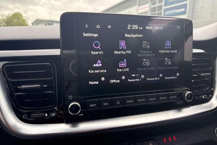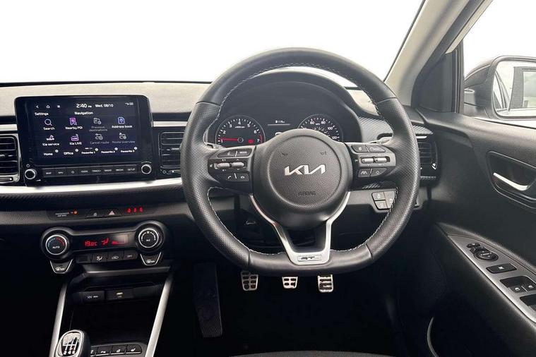 4.2" supervision colour cluster display, 8" touchscreen navigation, Apple car play/Android Auto with voice control, Blind spot collision warning, Cruise control + speed limiter, Drive mode selector, Electric power steering, Emergency call service, Emergency stop signalling system, External temperature display, Forward Collision-Avoidance Assist (FCA) - City/Pedestrian/Cyclist, Front parking sensors, Intelligent speed limit warning, Lane keeping assist system (LKAS), Driver attention warning (DAW) and High beam assist (HBA), Rear parking sensor, Reversing camera system, Trip computer, Intelligent Stop and Go, Audio system with 6 speakers, Bluetooth with music streaming, Front USB port, Steering wheel mounted controls, All round electric windows with drivers auto up/down function, Auto dimming rear view mirror, Automatic defog system, Automatic headlights control, Black rear roof spoiler with high mounted LED braking light, Black side sill, door garnish and wheel arch trims, Black/body colour bumpers, Body coloured exterior door handles, Chrome side window trim, Electrically adjustable/heated/folding door mirrors with LED indicators, Front and rear silver skid plates, Gloss black door mirrors with matt black lower housing, GT-Line body kit, Headlight levelling device, Heated rear window, High gloss black and satin radiator grille, LED Bi-function projection headlights with static bending, LED daytime running lights, LED front fog lights, LED position light, LED rear combination lights, Privacy glass - Rear windows and tailgate, Rain sensing front wipers, Rear fog lights, Rear side wing doors, Rear wash/wipe, Roof rails, Shark fin antenna, Solar windshield glass, Speed variable front aeroblade wipers, Tinted glass, Welcome and follow-me home light functionality, Windscreen Washer Level Warning, 12V power point front, 3 seat bench in 2nd row, 60/40 split folding rear seat, Air filter, All-round height adjustable headrests, Aluminium pedals, Automatic air conditioning, Centre armrest storage box, Centre console with cupholders, D-Cut perforated leather trimmed steering wheel, Dash illumination dimmer switch, Driver's seat height adjuster, Front and centre cabin lights, Front and rear door map pockets with bottle holder, Gear shift indicator, Glovebox illumination, GT-Line cloth/faux leather upholstery, Heated front seats, Heated steering wheel, ISOFIX Child seat top tethers and anchor fixings outer rear seats, Leather trimmed gearshift, Luggage area light, Luggage area parcel shelf, Luggage net, Luggage net with hooks, Overhead console lamp, Overhead console with sunglasses cases, Passenger front seatback pockets, Passenger seat height adjuster, Rear USB charging port, Satin chrome interior door handles, Single front passenger seat, Sunvisors with vanity mirror illumination (Driver and front passenger), Tilt/telescopic adjustable steering wheel, ABS with Electronic Brakeforce Distribution (EBD) and Brake Assist System (BAS), All round 3-point seatbelts, Electronic stability control (ESC) and vehicle stability management (VSM), Front passenger airbag cut-off switch, Front seatbelt pretensioners + load limiters, Height adjustable front seatbelts, Hill start assist control (HAC), Impact sensing auto door unlocking, Manual child lock in rear doors, Rear seat Occupancy alert, Seatbelt reminder warning, Twin curtain airbags, Twin front airbags, Twin front side airbags, Tyre pressure monitoring system, Alarm system, Door deadlocks, Engine immobiliser, Locking wheel nuts, Smart key with engine start/stop button, Speed sensitive auto door locking, Visible vehicle identification number, High gloss black centre fascia, 17" GT-Line alloy wheels, Tyre mobility kit,