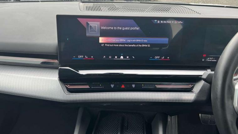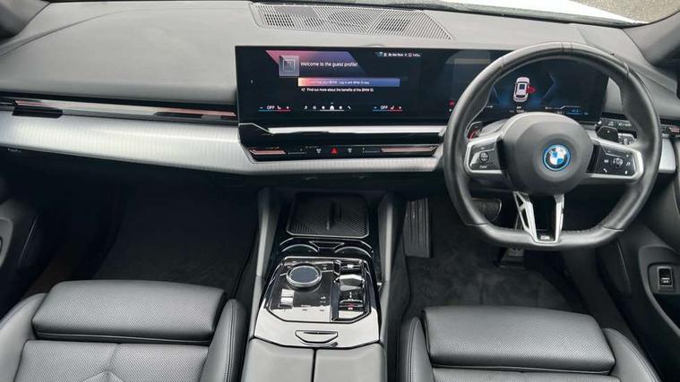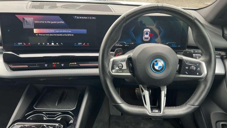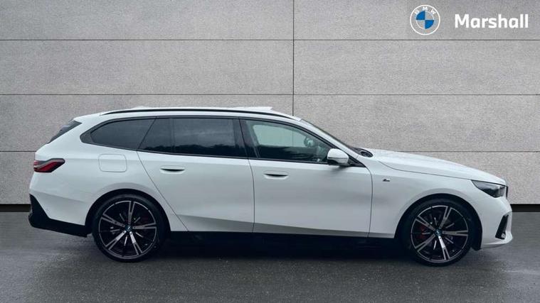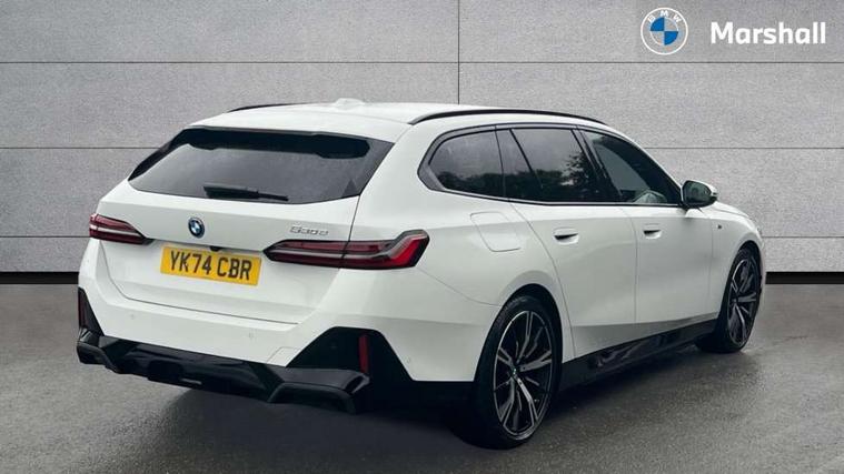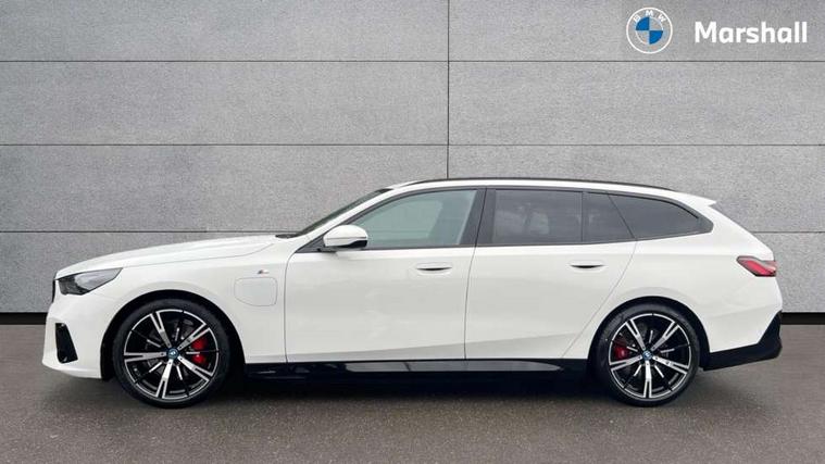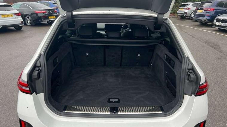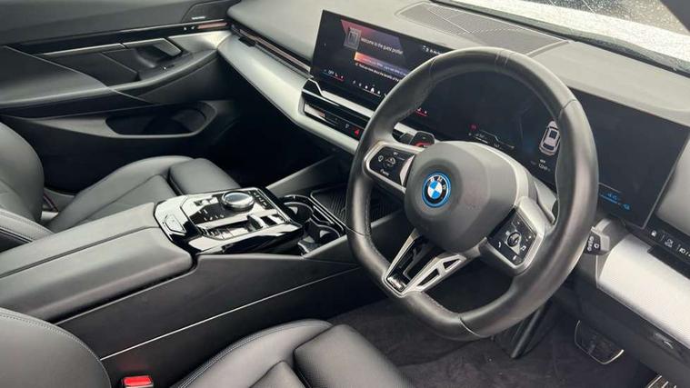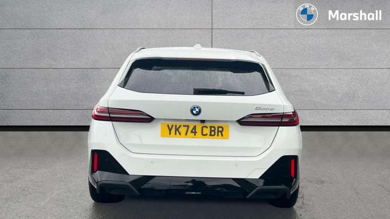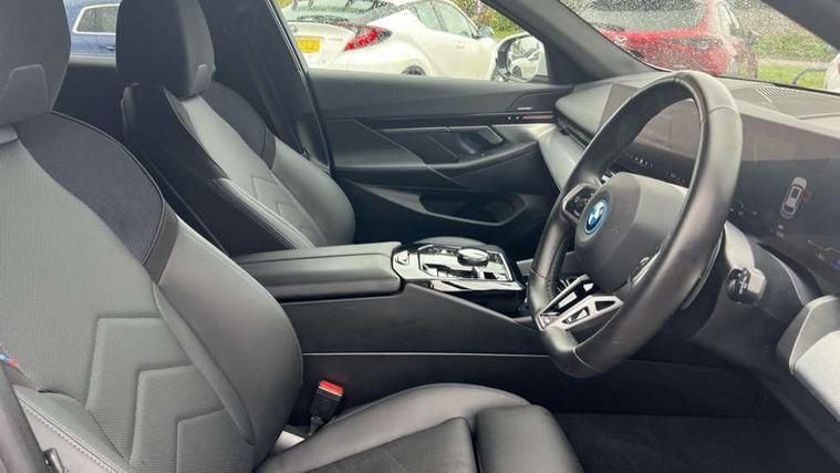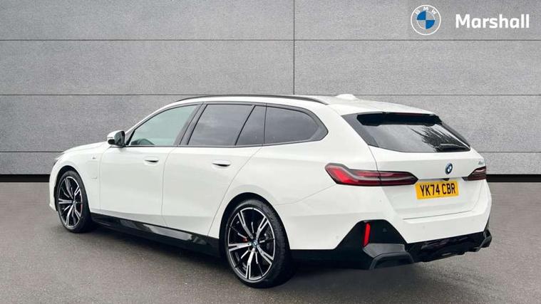 Automatic tailgate operation, BMW ConnectedDrive online services, BMW Iconic sounds electric, BMW legal emergency call, BMW Teleservices, Brake pad wear indicator, Cruise control with brake assist, Driving Assistant Plus Preparation, Front collision warning with brake intervention, Lane departure warning with active return, Left turn warning with brake function, Multifunctional instrument panel, Oil sensor for level and grade, On board computer inc. average speed, fuel consumption, liquid crystal Info display, journey computer, outside temperature display, personal profile, On-board diagnosis - OBD, PAS, Personal e-SIM, Powered by Operating System 7.0, Run flat indicator, Service interval indicator, Speed limit Info with manual speed limit assist, Stop/start button, 8 speed automatic steptronic transmission with gearshift paddles, AC charging cable professional (mode 3) for public charging, Expert mode, Launch control, DAB tuner, Acoustic glazing, Adaptive LED Headlights, Automatic cornering lights, Automatic windscreen wipers and automatic headlight, BMW selective beam, Body colour door handles, Body coloured bumpers, Dynamic brake lights with LED technology, Electric adjustable door mirrors, Electric front and rear windows with fingertip open/close + anti-trap facility and comfort closing function, Follow me home headlight function, Headlight elements in blue, Heated windscreen washer jets, LED daytime running lights, LED third brake light, Light colour close to that of ordinary daylight, M high gloss shadow line with extended contents - Radiator grille frame, struts and strip in rear light, M light shadowline - Dark design of selected elements of the headlight and rear lights, M rear spoiler, Optimum, homogeneous illumination of the road, Rear side wing doors, Rear wiper, 2 zone automatic air conditioning, 3 seat bench in 2nd row, 3 spoke leather M steering wheel in BMW M specific design with M badge, Armrest - front and rear integrated door trim, centre console includes storage compartment, rear centre includes 2 cupholders, Child seat ISOFIX attachment with rear outer seats includes top tether, Electric adjustable front sports seats, Electric adjustable steering column, Electrically adjustable lumbar support for driver and front passenger, Heated driver and front passenger seats, High-gloss black door switch cluster, power window switch and tailgate button on first and second row seat, M Anthracite headlining, M Sport pedal covers in stainless steel, Rear headrests, Single front passenger seat, Through loading system with 40/20/40 rear seat backrest split, Velour floormats, Wireless charging tray, Ambient lighting pack - 5 Series/I5, BMW Iconic glow kidney grille exterior package, Connected package professional - 5 Series/I5, Driving assistance pack - 5 Series/I5, Expanded exterior mirror package - 5 series/I5, M high gloss shadow line pack - 5 Series/ I5, M Sport exterior styling pack - 5 Series/I5, 3 rear three point seatbelts, Active protection, Airbag deployment is controlled with respect to the intensity and scope, Anti-lock braking system (ABS), Brake assist, Brake energy regeneration, Cornering brake control (CBC), Crash sensor activating central locking release, hazard warning lights, fuel cut off and interior lighting, Driver and front passenger airbags, Driver central airbag, Driver/front passenger side airbags, DSC - Dynamic Stability Control, Dynamic brake control, Dynamic Traction Control - DTC, Electromechanical parking brake with automatic drive away release and auto hold function, Electronic brake force distribution, Engine drag torque control, Front and rear brake discs with interior ventilation, Front and rear curtain airbags, Front head restraints with anti-whiplash, Head airbags for first and second row seats, Hill start assist, Locking of doors after driving off, M seat belts, Mechanical child proof lock on rear doors, PC iBrake PostCrash approach control warning with light braking function, Side impact protection, Trailer stability control, Two tone horn, Tyre pressure monitoring system, Warning triangle and first aid kit, Alarm system, Locking wheel bolts including wheel bolt adapter, Tyre repair kit,