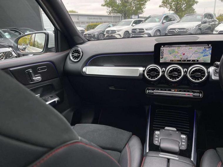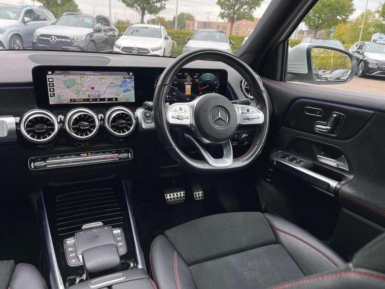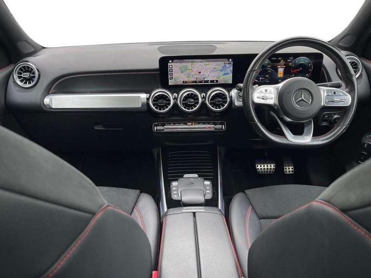 10.25" Digital instrument cluster display screen, 10.25" Digital media screen display, Attention assist - Monitors steering behaviour and long journey fatigue, Brake pad wear indicator warning light, Car wash mode, DYNAMIC SELECT with a choice of driving modes (ECO, Comfort, Sport and Individual), ECO start/stop function, Fluid level warning indicator for fuel, oil, coolant and washer fluid, Hard disk navigation, Hey Mercedes Voice activation, Lamp failure indicator, Mercedes me connect including emergency call system, accident recovery, breakdown and maintenance management, Mercedes me remote services, Outside temperature gauge, Owners manual and service booklet in English, Parameter steering system, Pre-installation of private car share, Radio aerial integrated into front and rear windshields, Service indicator (ASSYST), Smartphone integration with Apple CarPlay and Android auto, Traffic sign assist, Trip computer in multifunction display with current consumption indicator, Comfort suspension, Rear axle multi-link, DAB digital radio tuner, MBUX multimedia system with DAB digital radio and touchpad including satellite navigation, Mercedes Benz sound system (225 W) with 10 speakers, 1 central speaker, speakers on doors, a tweeter on door, one sub woofer + boost amplifier, Pre installation for Mercedes Benz Link, USB (type C) port in front stowage compartment, USB (type C) ports (2) in stowage compartment, Adaptive brake lights, Aerial for GPS, AMG bodystyling door panels black grained with chrome plated inserts, AMG bodystyling front apron with chrome splitter, AMG bodystyling rear apron with diffuser optics and chrome trim element, AMG specific front and rear bumper including underride guard in high gloss chrome, Auto headlights, Beltline strips and weather strip in chrome, Body coloured door handles with chrome insert for keyless entry, Body coloured door mirror caps, Electric adjustable and heated door mirrors with integrated LED side indicators, Electric panoramic glass sunroof, Exhaust system with dual flow exhaust pipes (non-functional), Front and rear electric windows, Headlamp assist automatic headlamp activation, Heated glass rear windscreen + timer control, High level LED third brake light, Interior mirror with black reading lamps and frameless, LED daytime running lights, Multibeam LED headlamps and tail lamp with adaptive high beam assist, Polished aluminium roof rails, Privacy glass with dark tinting on rear side windows and rear window, Radiator grille with pins in chrome and single louvre with chrome insert, Rain sensor windscreen wipers, Rear fog lamp, Rear side wing doors, Rear wing door, Rear wiper, Two visible tailpipe trim elements exhaust, 3 seat bench in 2nd row, 3 spoke multifunction sport steering wheel in nappa leather, Air conditioning - Two zone thermotronic luxury automatic climate control with display, AMG sports pedals with brushed stainless steel surfaces and black rubber studs, Artico man-made leather/Microfibre Dinamica upholstery with red contrast stitching, Automatic child seat recognition sensor, Black floor mats with AMG lettering, Black roof lining, Fore/aft adjustment rear seats, Freight packaging with tie-down hooks, Front centre armrest with stowage, Front door sills with illuminated changeable cover, Front passenger grab handle with brushed side silver chrome, Galvanished gear shift paddles on steering wheel, Heated front seats, Height/reach adjustable steering column, Interior lighting - 64 colour Ambient lighting, Luggage net on driver/front passenger seat backrest, Rear armrest with two integral cup holders for drinks, Rear seat easy entry, Single front passenger seat, Sports seats with adjustable head restraints, Stowage compartment in centre console, Stowage compartment with retractable cover, Third row of seats for two people on rear seat, Touchpad on center console, Twin front cup holders, Two outer rear seat isofix and top tether child seat fixing points, Interior lighting with light and sight pack - GLB, Keyless go pack - GLB, Mirror pack - GLB, Parking pack - GLB, 3 rear 3 point seatbelts, Active bonnet pedestrain safety measure which detects an impact and raises bonnet by 65mm, Adaptive brake assist with hold function and hill start assist, Airbags - kneebag for driver, Anti-lock braking system (ABS) with brake assist, Childproof locks manually operated for rear doors and electrically operated for rear power windows, Crash responsive emergency lighting, Curve dynamic assist, Driver and front passenger head and sidebags, Driver and front passenger windowbags, Dual stage driver and front passenger airbags, Electronic parking brake, Electronic stability programme with acceleration skid control, Front and rear seatbelt reminder, Front brake callipers with Mercedes Benz lettering, Front passenger seat occupancy sensor, Tyre pressure monitoring system, Warning triangle and first aid kit, Remote central locking and crash sensor with emergency opening function, Thatcham category 1 alarm system with immobiliser and interior protection, Urban guard vehicle protection - Anti theft alarm system, tow away protection with visual and acoustic warning and alarm siren, Vehicle key with decorative surround in chrome, Black air vents with chrome surround, Carbon structure trim, 19" AMG 5 twin spoke light alloy wheels painted in tantalite grey with high sheen finish, Summer tyres, Tirefit tyre sealant kit,
