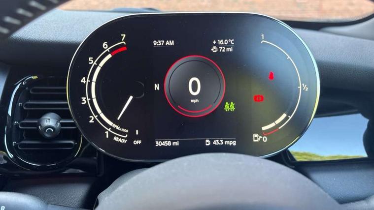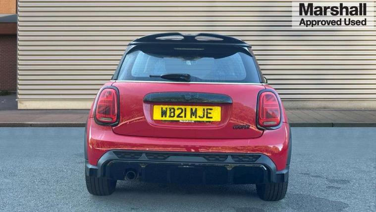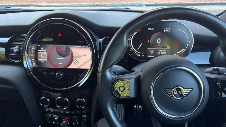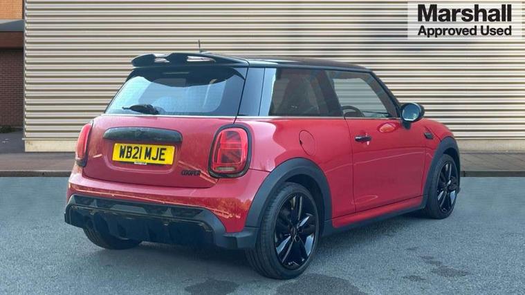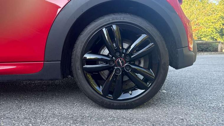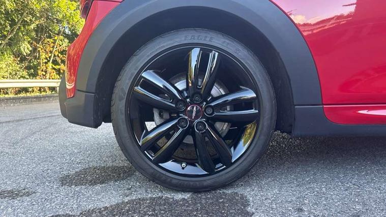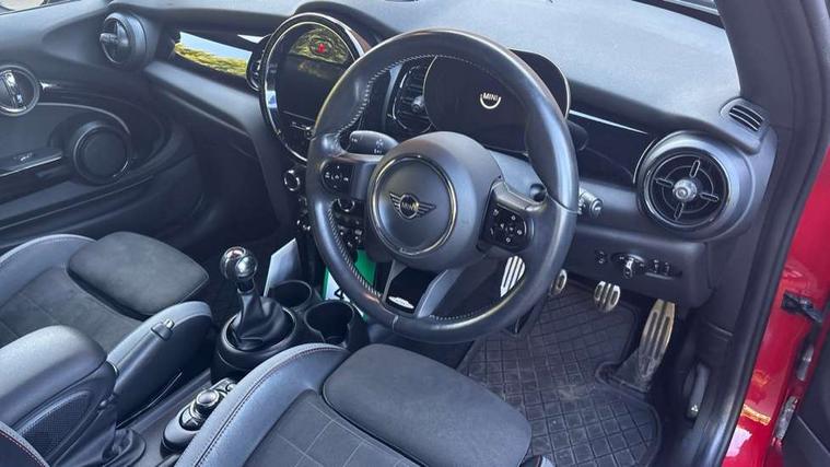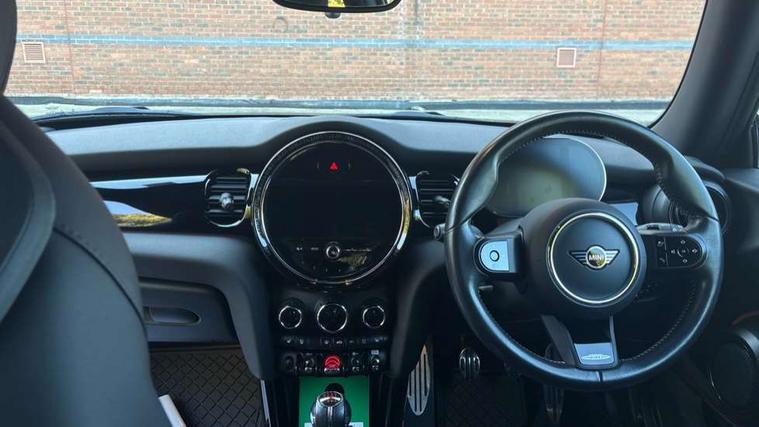 Automatic start/stop function with brake energy recuperation, Compatible mobile phone bluetooth with audio streaming, Cruise control with brake assist, Electro-mechanical speed dependant steering assistance, Flexible car sharing preparation, Instrument cluster, MINI Driving Modes - centre toggle switch to control driving setting (sport, mid and green), Mini E-call, MINI TeleServices, On board computer, Rear park distance control, Service interval indicator, 6 Speed manual transmission including gear change indicator display, Adaptive suspension, Double Vanos system, Fully variable valve control, High precision injection, Performance Control, 8.8" touchscreen with LED ring, FM tuner and DAB digital radio, Automatic headlight activation switch, Body colour fuel filler cap, Chrome border high gloss black slats radiator grille, Dynamic brake lights, Electric front windows, Exhaust tailpipe on left with chrome finisher, Heated rear window, Heated windscreen washer jets, JCW Aerodynamic kit - Front and rear bumpers with sporty JCW styling and part-painted side sills with MINI John Cooper Works door sill finishers, John Cooper Works rear spoiler, LED headlight with closed ring and daytime driving lights, Metal door sill strips with MINI imprint, Model logo Cooper on right of tailgate, Rain sensor window wipers, Rear fog lights, Rear LED lights with union jack design, Rear window wiper, Side scuttle panel with integrated indicator, Sun/heat protection glass, White indicator lenses, 12V Accessory socket in centre console, 4 lashing eyes in luggage compartment, 60/40 split folding rear seat, Anthracite headliner including grab handles and clothes hooks, Carbon black colour line - Knee roll and door armrest, Chrome interior highlights, Cupholders, Front and rear isofix with front passenger airbag deactivation, Glove compartment, Height and length steering column adjustment, Interior lighting with 12 different colours across the dashboard, underneath door bezel with illuminated laser-engraved design on central display, JCW Sport seats with integrated headrests, adjustable thigh support and John Cooper Works logo, Leatherette gearshift lever and handbrake gaiters, LED reading lights, vanity mirror lights, front foot well light and spotlight on front seats, Manual air conditioning, Mechanical seat adjustment - forward/back & backrest for front seats and driver seat height adjust, Multifunction steering wheel, Passenger seat height adjuster, Storage compartments in doors, Sunvisors with vanity mirrors, Tool kit, Velour floor mats, Walknappa leather steering wheel with grey seam and John Cooper Works badge on Piano Black lower steering wheel spoke, Piano black exterior pack - Mini Hatchback Cooper, 3 point seatbelts on all four seats, 6 Airbags - front, side, head and seat belt tensioners, Anti-lock braking system (ABS), DSC - Dynamic Stability Control, Front and rear disc brakes, Single tone fanfare horn, Tyre pressure monitoring system, Alarm system with tilt sensor, monitoring doors, bonnet interior and tailgate, Electronic vehicle immobiliser, Start/stop toggle with keyless go, Piano black interior trim,