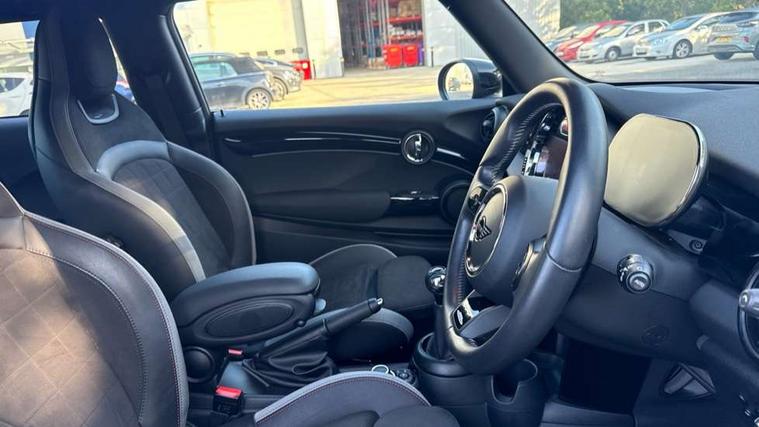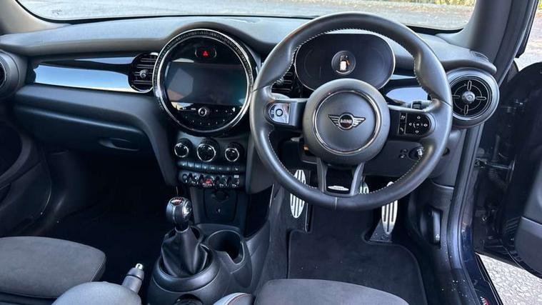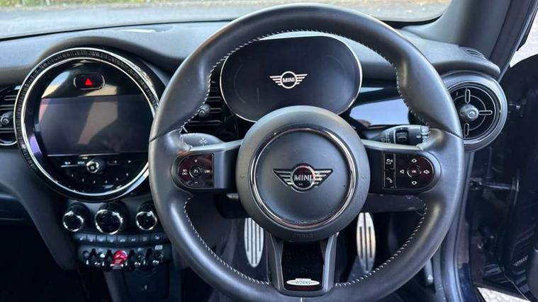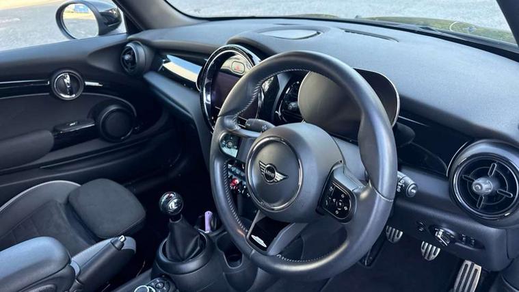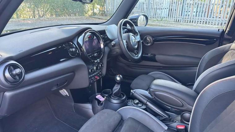 Automatic start/stop function with brake energy recuperation, Compatible mobile phone bluetooth with audio streaming, Cruise control with brake assist, Electro-mechanical speed dependant steering assistance, Flexible car sharing preparation, Instrument cluster, MINI Driving Modes - centre toggle switch to control driving setting (sport, mid and green), Mini E-call, MINI TeleServices, On board computer, Rear park distance control, Service interval indicator, 6 Speed manual transmission including gear change indicator display, Adaptive suspension, Double Vanos system, Fully variable valve control, High precision injection, Performance Control, 4 speakers in front door trims and underneath front seats, 8.8" touchscreen with LED ring, FM tuner and DAB digital radio, Automatic headlight activation switch, Body colour fuel filler cap, Chrome border high gloss black slats radiator grille, Dynamic brake lights, Electric front windows, Exhaust tailpipe on left with chrome finisher, Heated rear window, Heated windscreen washer jets, JCW Aerodynamic kit - Front and rear bumpers with sporty JCW styling and part-painted side sills with MINI John Cooper Works door sill finishers, John Cooper Works rear spoiler, LED headlight with closed ring and daytime driving lights, Metal door sill strips with MINI imprint, Model logo Cooper on right of tailgate, Rain sensor window wipers, Rear fog lights, Rear LED lights with union jack design, Rear window wiper, Side scuttle panel with integrated indicator, Sun/heat protection glass, White indicator lenses, 12V Accessory socket in centre console, 4 lashing eyes in luggage compartment, 60/40 split folding rear seat, Anthracite headliner including grab handles and clothes hooks, Carbon black colour line - Knee roll and door armrest, Chrome interior highlights, Cupholders, Front and rear isofix with front passenger airbag deactivation, Glove compartment, Height and length steering column adjustment, Interior lighting with 12 different colours across the dashboard, underneath door bezel with illuminated laser-engraved design on central display, JCW Sport seats with integrated headrests, adjustable thigh support and John Cooper Works logo, Leatherette gearshift lever and handbrake gaiters, LED reading lights, vanity mirror lights, front foot well light and spotlight on front seats, Manual air conditioning, Mechanical seat adjustment - forward/back & backrest for front seats and driver seat height adjust, Multifunction steering wheel, Passenger seat height adjuster, Storage compartments in doors, Sunvisors with vanity mirrors, Velour floor mats, Walknappa leather steering wheel with grey seam and John Cooper Works badge on Piano Black lower steering wheel spoke, Piano black exterior pack - Mini Hatchback Cooper, 3 point seatbelts on all four seats, 6 Airbags - front, side, head and seat belt tensioners, Anti-lock braking system (ABS), DSC - Dynamic Stability Control, Front and rear disc brakes, Single tone fanfare horn, Tyre pressure monitoring system, Alarm system with tilt sensor, monitoring doors, bonnet interior and tailgate, Electronic vehicle immobiliser, Start/stop toggle with keyless go, Piano black interior trim, Tool kit,
