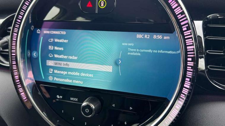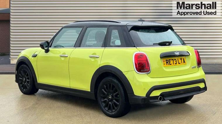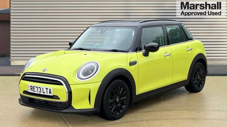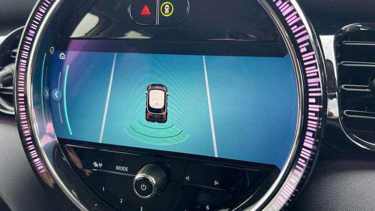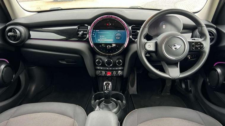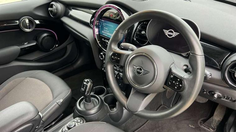 Apple CarPlay, Automatic start/stop function with brake energy recuperation, Compatible mobile phone bluetooth with audio streaming, Electro-mechanical speed dependant steering assistance, Flexible car sharing preparation, Mini E-call, MINI TeleServices, On board computer, Service interval indicator, Double Vanos system, Fully variable valve control, Gear change indicator display, High precision injection, Performance Control, Steptronic transmission with double clutch, 8.8" touchscreen with LED ring, FM tuner and DAB digital radio, 3rd brake light, Automatic headlight activation switch, Body colour fuel filler cap, Chrome border high gloss black slats radiator grille, Dynamic brake lights, Electric front+rear windows, Exhaust tailpipe on left with chrome finisher, Heated rear window, Heated windscreen washer jets, Metal door sill strips with MINI imprint, Model logo Cooper on right of tailgate, Rain sensor window wipers, Rear fog lights, Rear LED lights with union jack design, Rear side wing doors, Rear window wiper, Side scuttle panel with integrated indicator, Sun/heat protection glass, White indicator lenses, 12V Accessory socket in centre console, 3 seat bench in 2nd row, 4 lashing eyes in luggage compartment, 60/40 split folding rear seat, Ambient lighting, Carbon black colour line - Knee roll and door armrest, Chrome interior highlights, Cupholders, Front and rear head restraints, Front and rear isofix with front passenger airbag deactivation, Front and rear velour floor mats, Glove compartment, Height and length steering column adjustment, Interior lighting with 12 different colours across the dashboard, underneath door bezel with illuminated laser-engraved design on central display, Leatherette gearshift lever and handbrake gaiters, LED reading lights, vanity mirror lights, front foot well light and spotlight on front seats, Mechanical seat adjustment - forward/back & backrest for front seats and driver seat height adjust, Multifunction steering wheel, Satellite grey headlining including grab handles and clothes hooks, Single front passenger seat, Sport leather steering wheel with speed limiter and audio/communication controls, Storage compartments in doors, Sunvisors with vanity mirrors, 3 point seatbelts on all five seats, 6 Airbags - front, side, head and seat belt tensioners, Anti-lock braking system (ABS), Child locks on rear doors, DSC - Dynamic Stability Control, Front and rear disc brakes, Hill start assist, Single tone fanfare horn, Tyre pressure monitoring system, Alarm system with tilt sensor, monitoring doors, bonnet interior and tailgate, Electronic vehicle immobiliser, Start/stop toggle with keyless go, Piano black interior trim, Tool kit, Tyre repair kit,