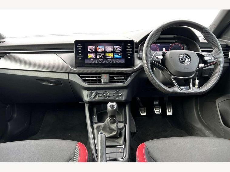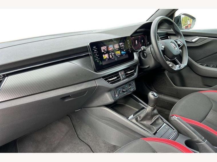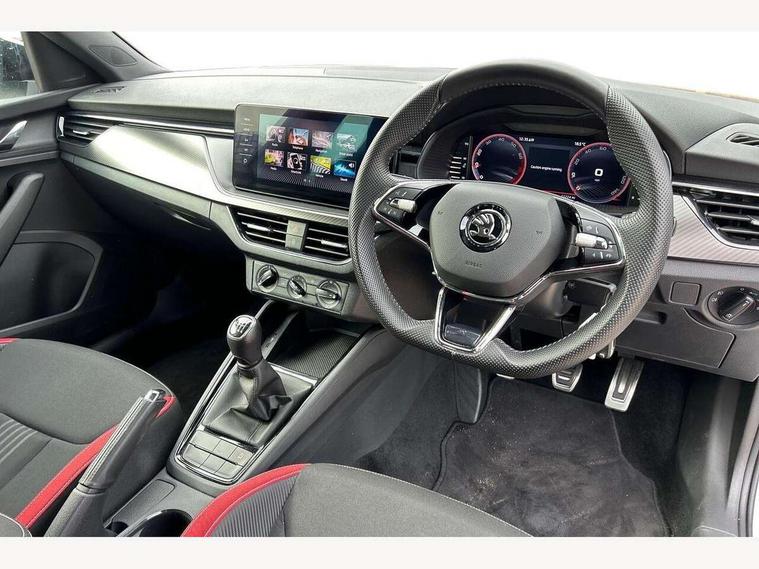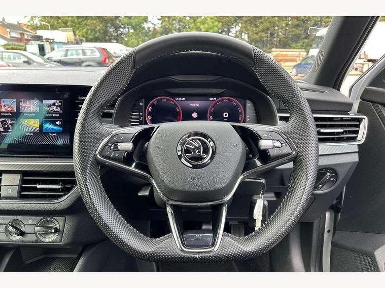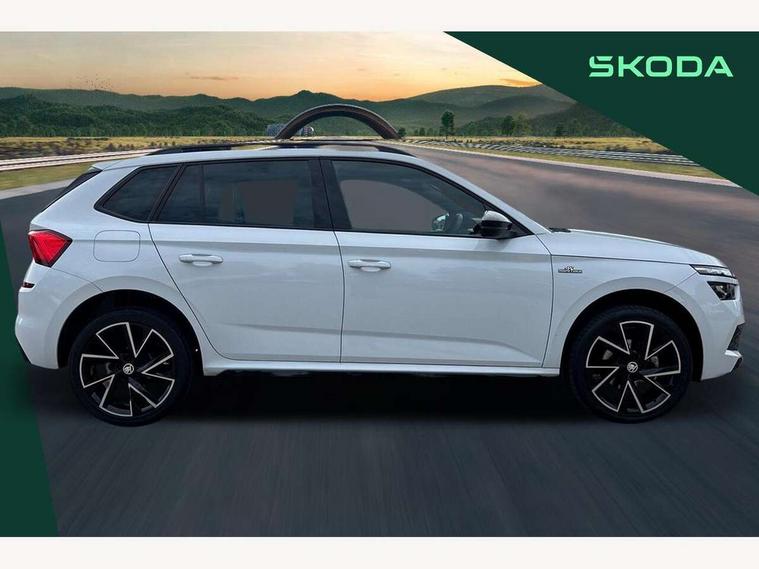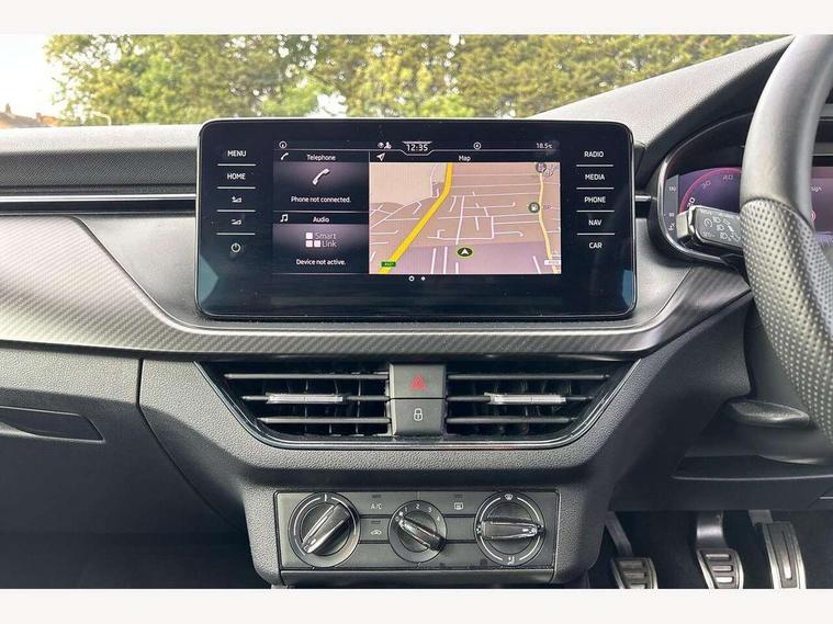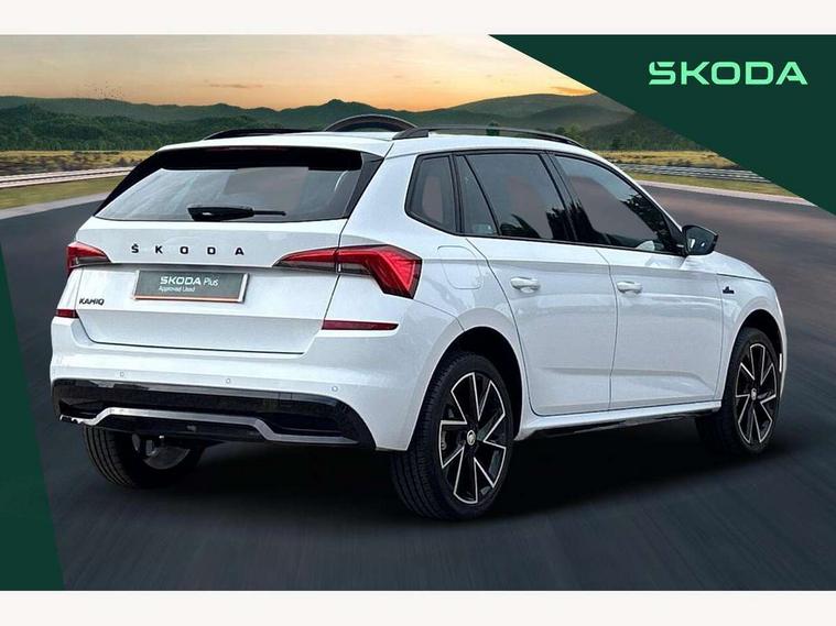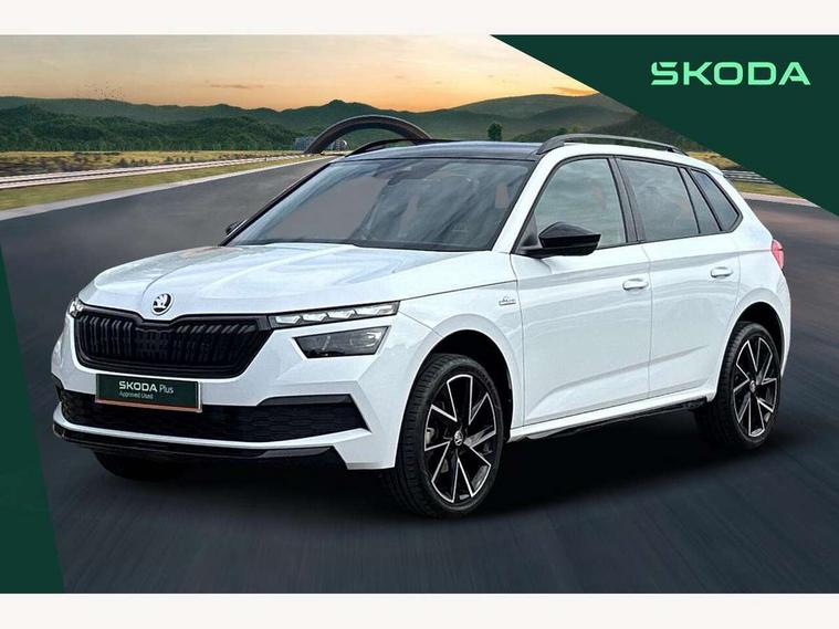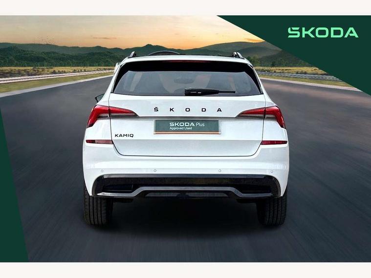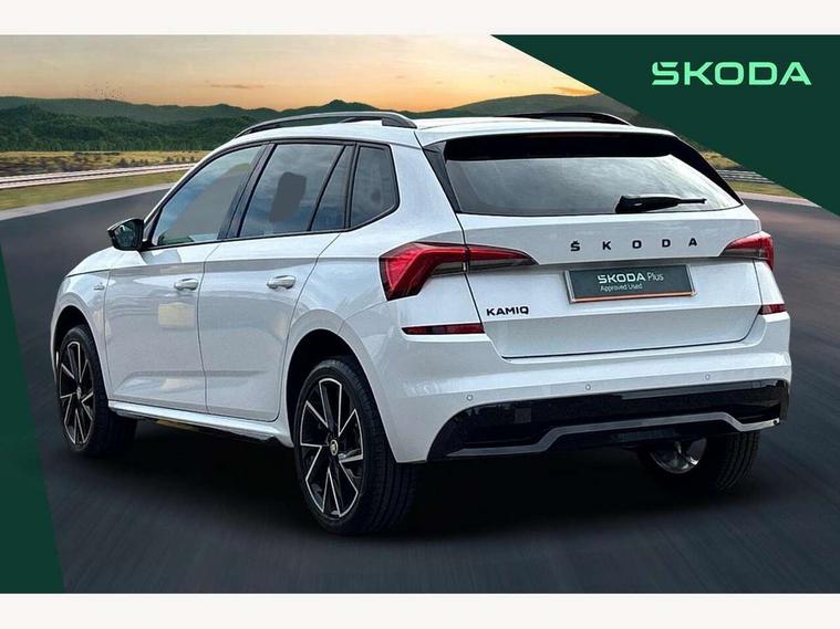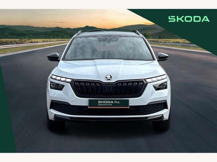 Amundsen satellite navigation with 9.2" glass colour touchscreen display, voice control, virtual cockpit, web radio and traffic sign recognition, Bluetooth system, E-call, Front assist system, Gesture control, PAS, Service indicator, Speed limiter, Virtual cockpit with 10.25"display, Wireless SmartLink for apple car play, android auto and mirrorlink, 8 speakers, Auxiliary input socket, DAB Digital radio, Black door mirrors, Black radiator grille, Black rear diffuser, Body colour bumpers, Body colour door handles, Body colour roof spoiler, Boot lettering in black, Chrome grille surround, Dimming rear view mirror with black surround, Electrically adjustable and heated door mirrors, Front and rear electric windows, Front sport bumper, Full LED headlights with adaptive front light system and front cornering fog lights, Headlight range control, Heated rear window, High functionality rear led lights with dynamic indicators, KAMIQ Door sills, LED daytime running lights, LED third brake light, Light sensors, Monte carlo plaque, Panoramic sunroof with black roof rails, Privacy glass, Rear fog lights, Rear side wing doors, Rear wiper, 12V Accessory socket in centre console, 3 seat bench in 2nd row, Aluminium pedals, Black ceiling for black/beige interior, Black roof lining, Chrome inner door handles, Cloth upholstery, Front head restraints, Glove compartment with illumination, Ice scraper, Isofix child seat fittings on outer rear seats, ISOFIX on front passenger seat, Leather gear lever, Manual lumbar support for front seats, Rake/reach adjustable steering wheel, Reading lights, Single front passenger seat, Sports seats, Sun visors with illumination on front passenger, Textile floor mats, Third rear headrest, Top tether for front passenger seat, Umbrella in driver's door, 3x3 point rear seatbelts, Airbags - driver and front passenger, ESP, Front passenger airbag deactivation switch, Front side airbags with curtain airbags, Hill hold control, Manual parking brake, Manual rear child locks, One tone horn, Rear disc brakes, Seatbelt reminder for driver an co-driver, Traction control, Tyre pressure monitor, Anti-theft alarm system with interior monitoring, backup horn, towing protection and remote central locking with SAFE system, Anti-theft wheel bolts, Electronic engine immobilizer, Chrome air vent surrounds, 18" Vega alloy wheels in black,